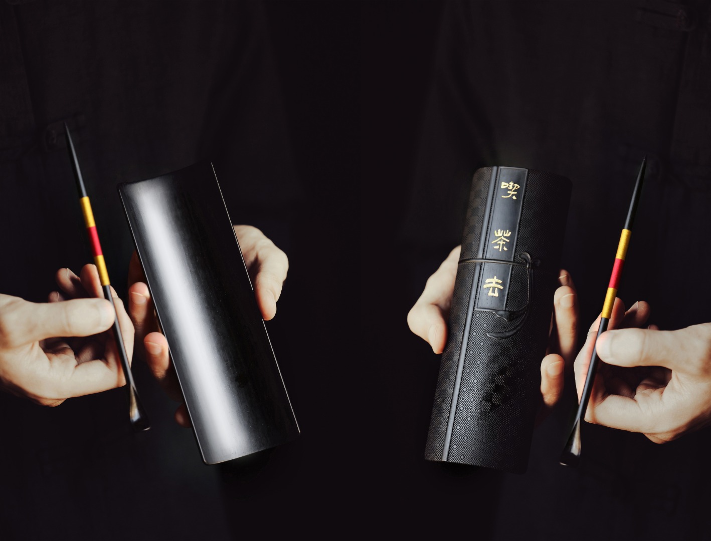 后背修饰回纹,手工贴金箔;