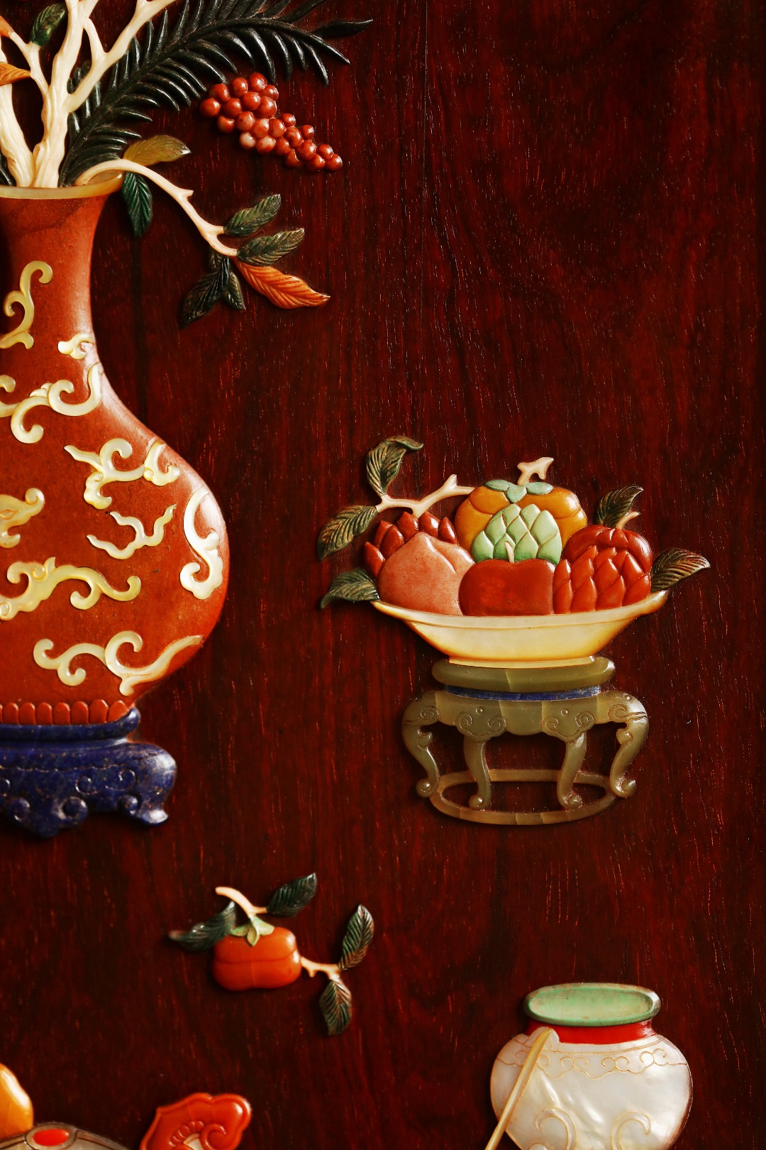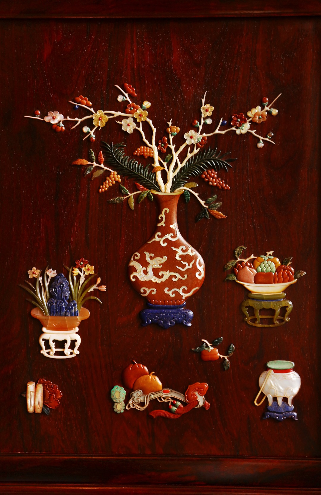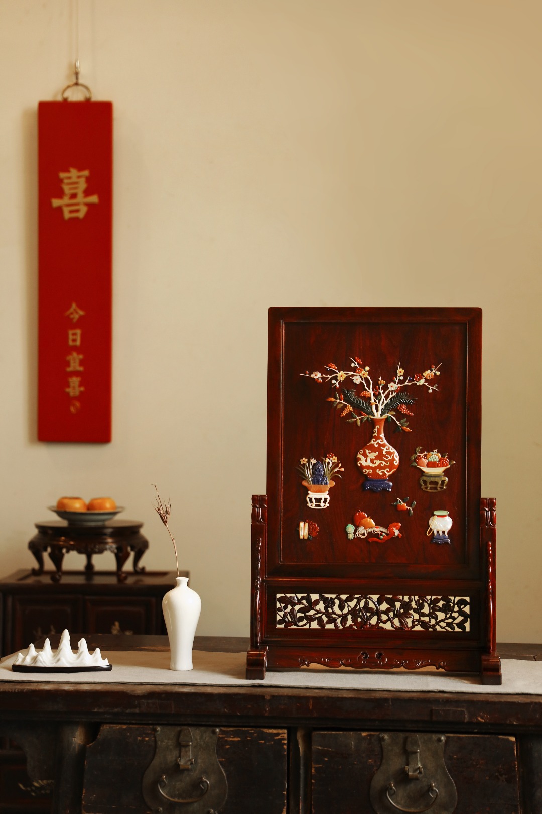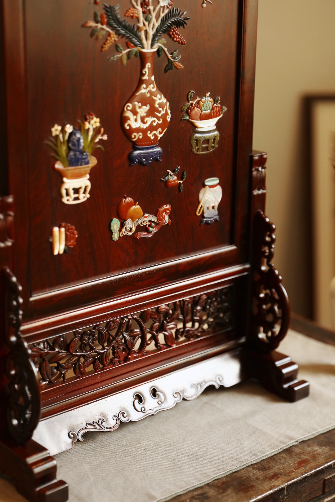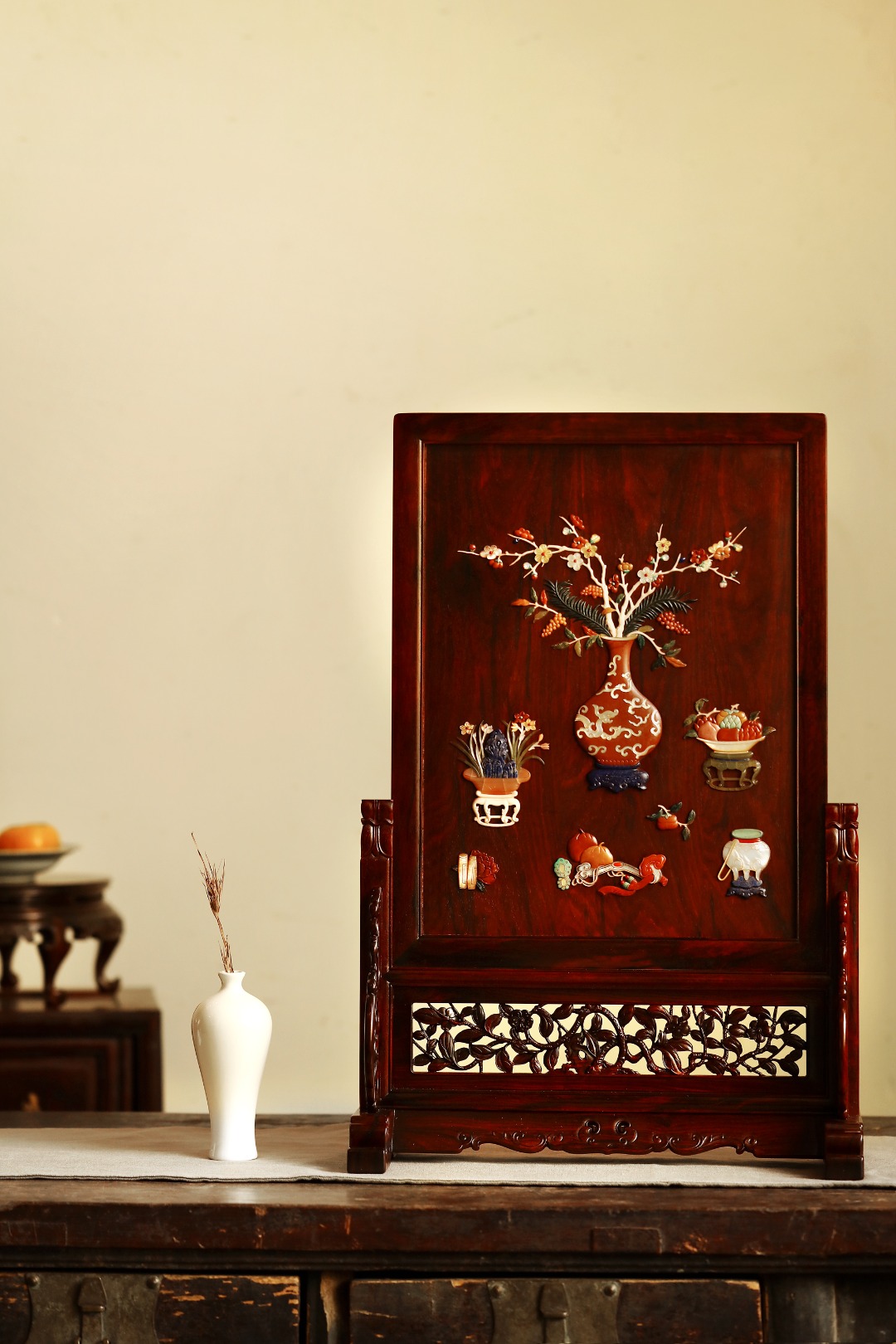 此屏置厅堂案头,富贵典雅、妙不可言。
