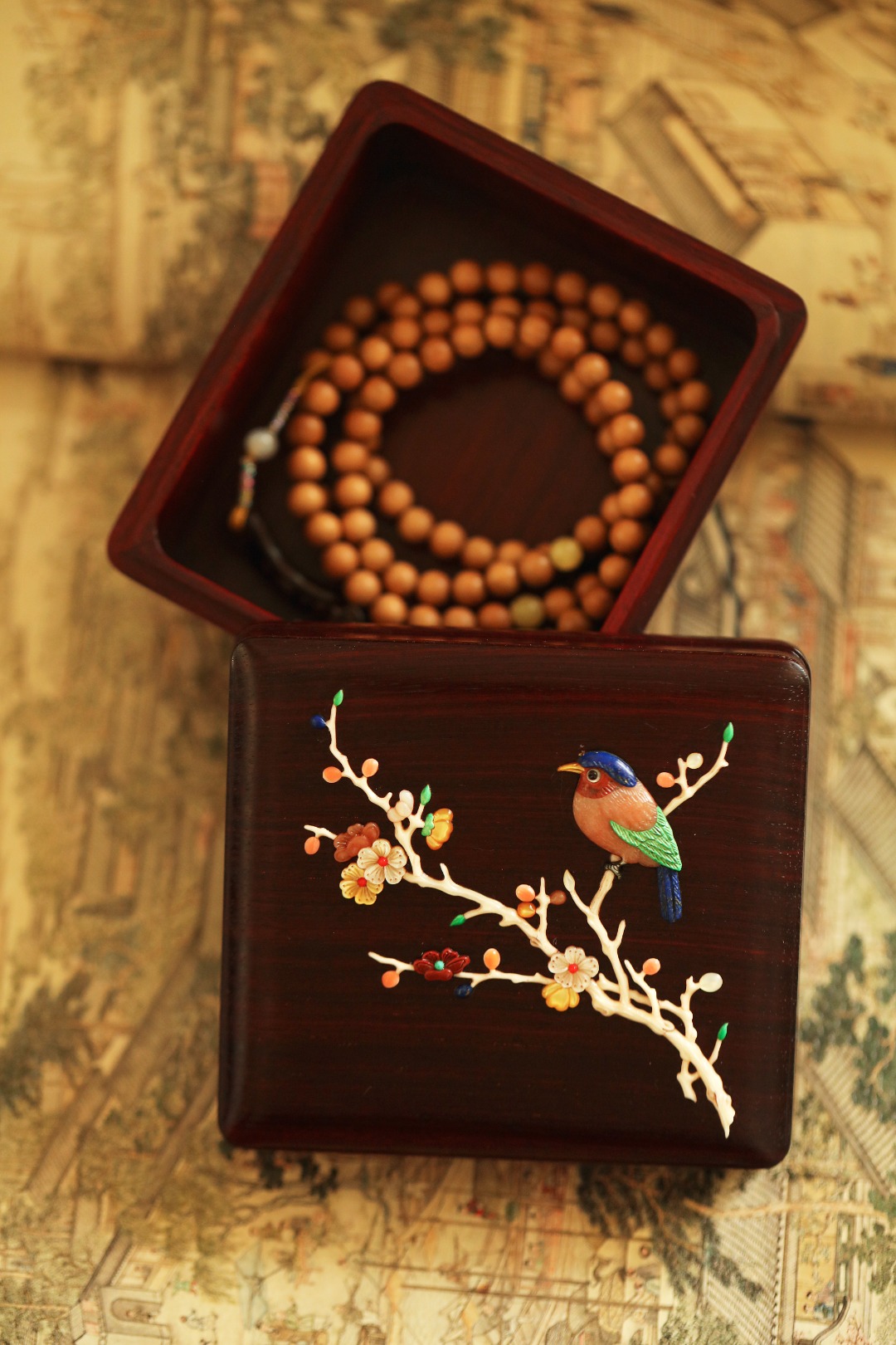 百宝嵌花鸟图案,琢刻精细