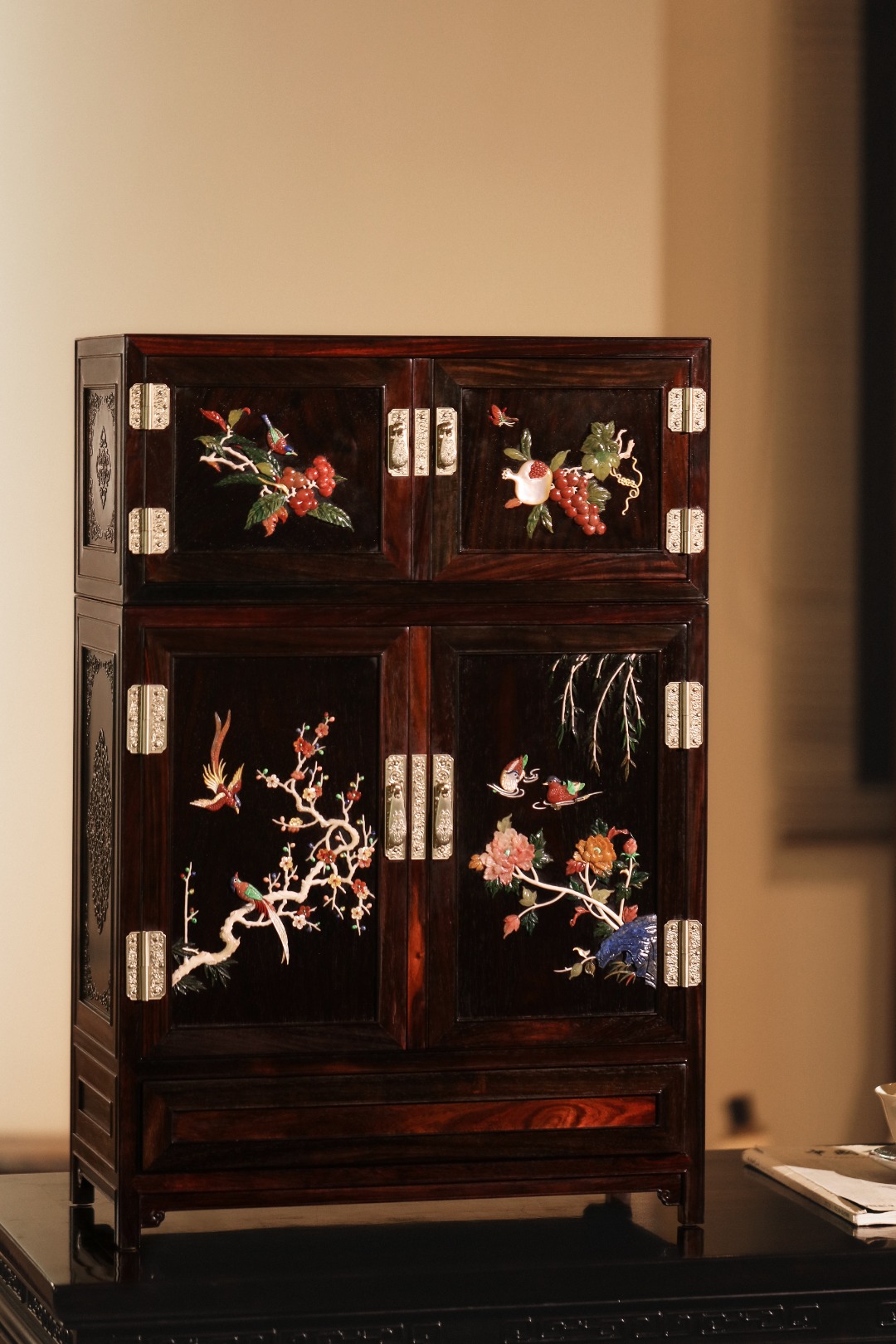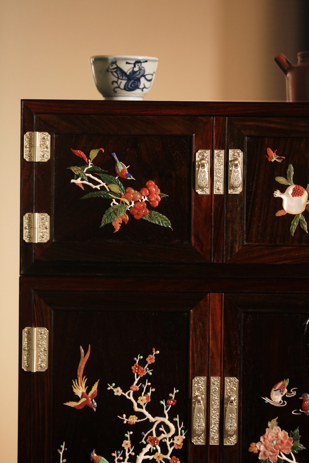 柜门玉石镶嵌花鸟鸳鸯图