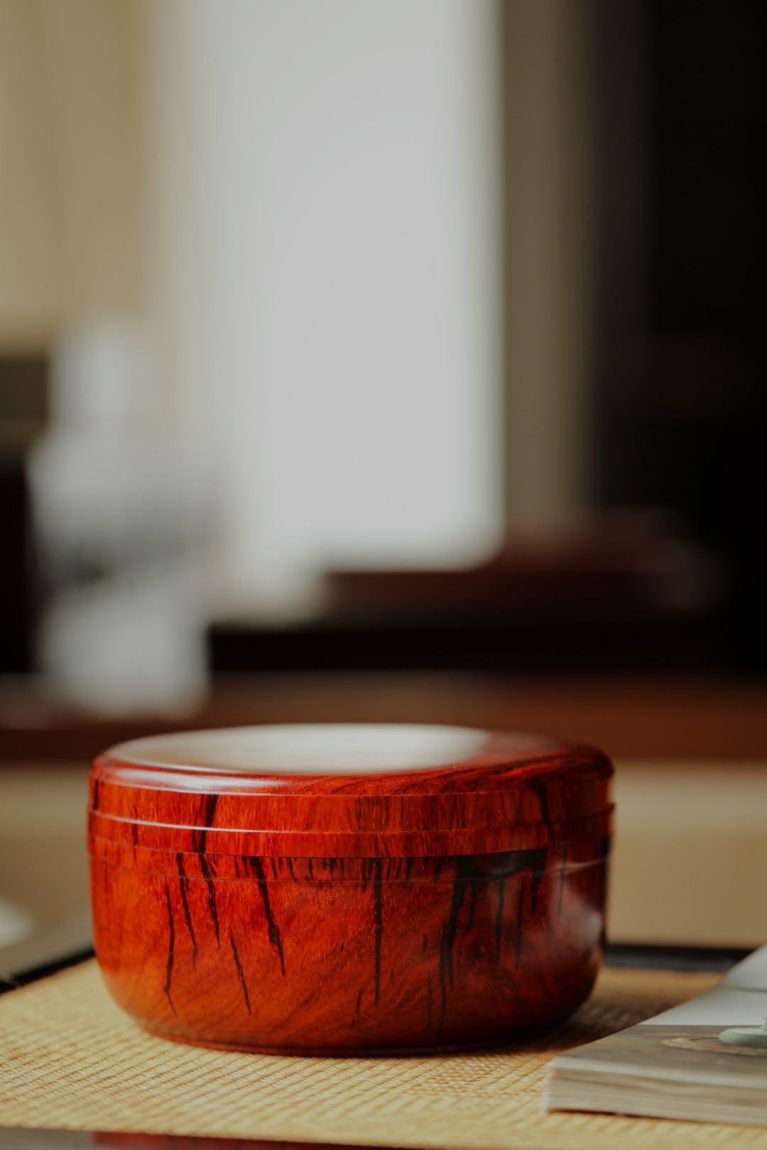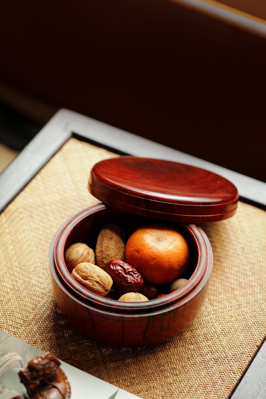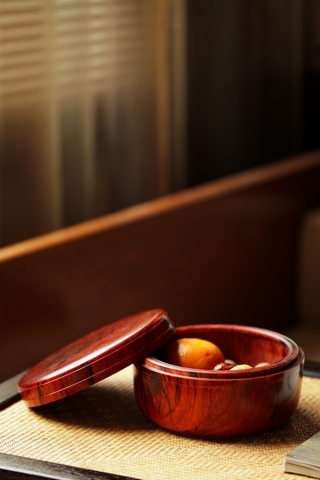 小叶紫檀一木挖制,密丝合缝。