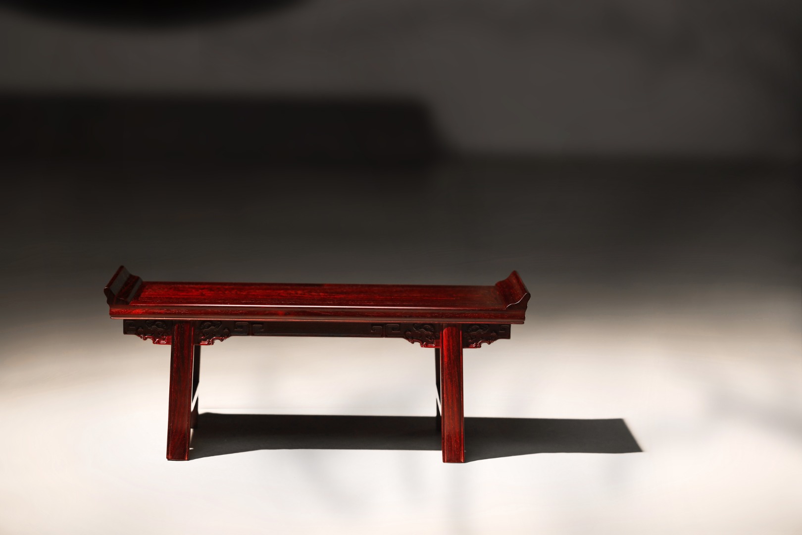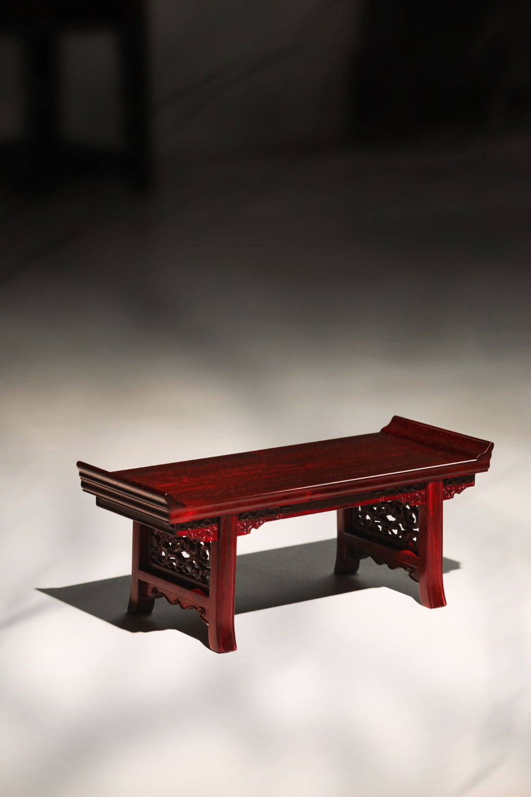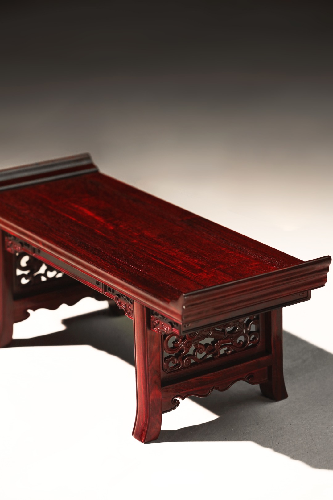 两端嵌小翘头,侧面满工透雕螭龙卷草纹