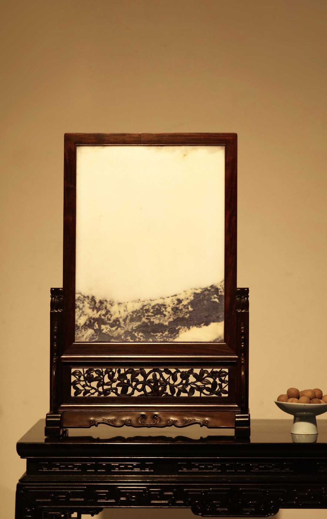 屏座透雕纹饰,雕工精细