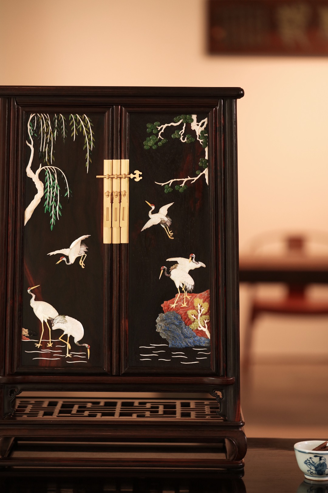 选材制作考究,柜门百宝嵌饰,斑斓雅致