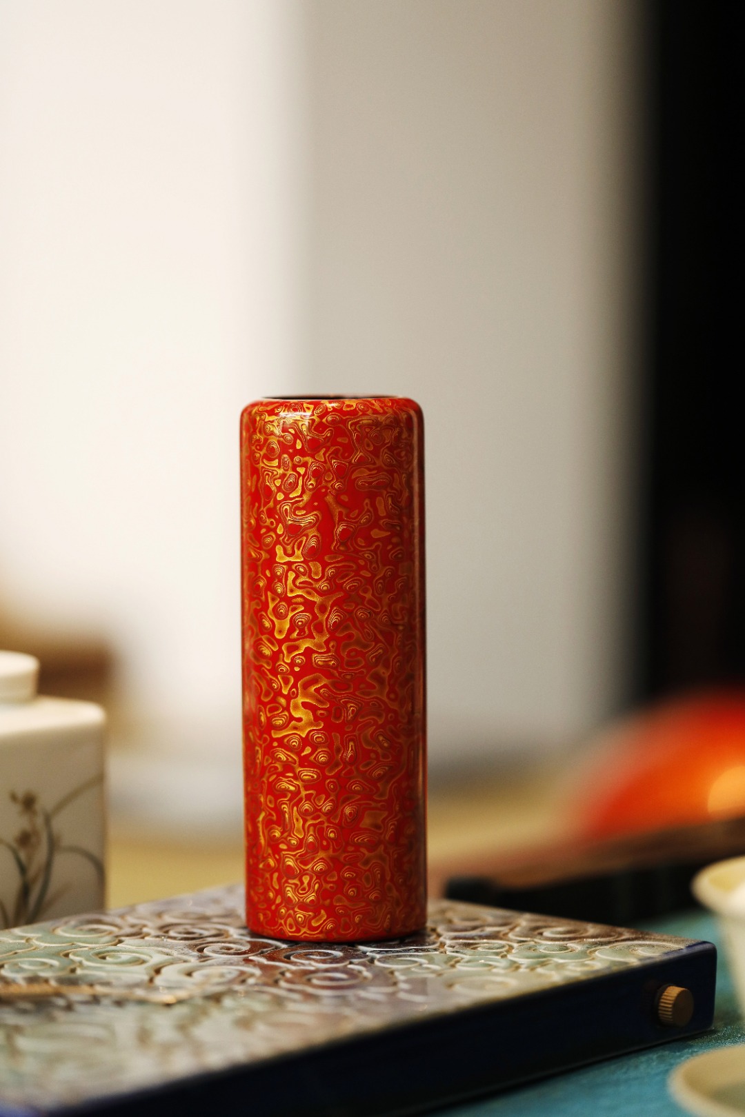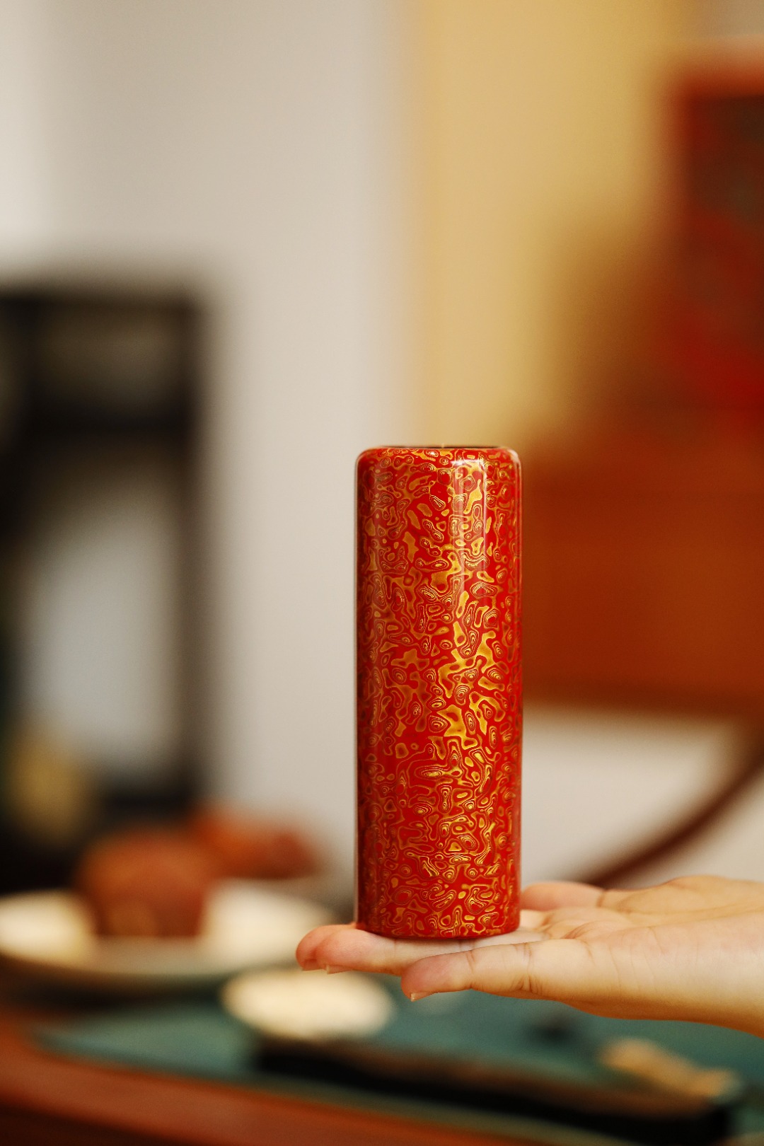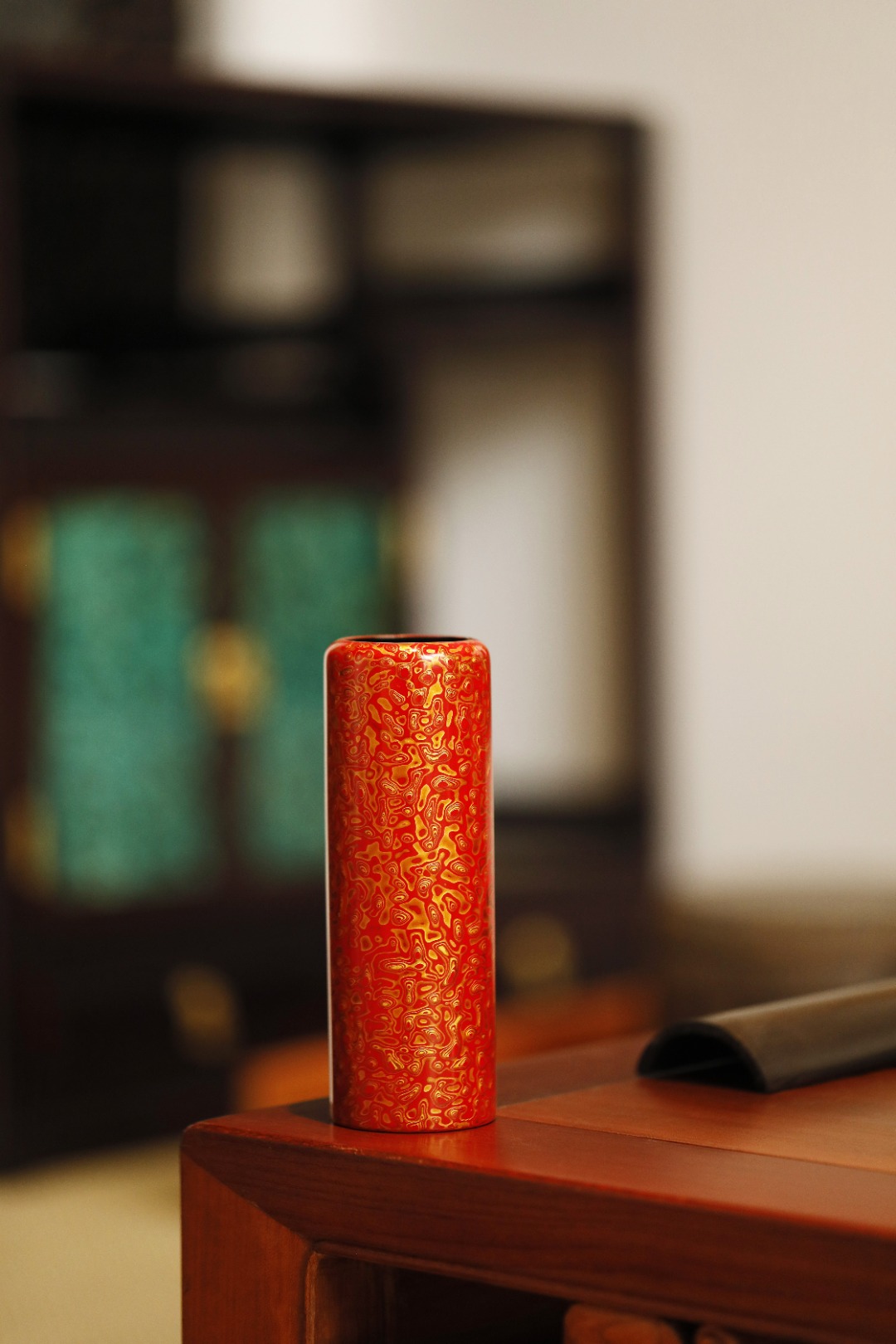 大漆 | 红金 帽筒