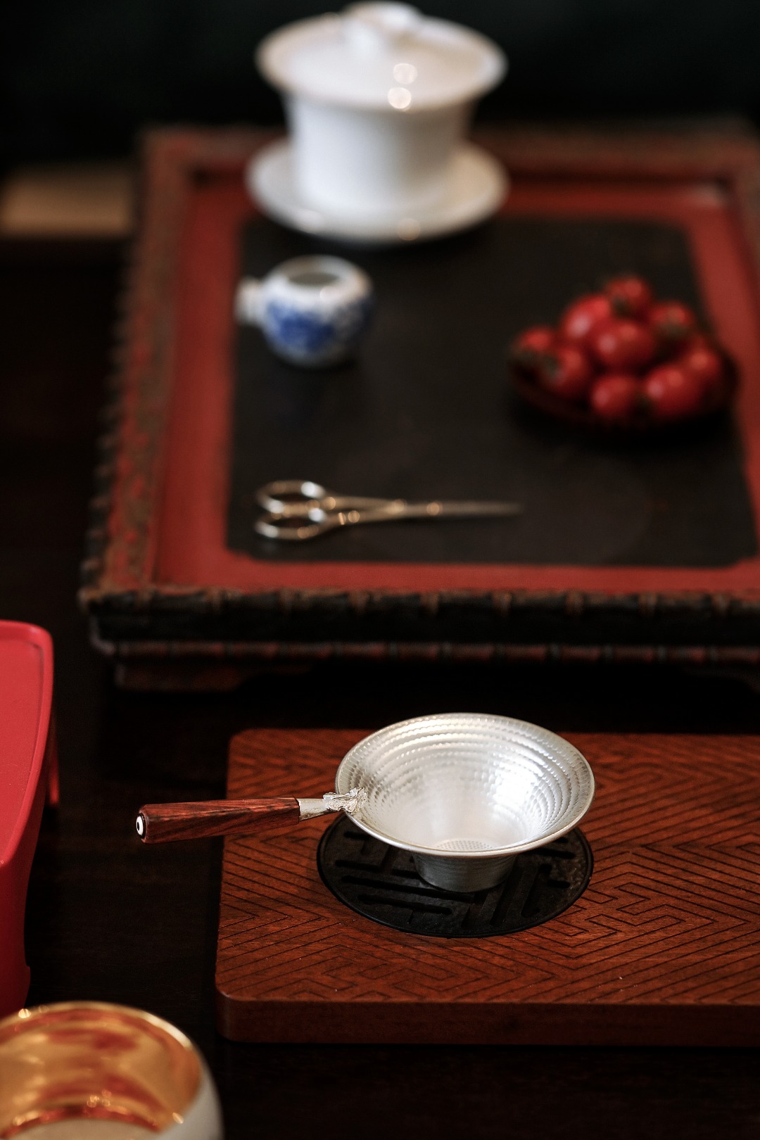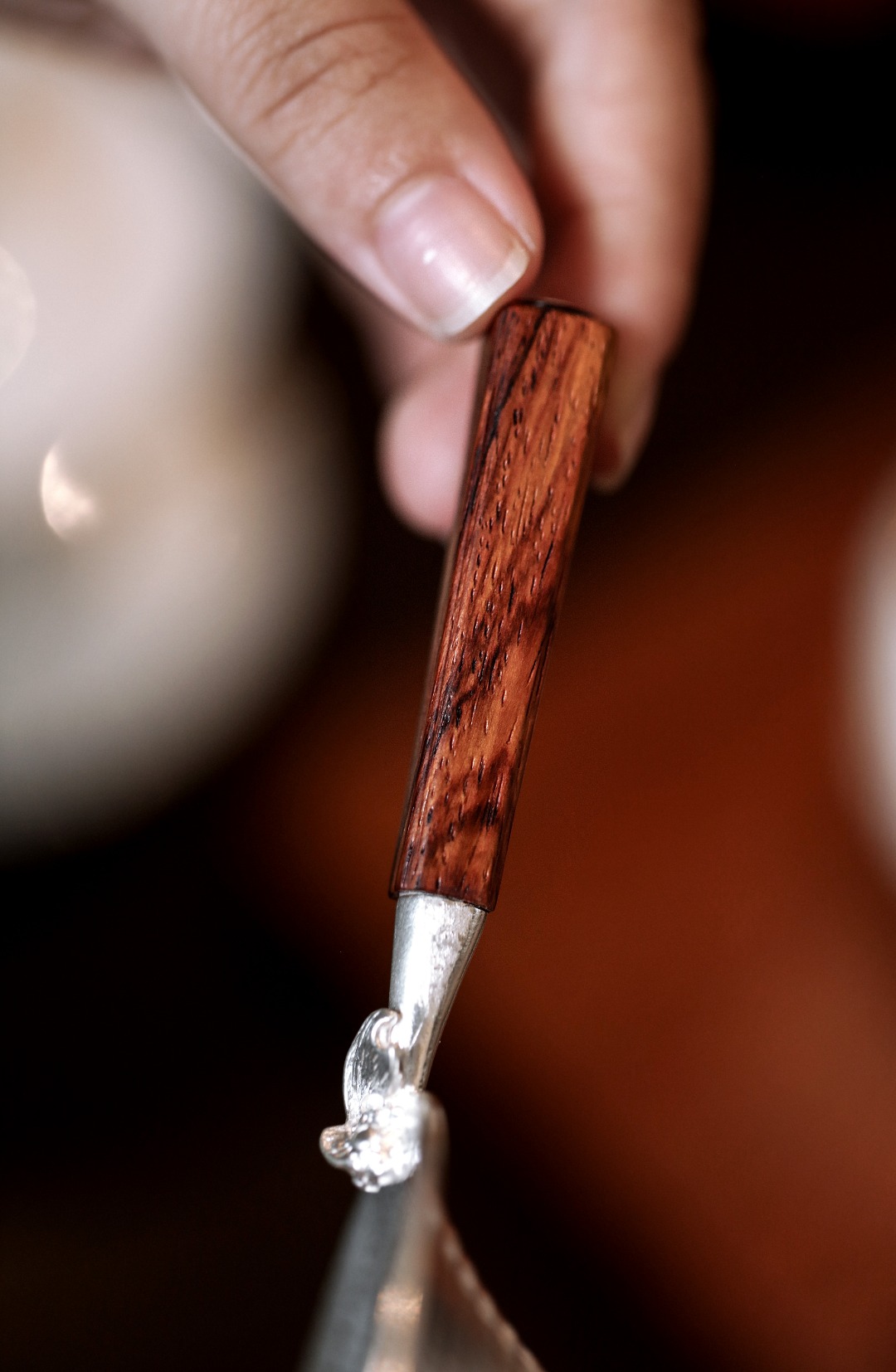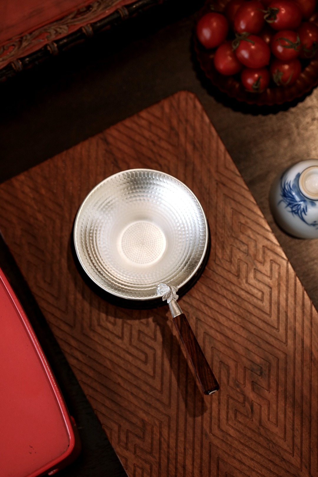 以纯银为材,手工敲打锤目纹,
