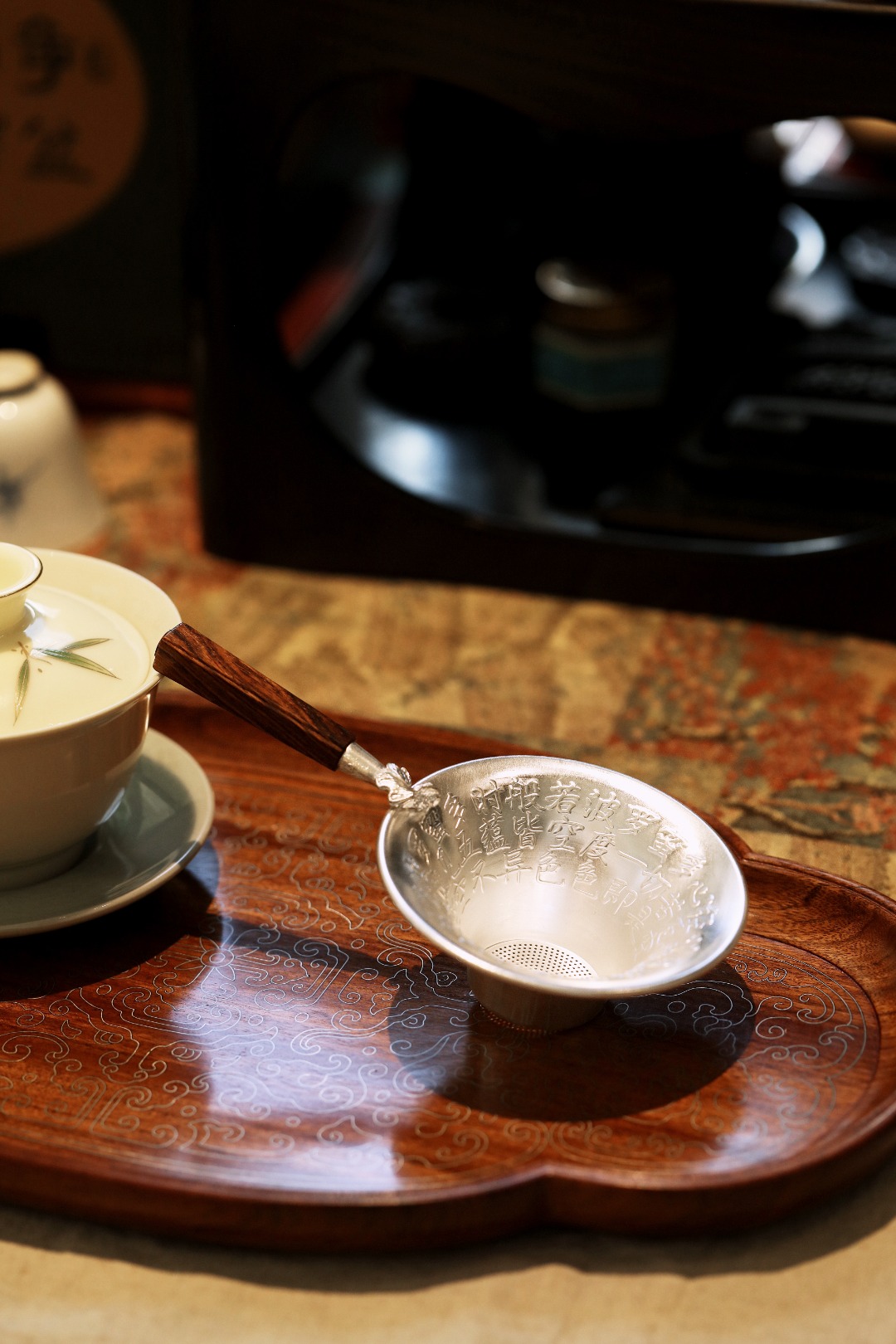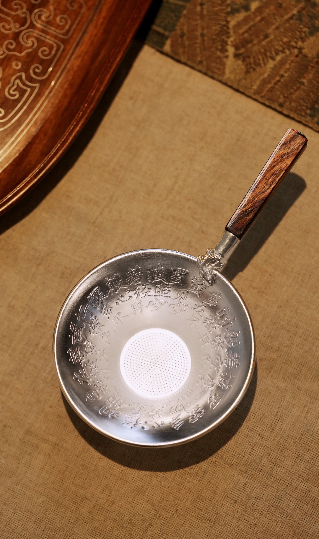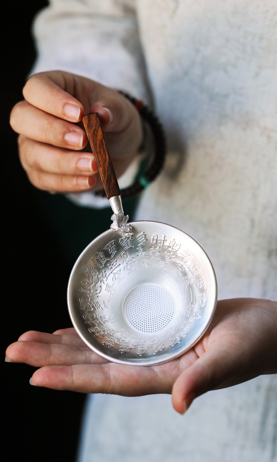 以纯银为材,手工敲打心经纹