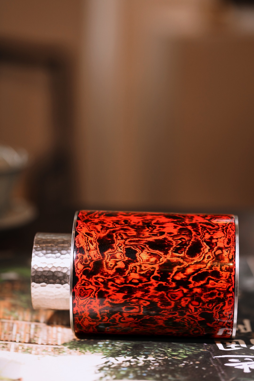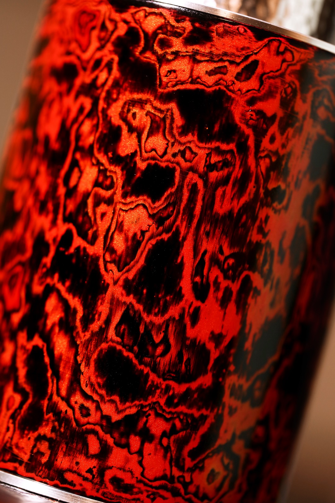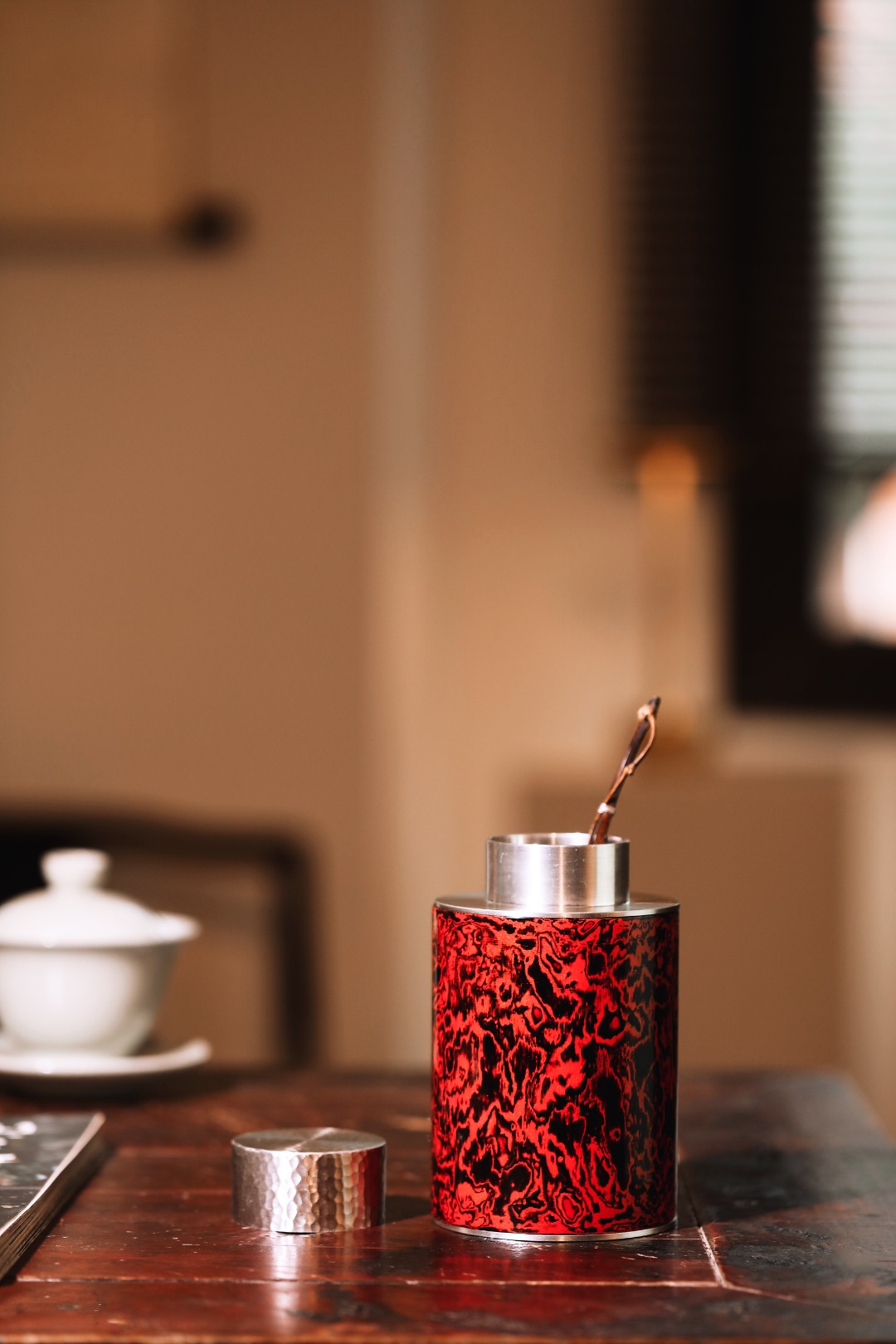 罐身红锦色漆精心髹饰