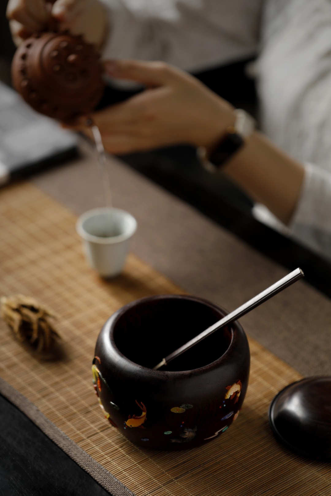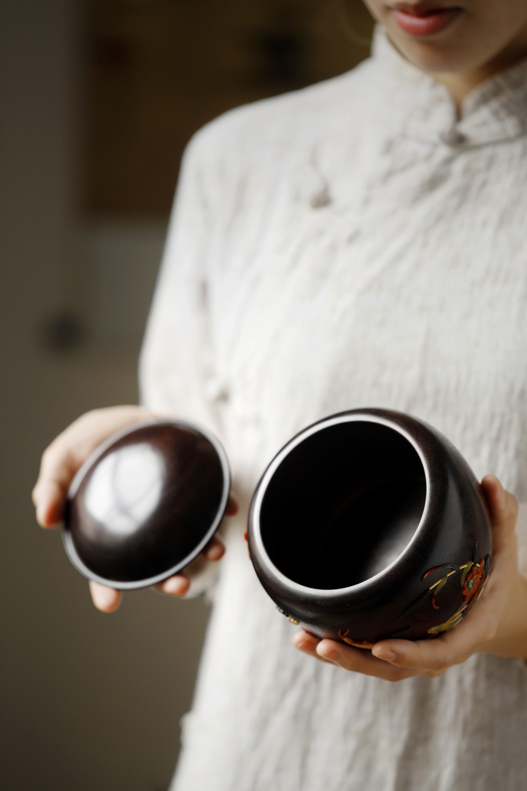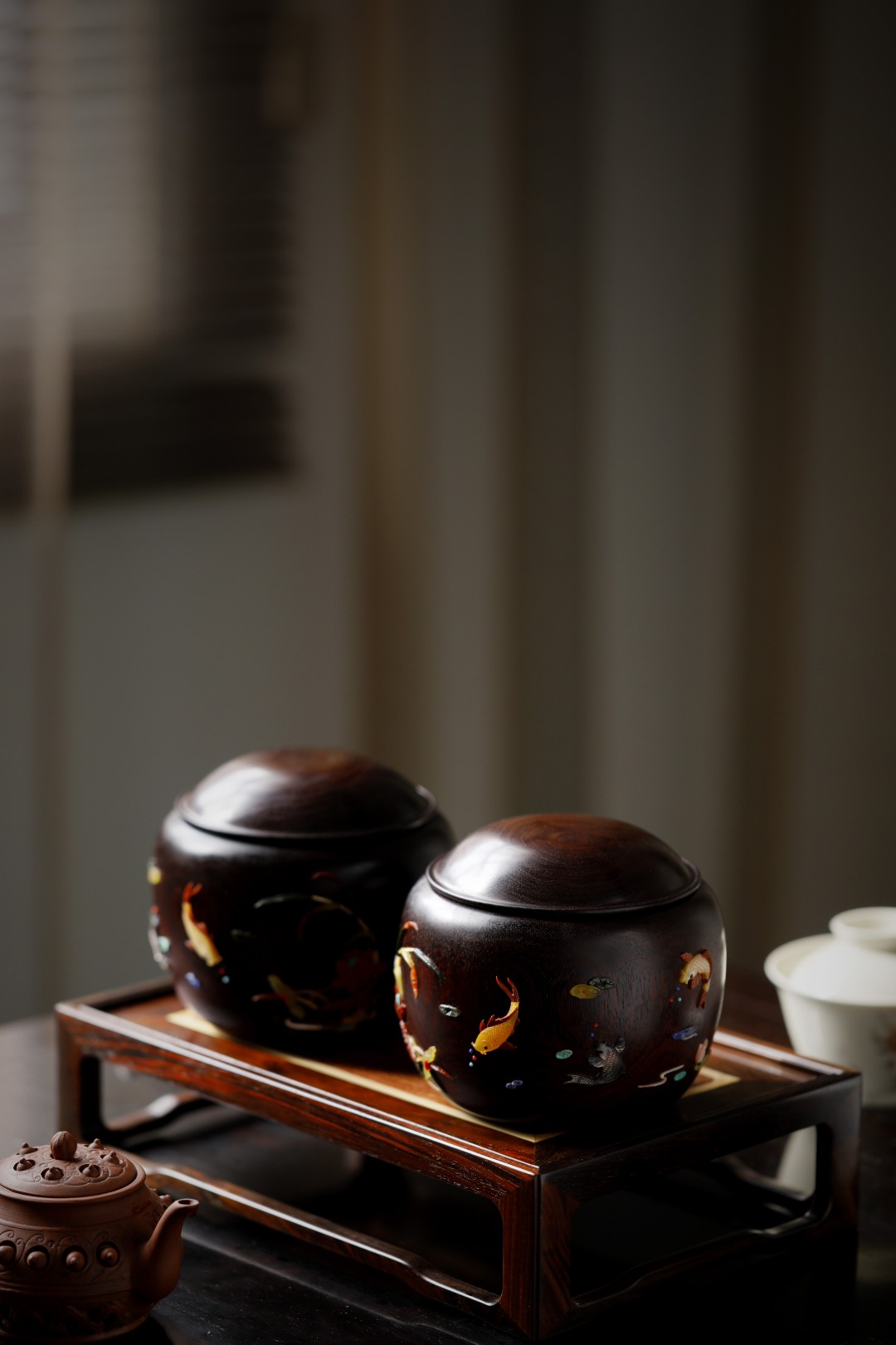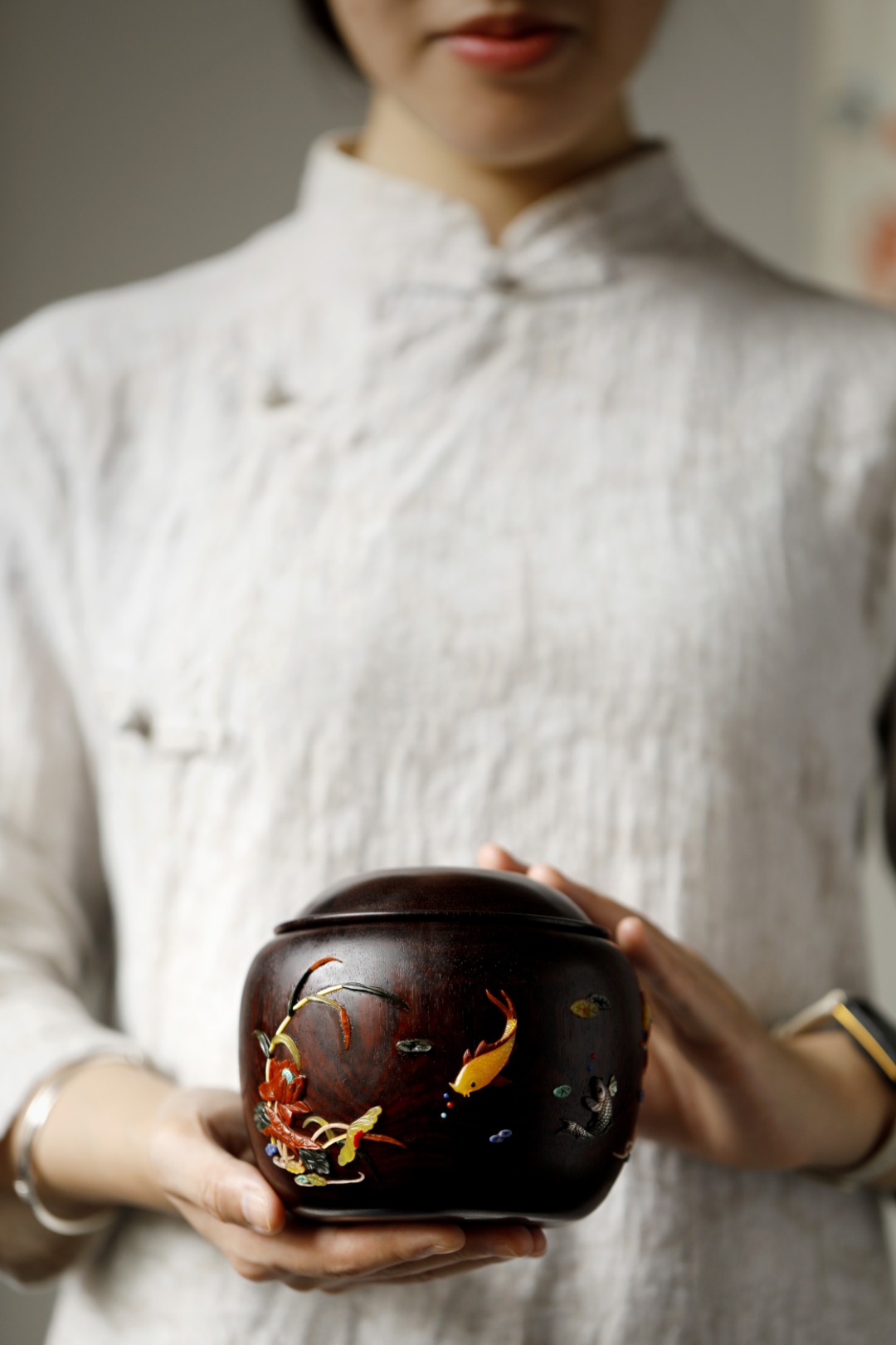 高油密紫檀整木挖制,外壁百宝嵌图,
