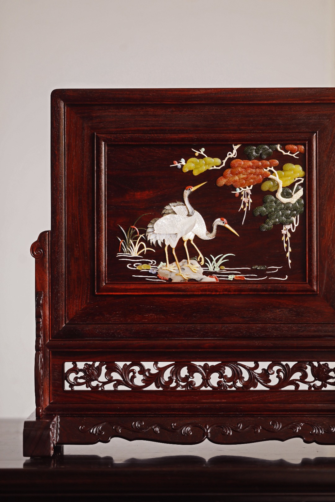 屏心以百宝诸珍镶嵌,寓意吉祥。