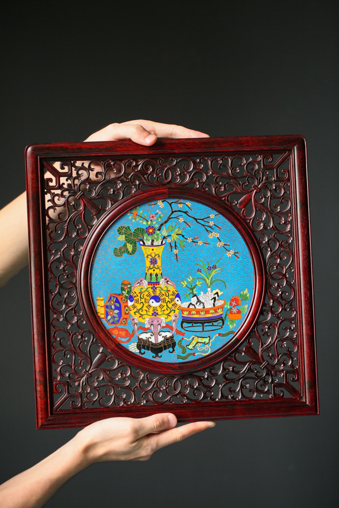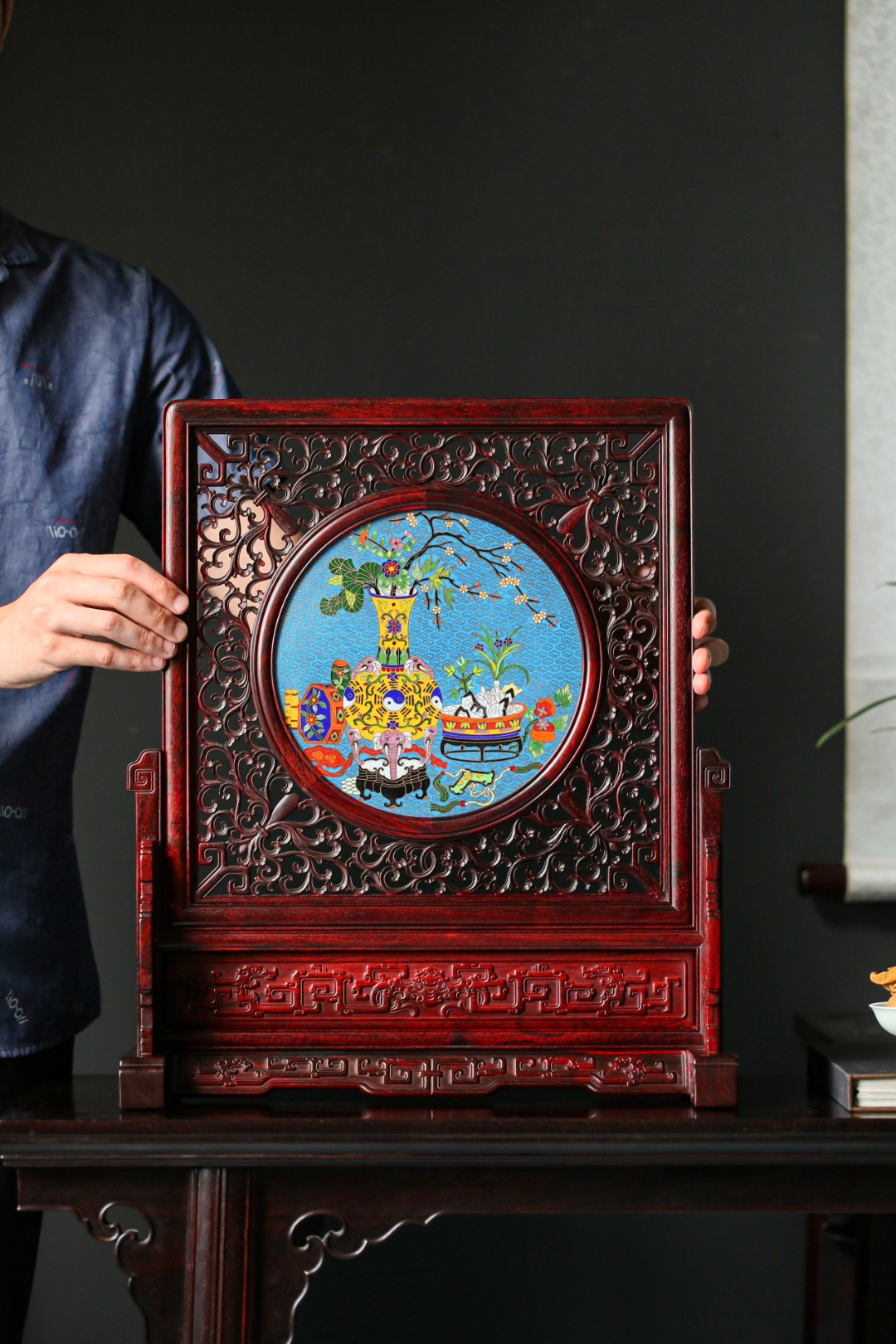 小叶紫檀老料镶嵌景泰蓝制器,做工细腻考究,