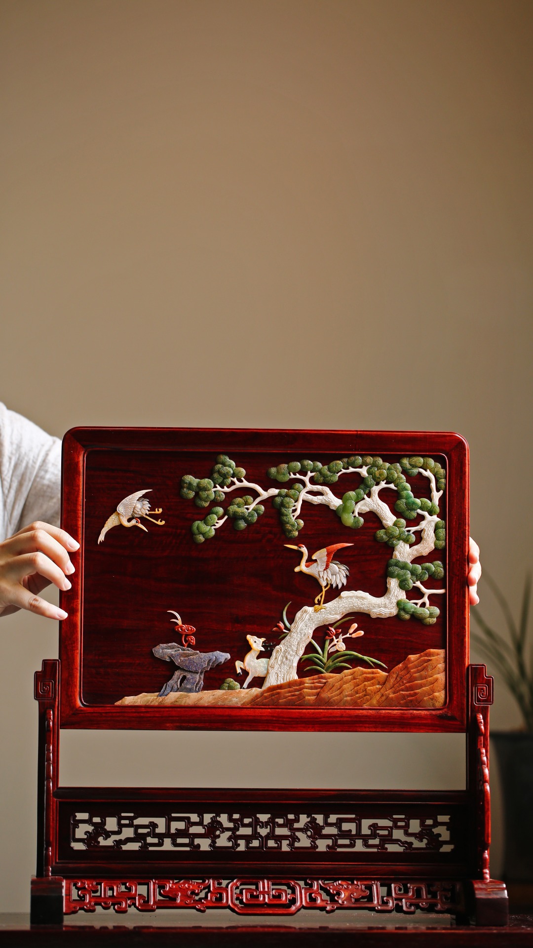 百宝巧嵌鹤鹿同春图纹,古雅隽丽之韵,