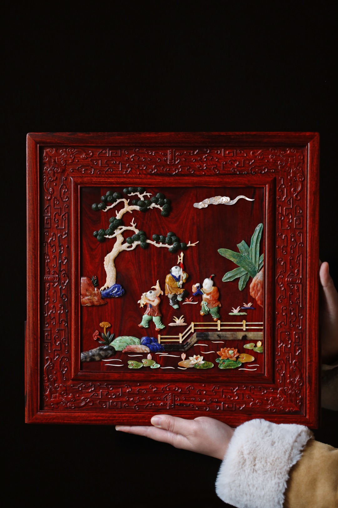 一面手工百宝嵌图,寓意吉庆;