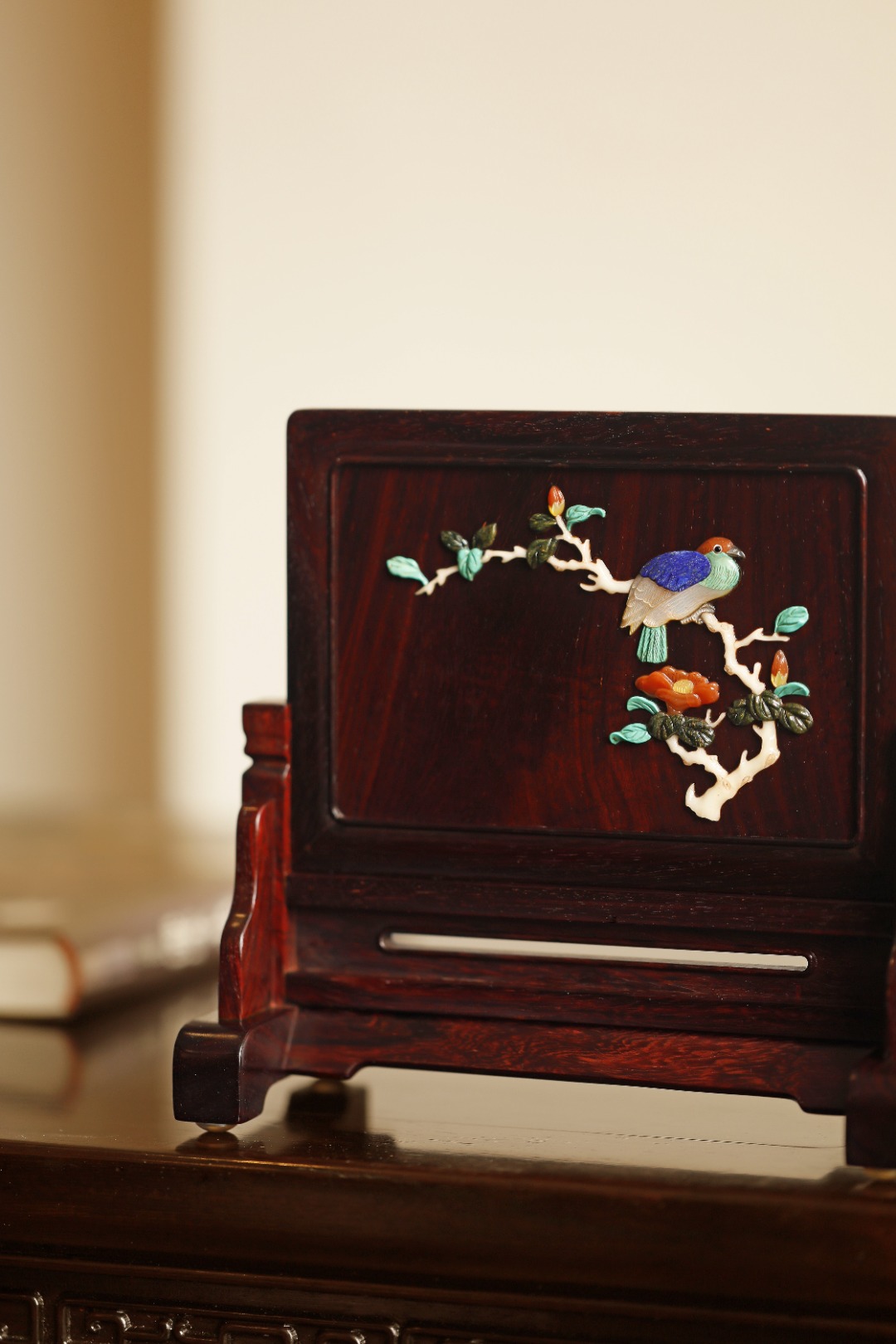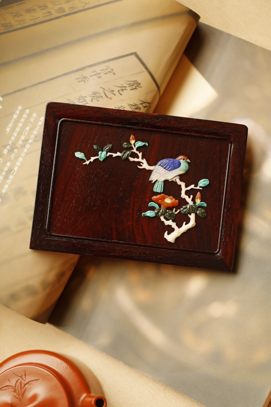百宝嵌作玉堂花鸟图,琳琅满目,