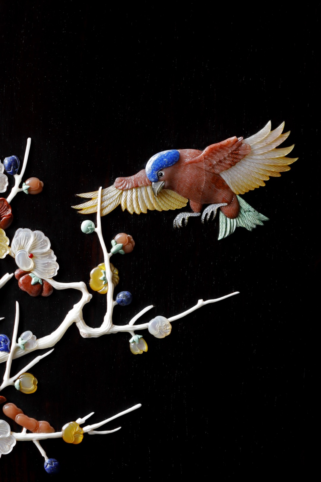 独板屏心百宝嵌花鸟图;
