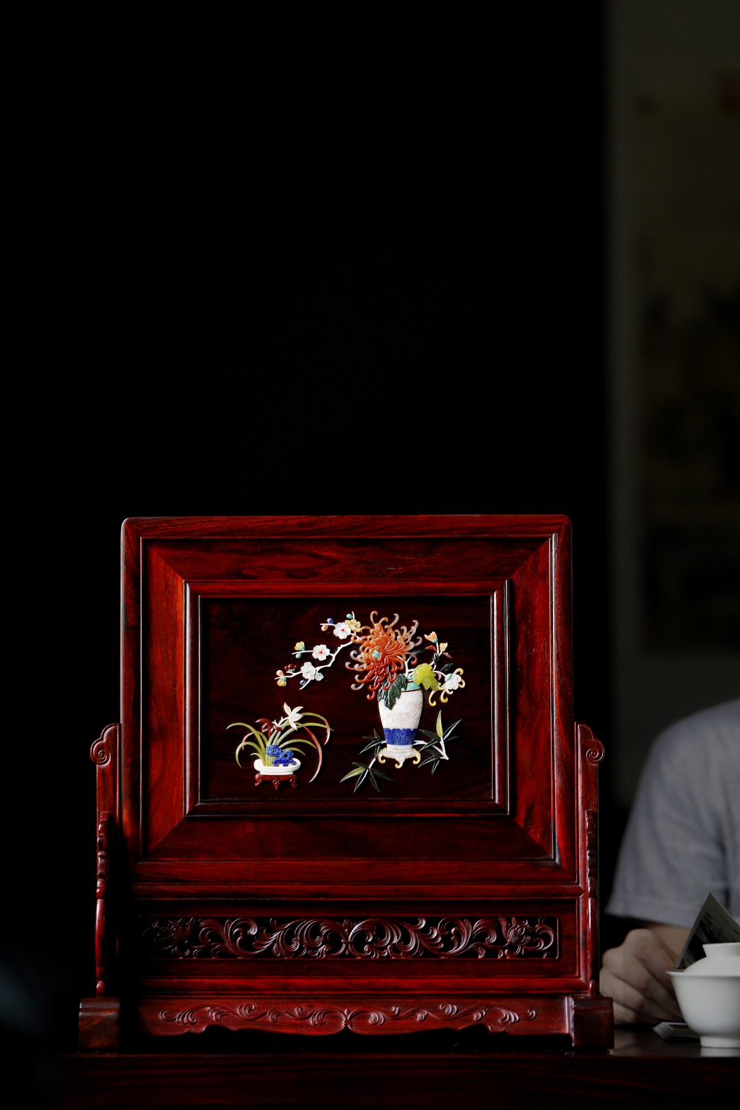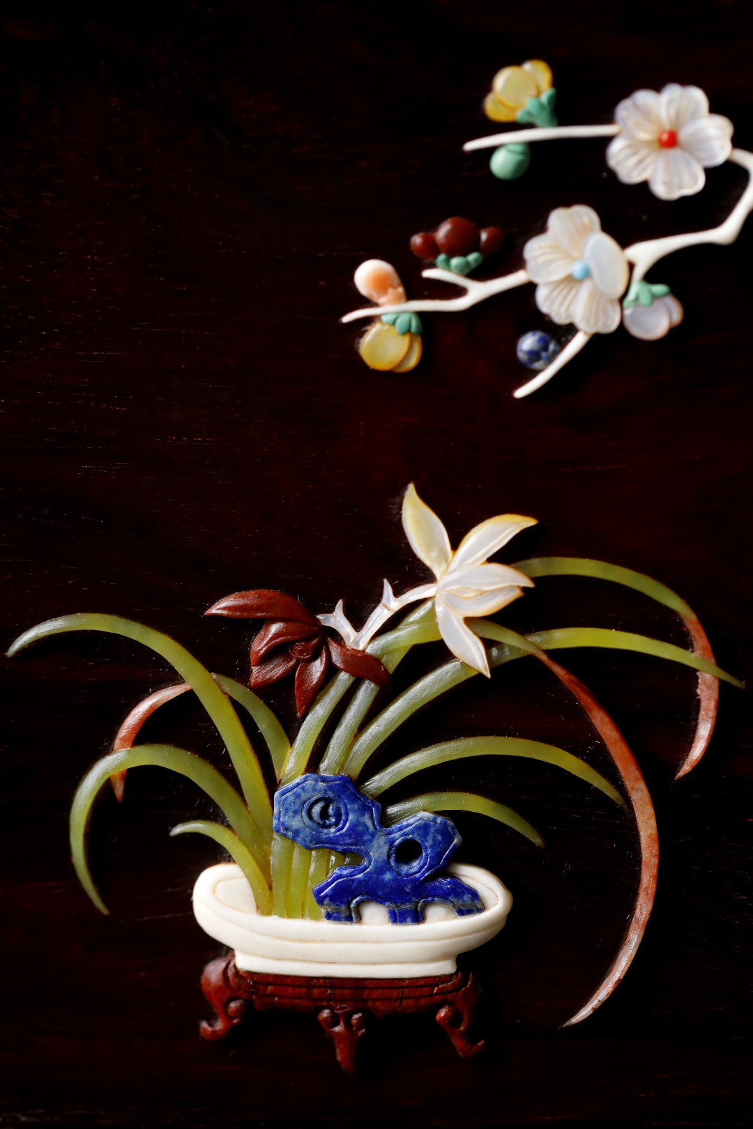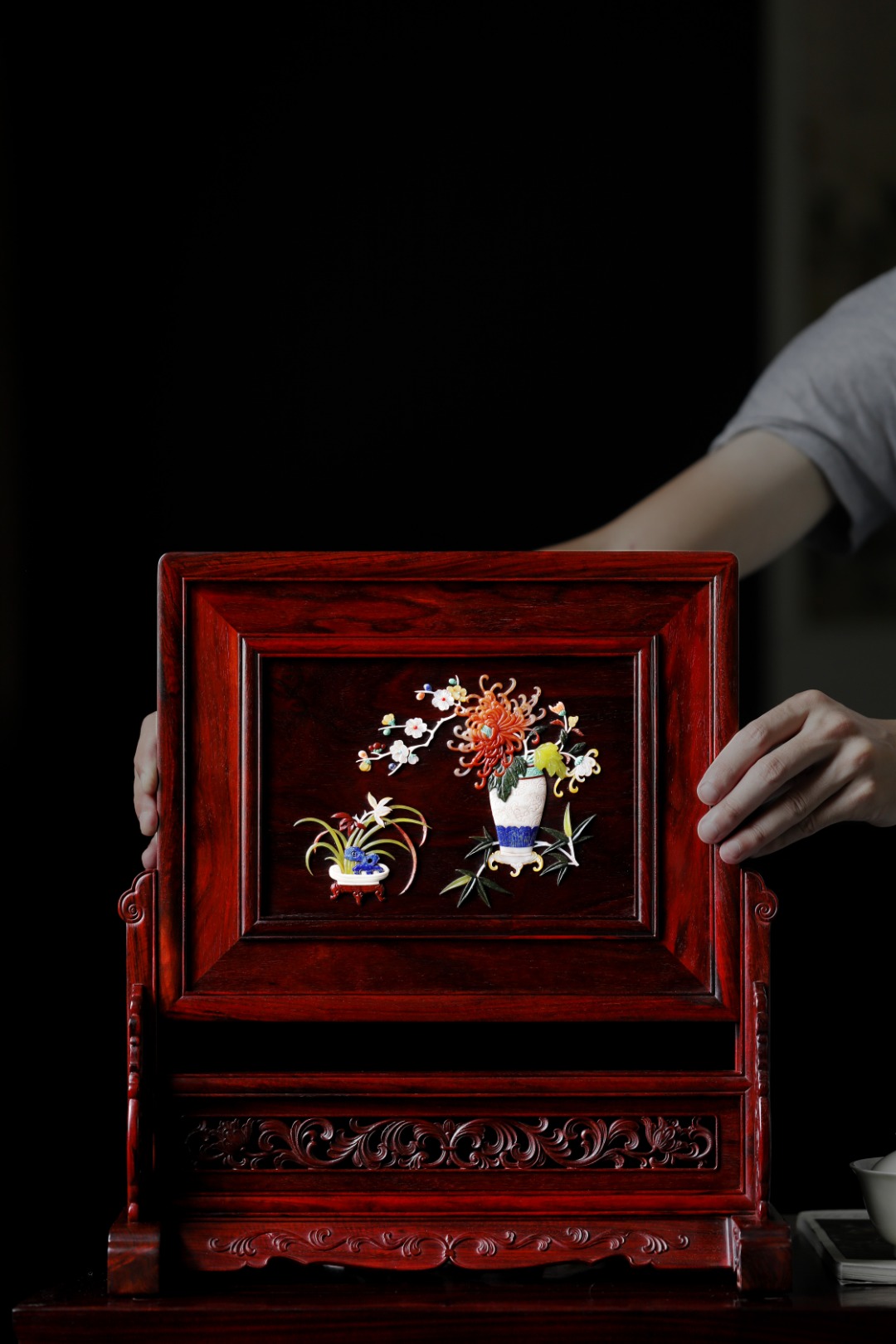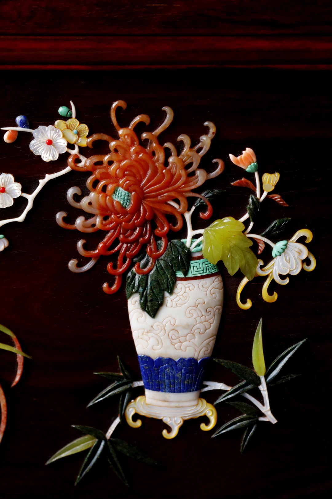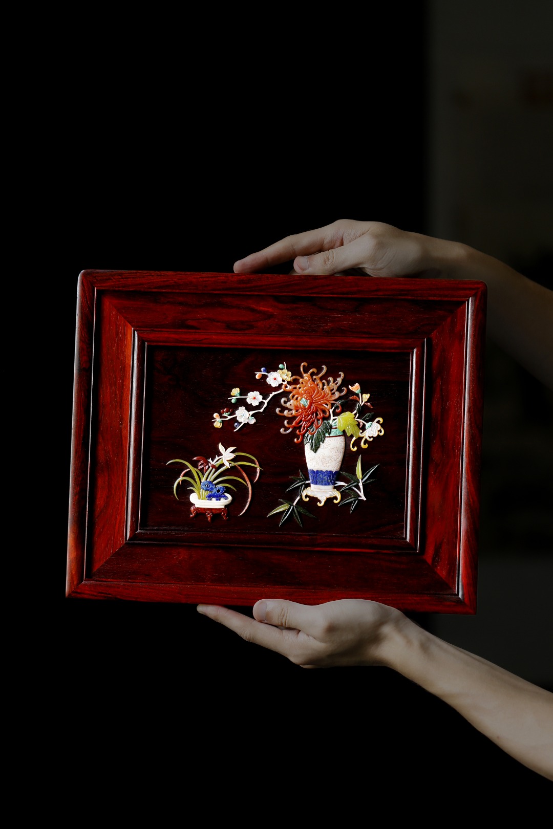 百宝嵌花卉图,纹饰满地;