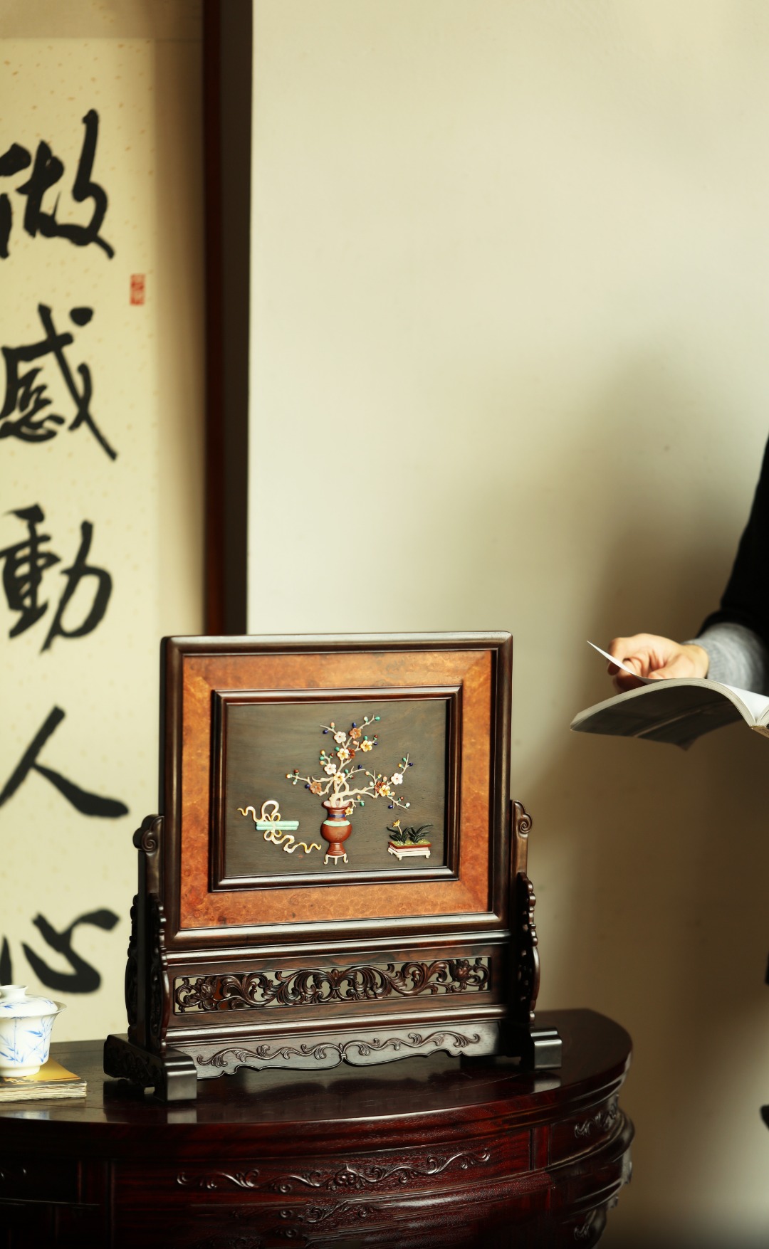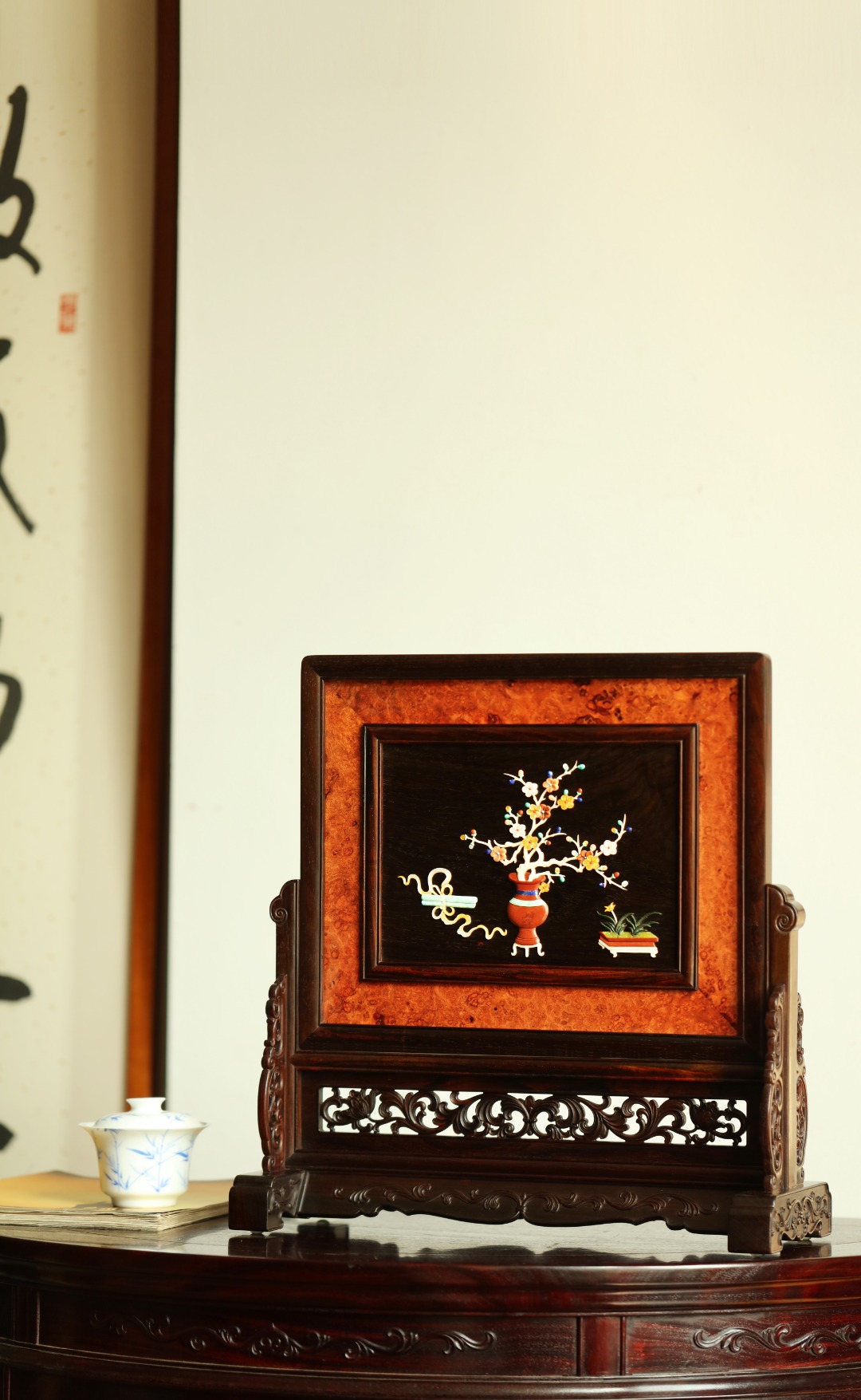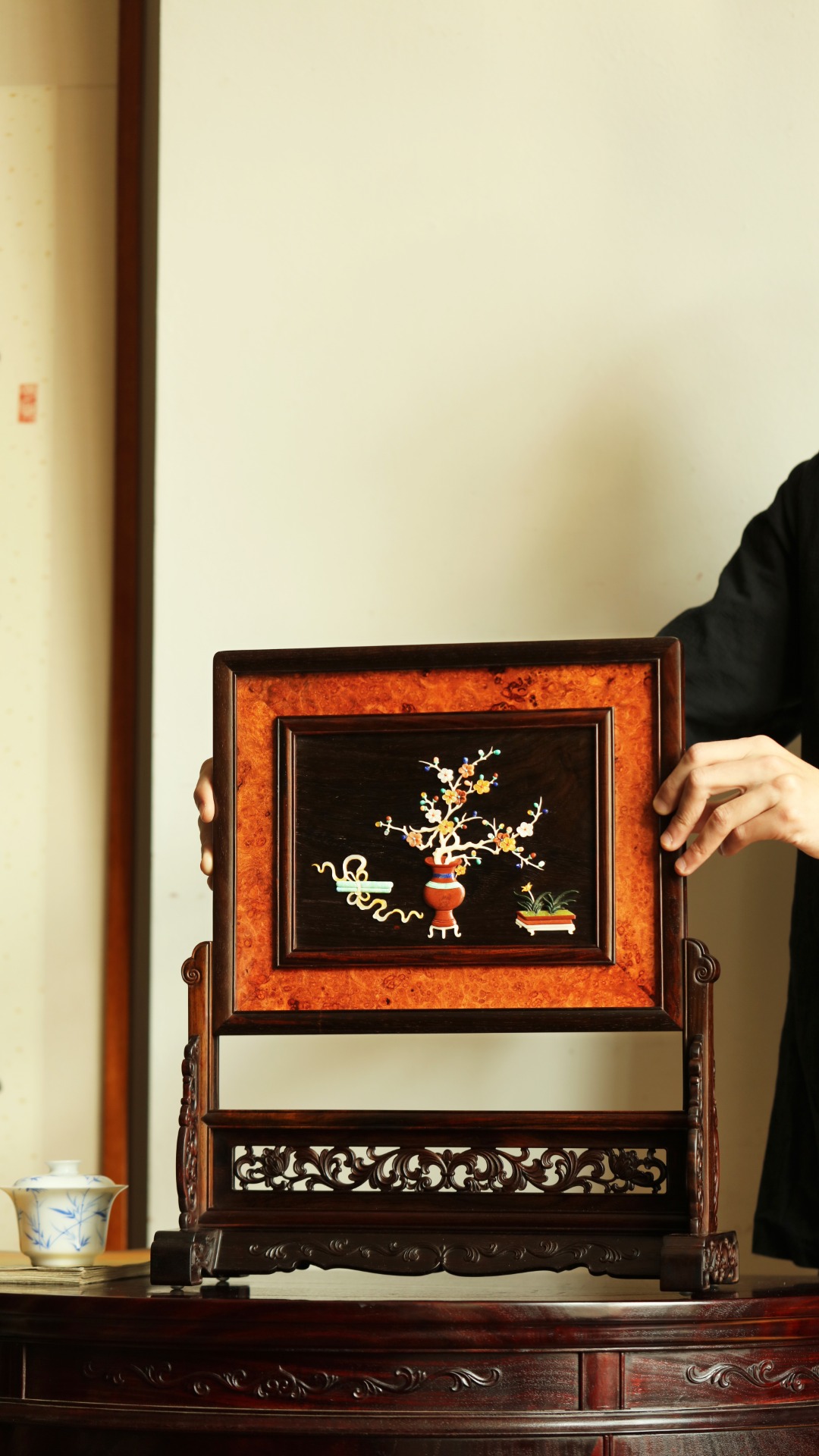 酸枝镶嵌瘿子满瘤料,端庄古雅。