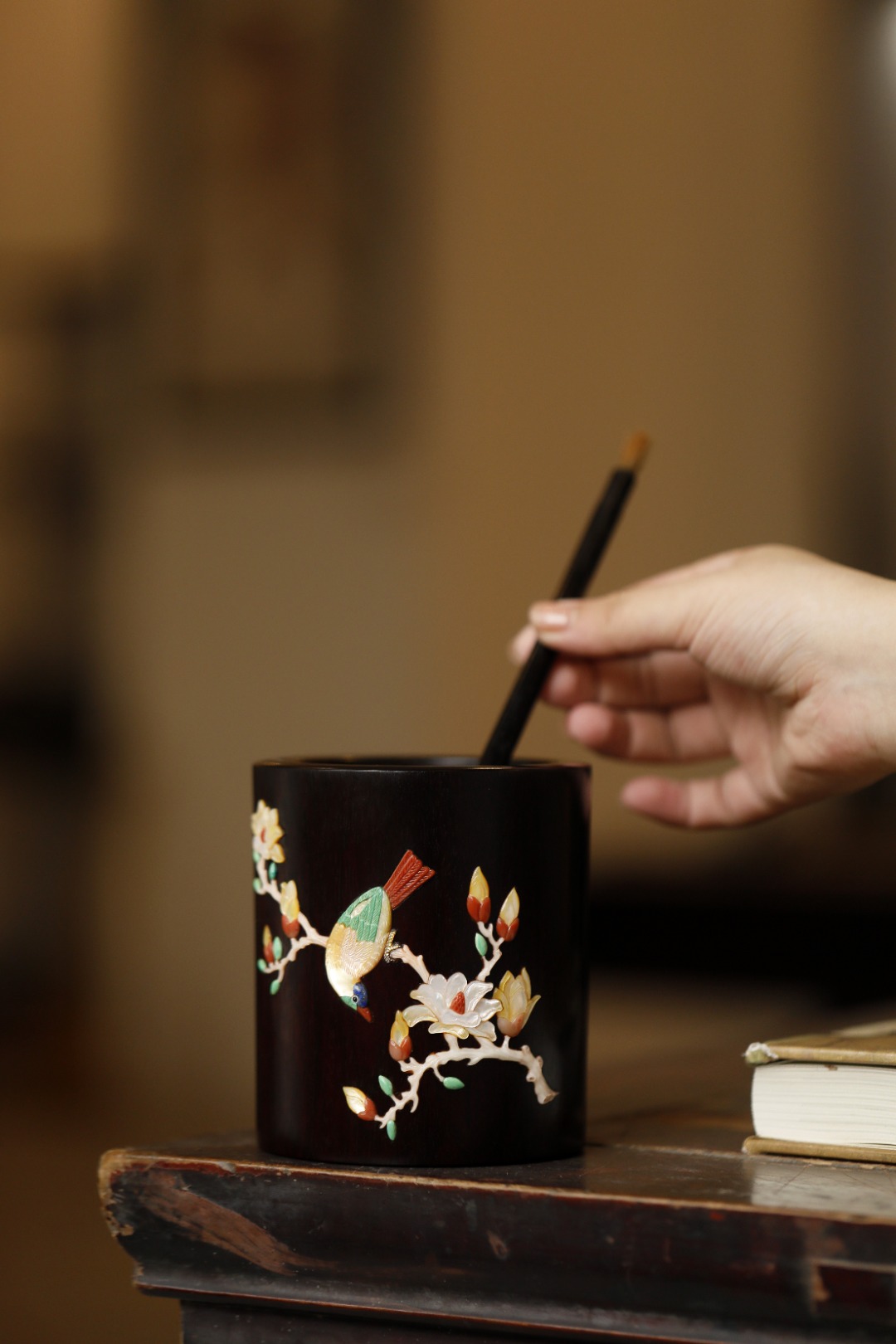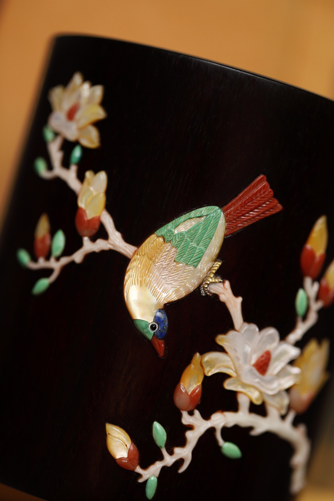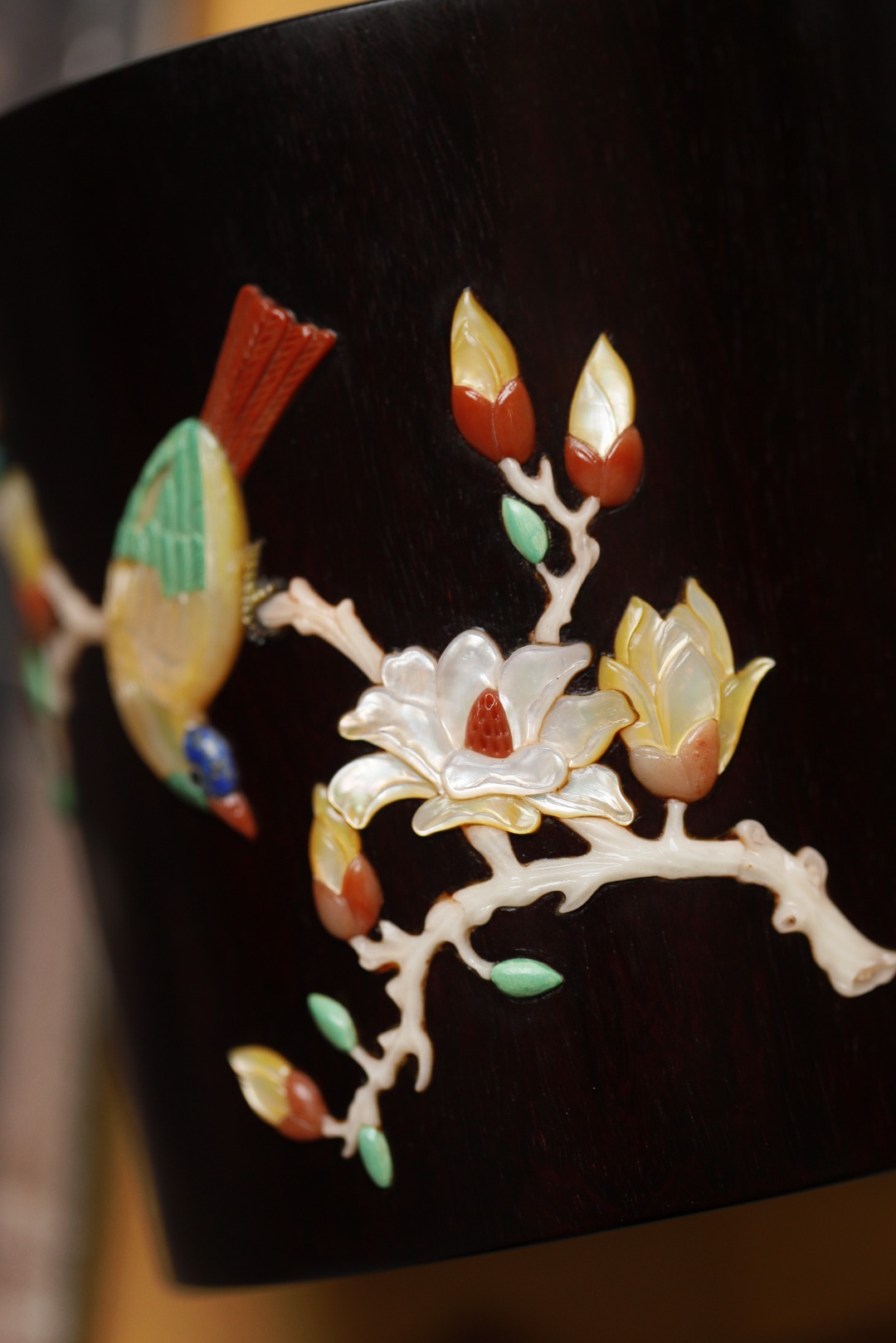 筒身嵌玉兰瑞鸟图,
