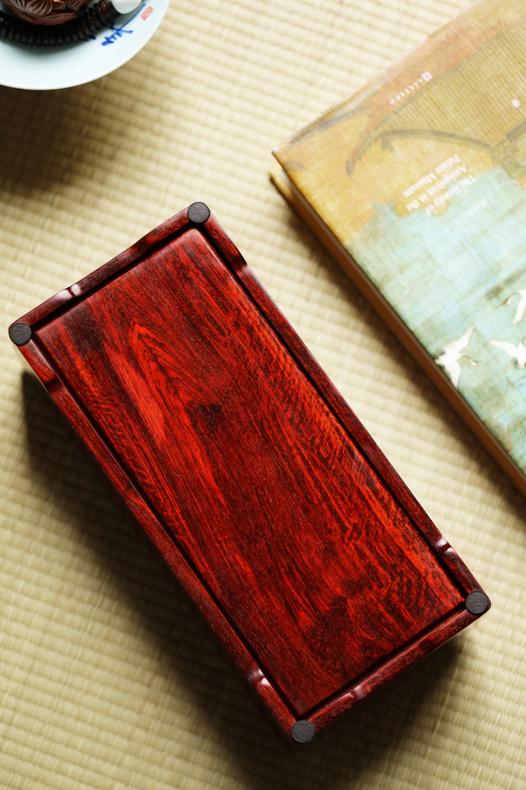 紫檀满水波老料,全独板制,榫卯结构。盒面百宝镶嵌牡丹彩蝶,整体精美华贵,收纳珍宝雅玩,赏心悦目!