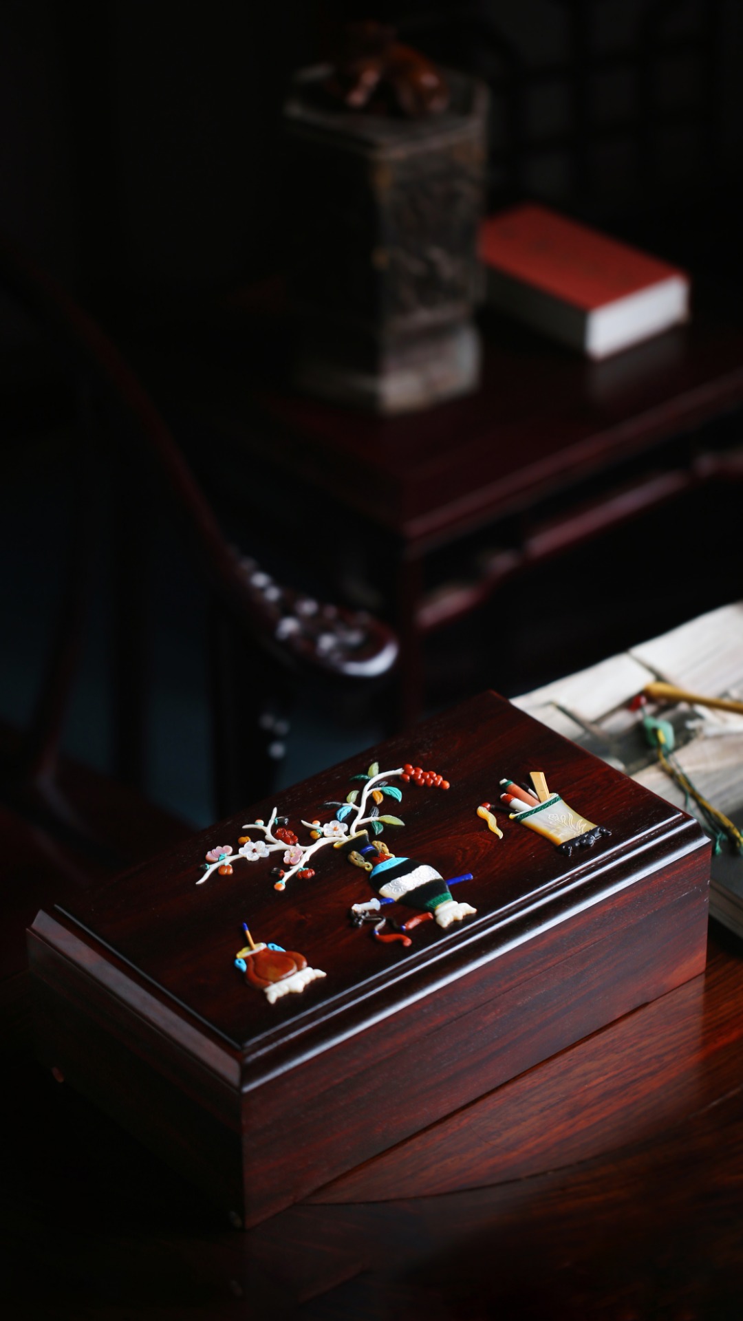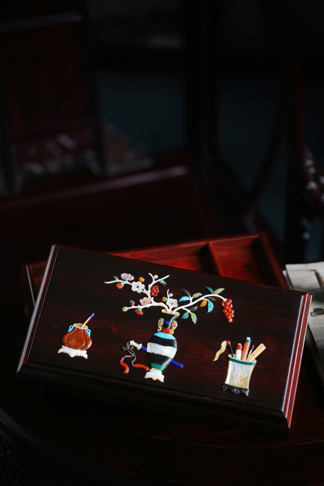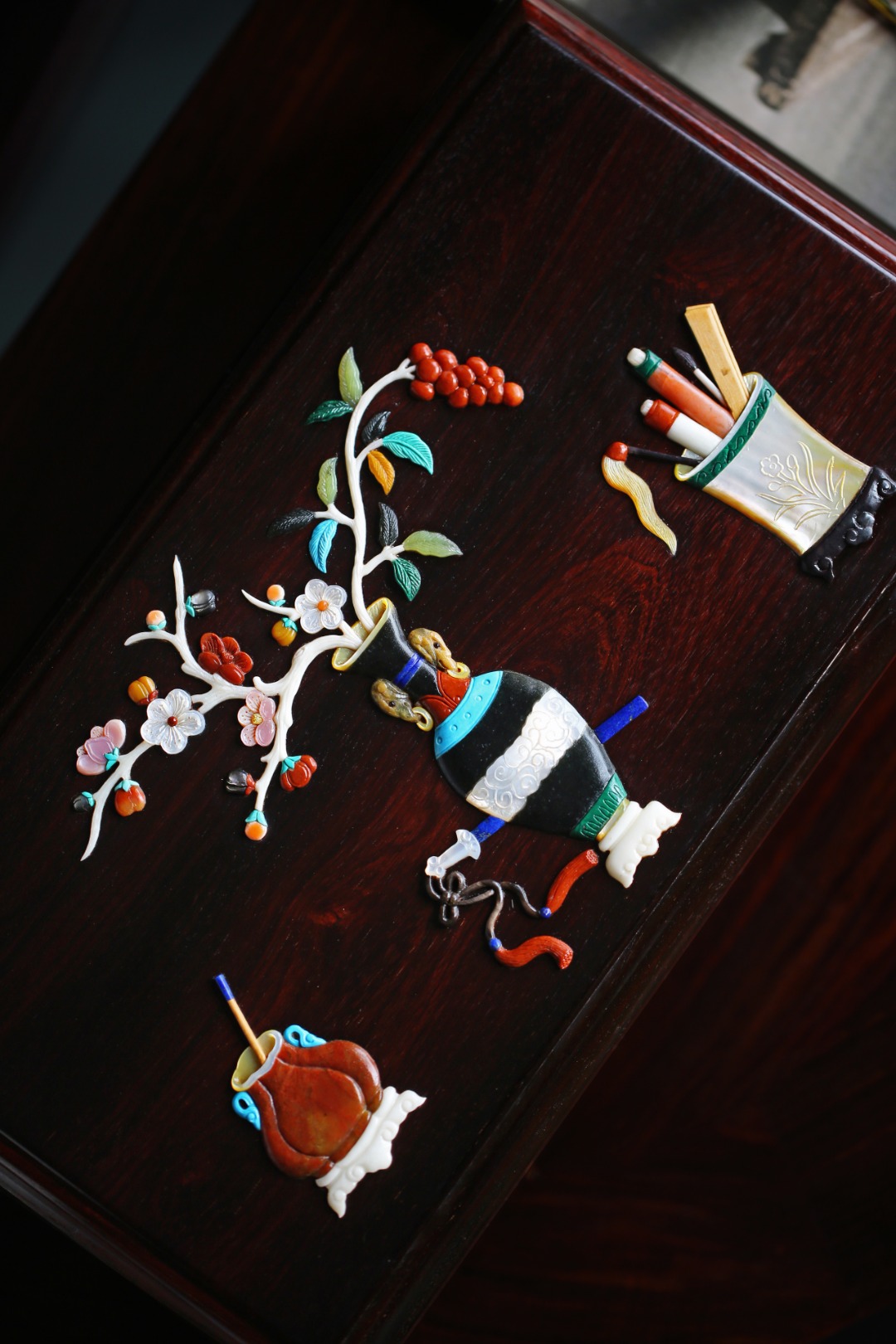 百宝镶嵌博古图纹饰,高雅澹泊,
