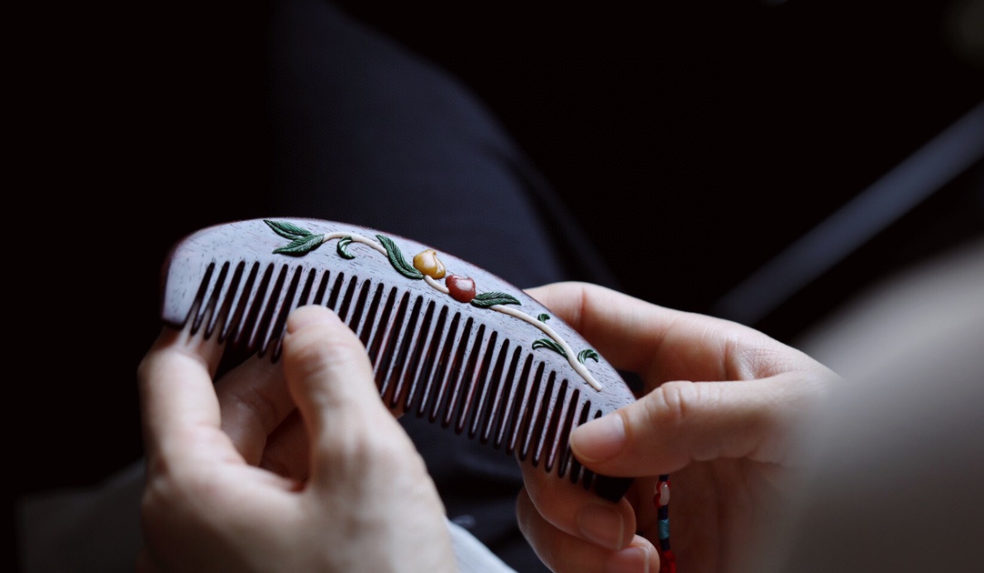 手持木梳,青丝细齿,