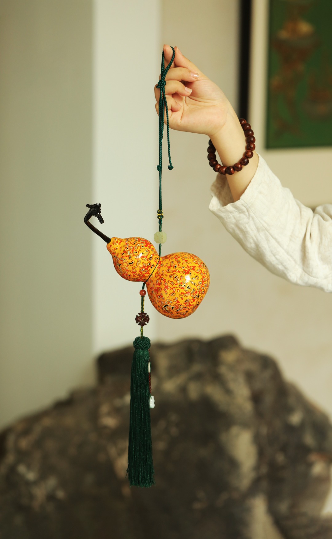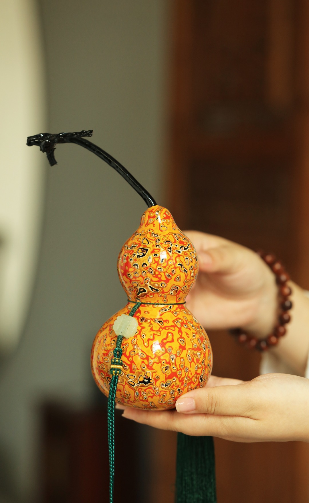 选取天然葫芦,手工髹黄金大漆,