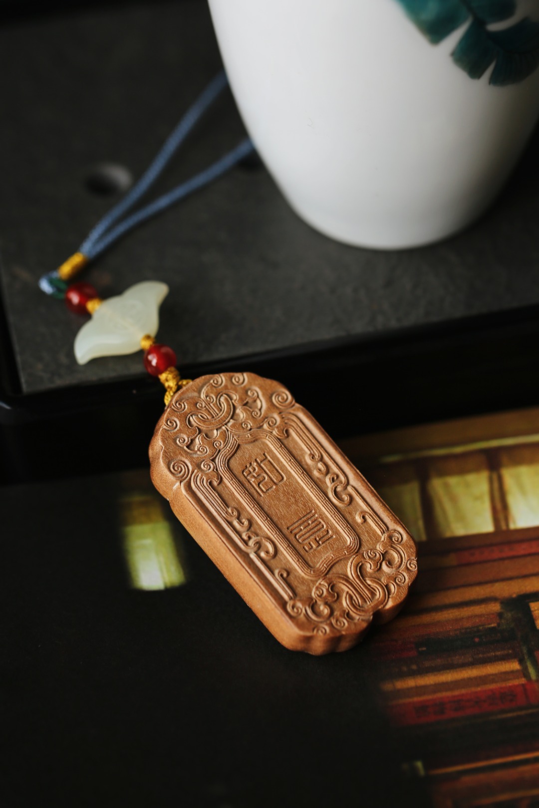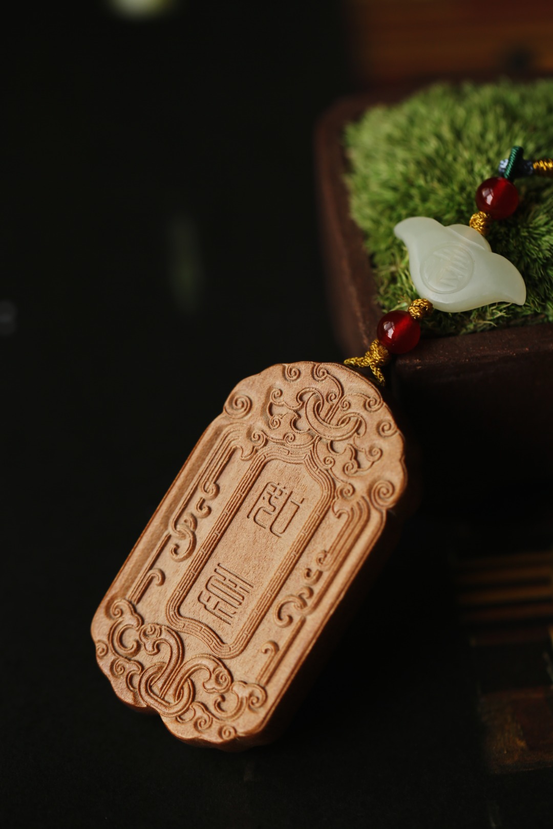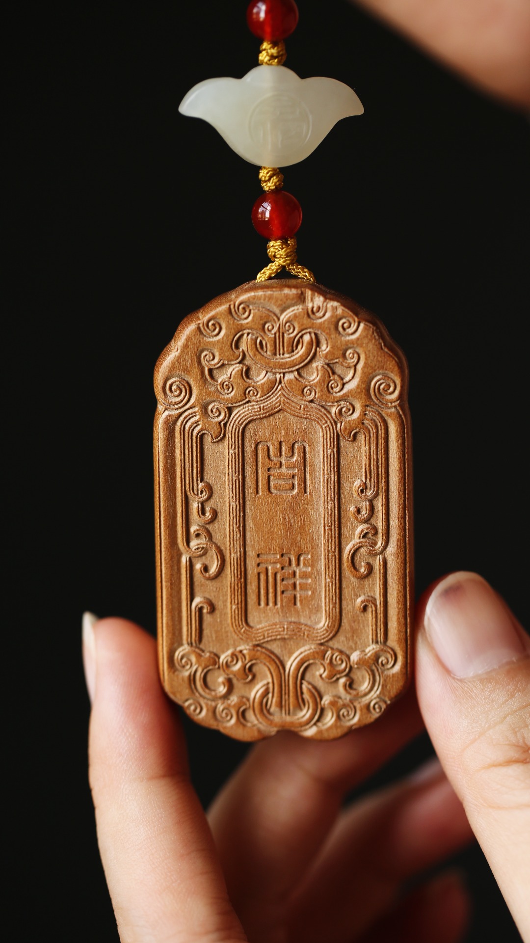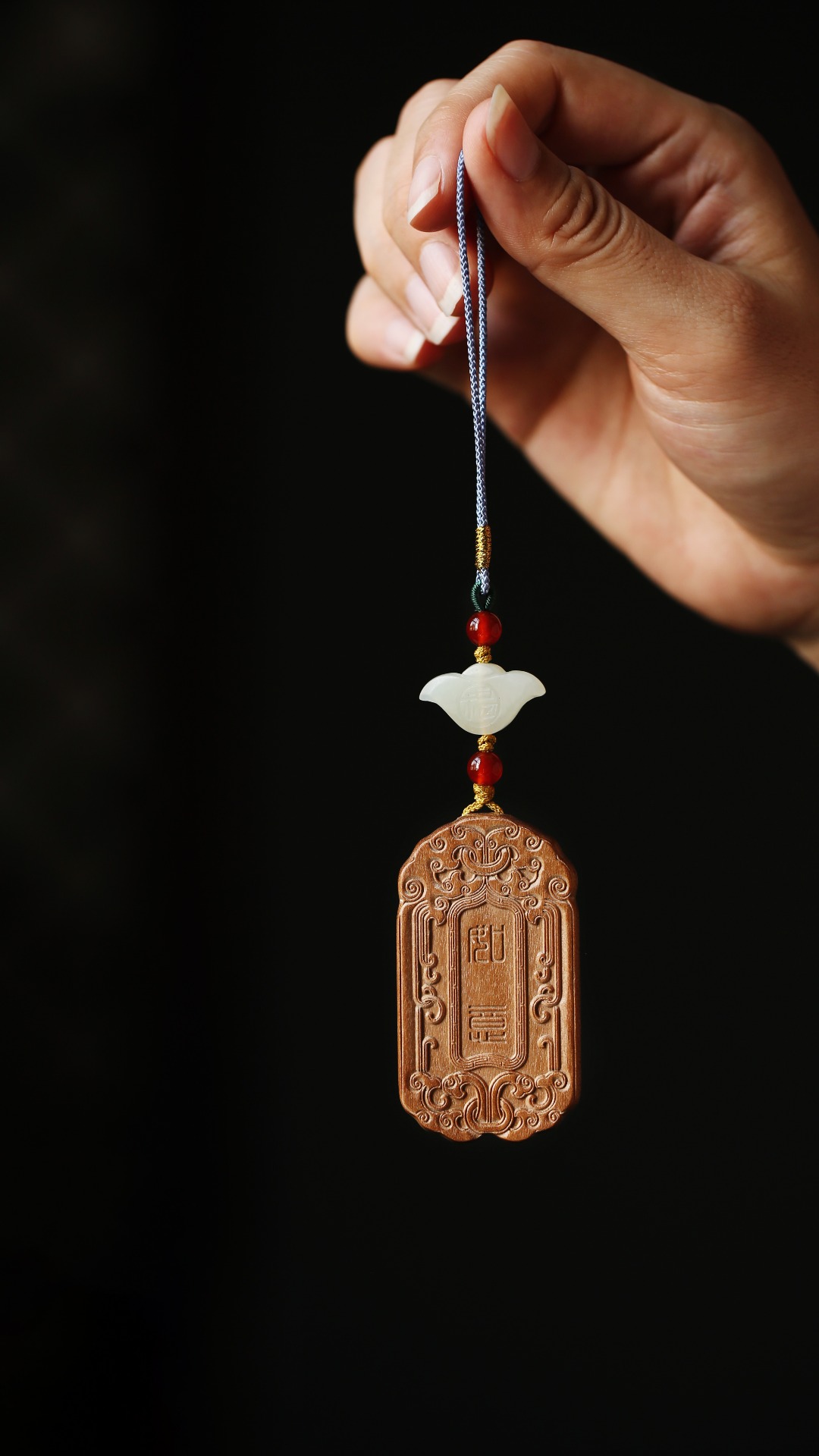 双面雕吉祥如意纹,中式清新挂绳设计,