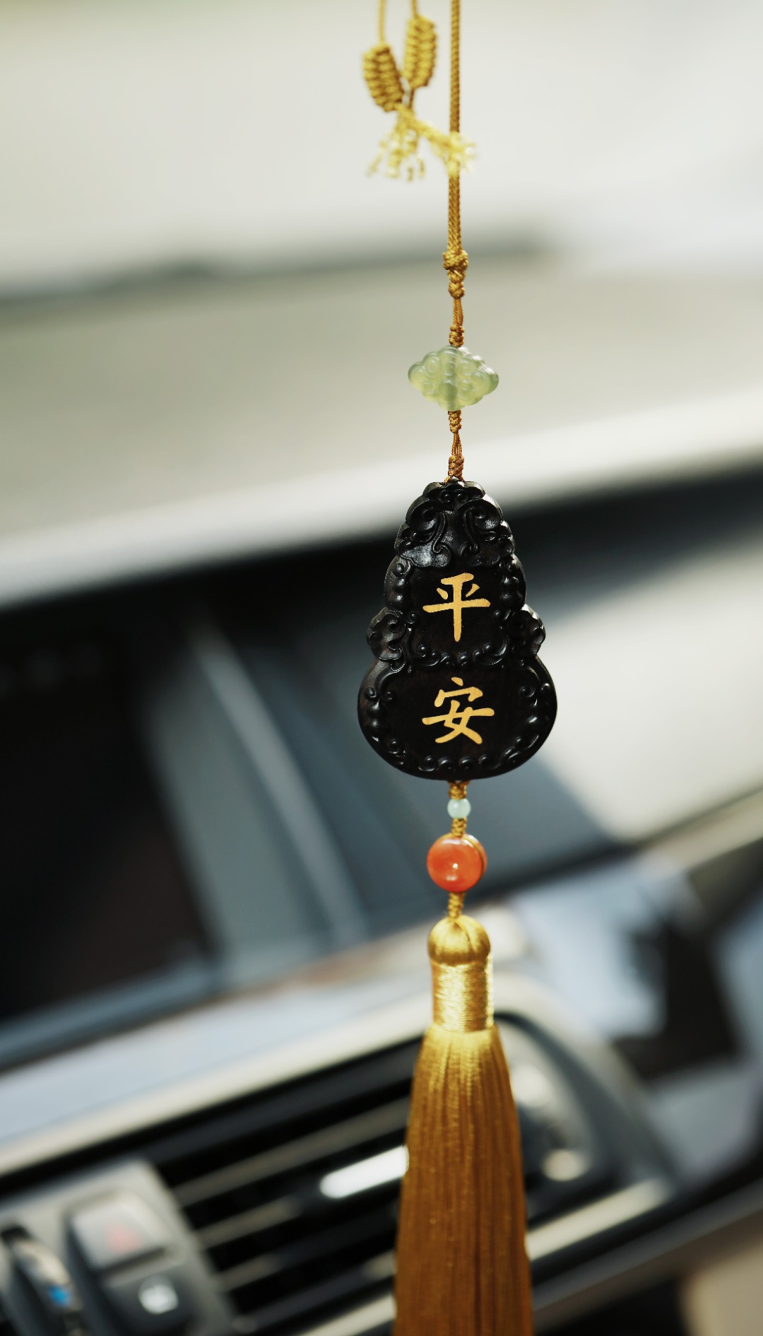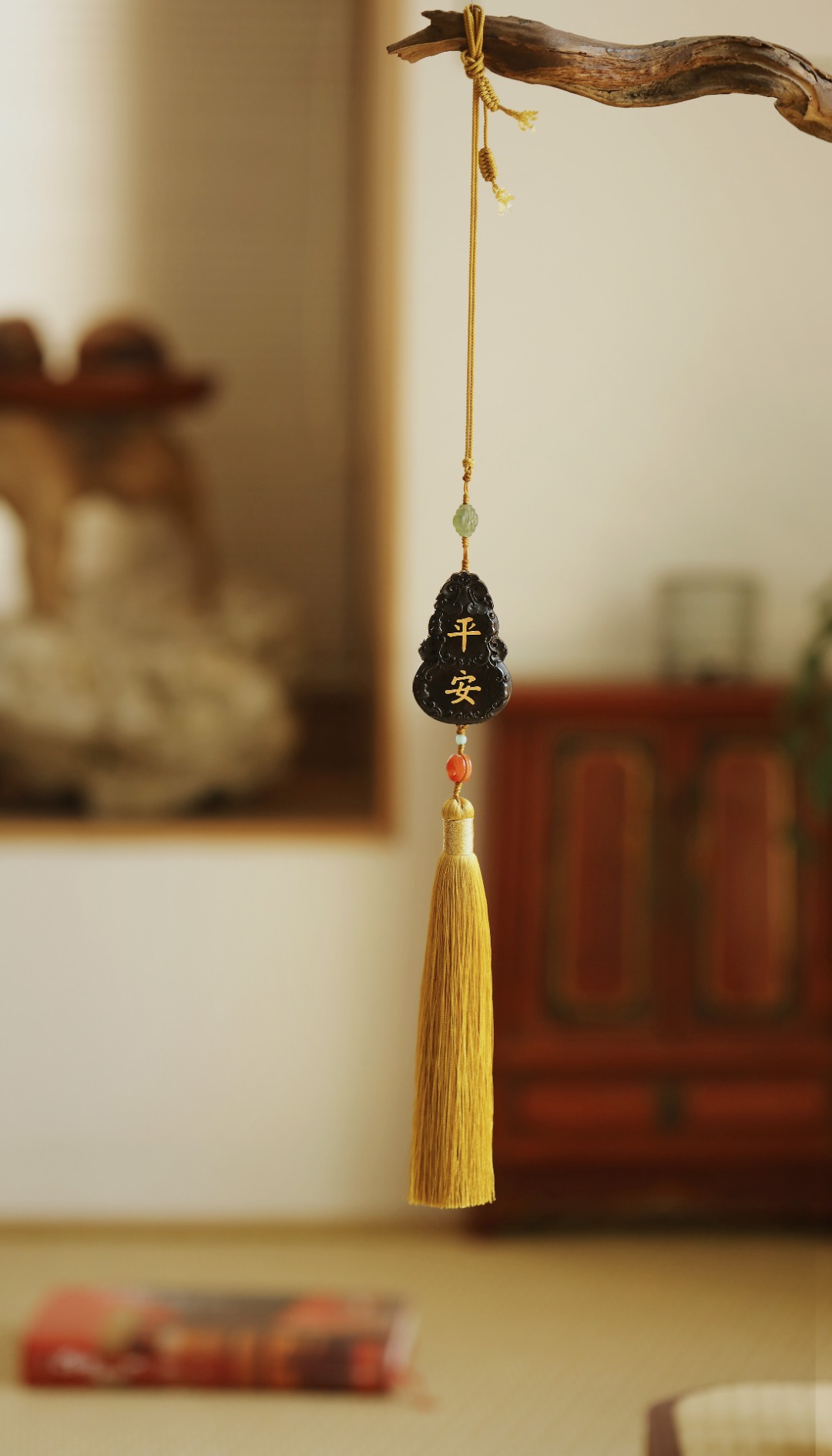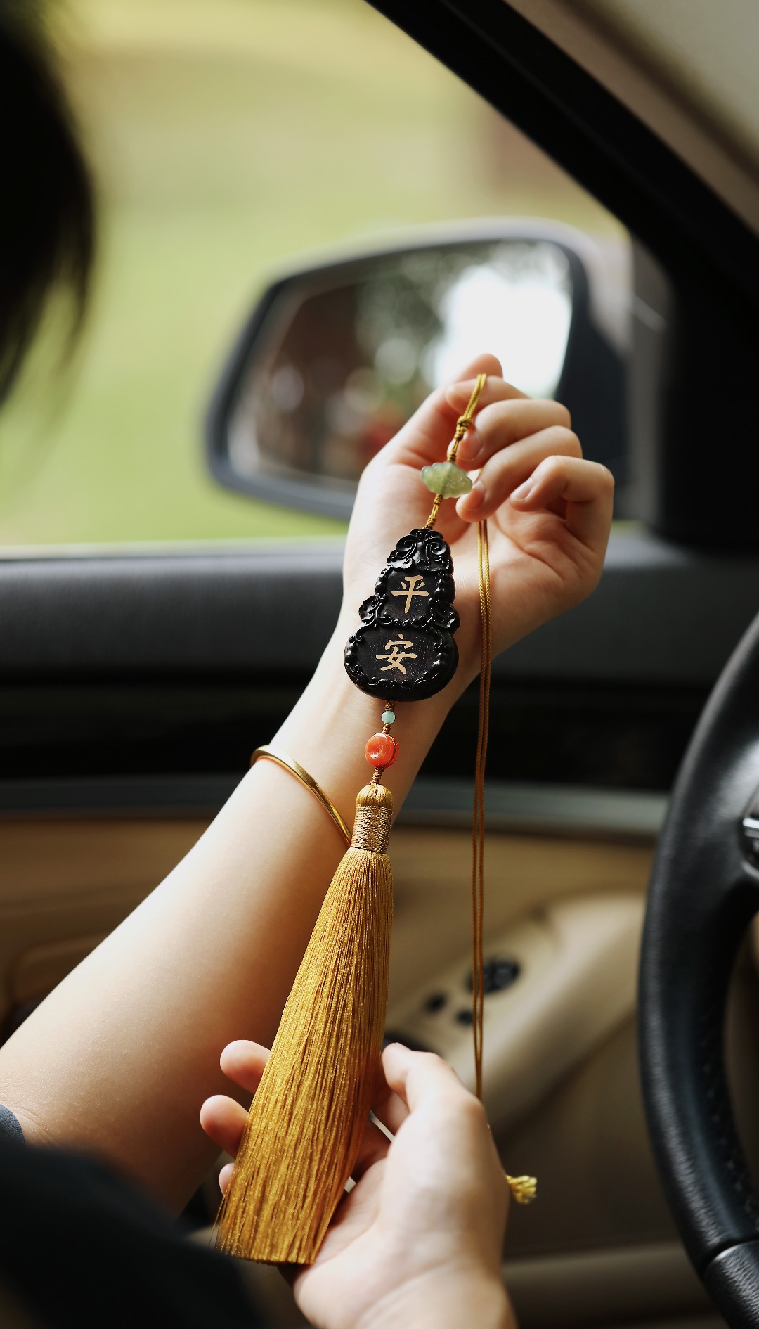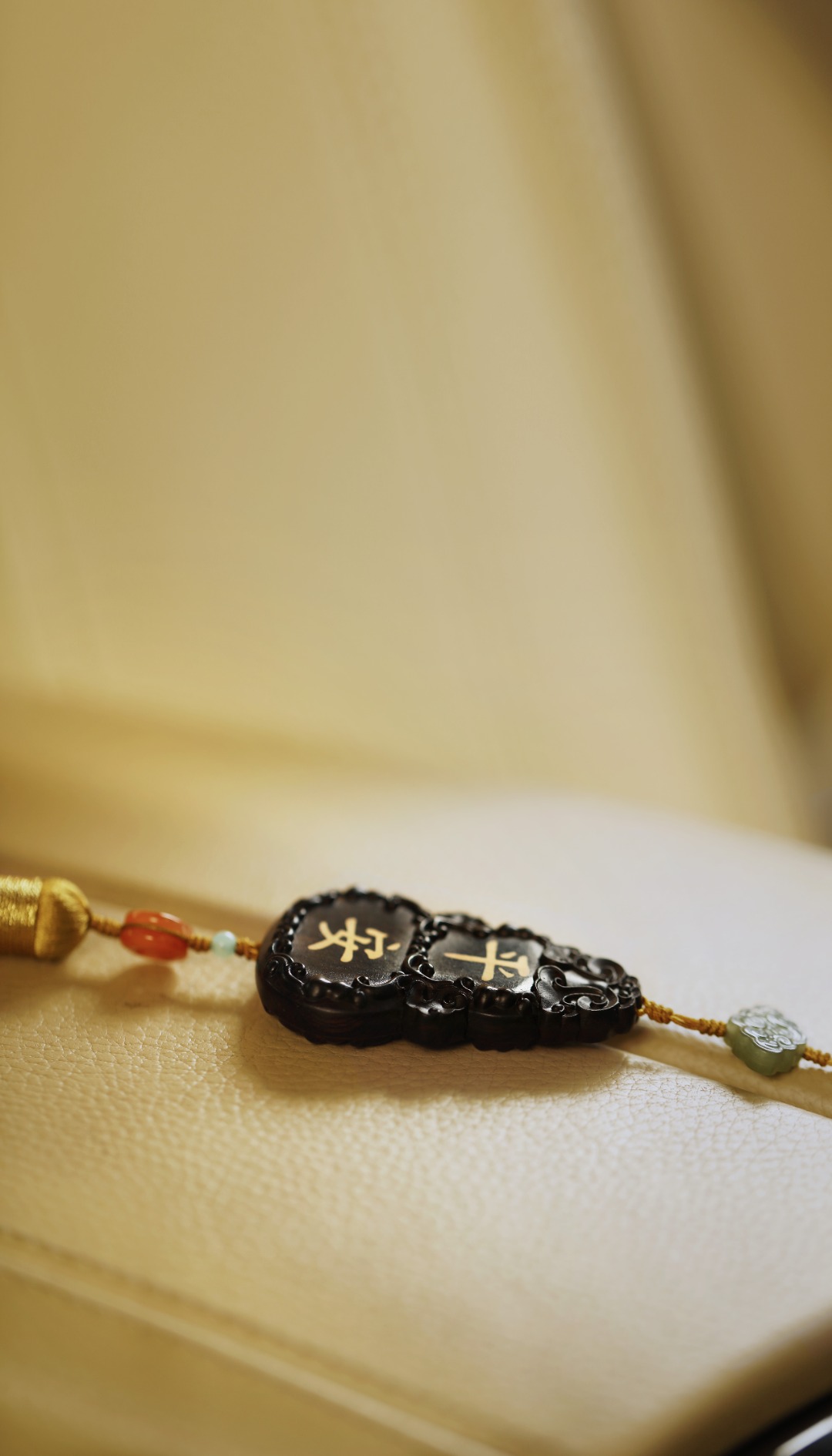 两面手工镶嵌黄杨木,搭配宫廷流苏,