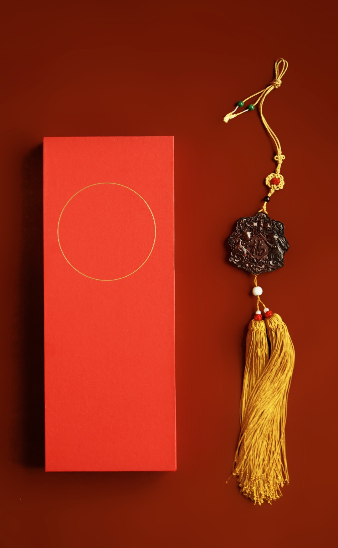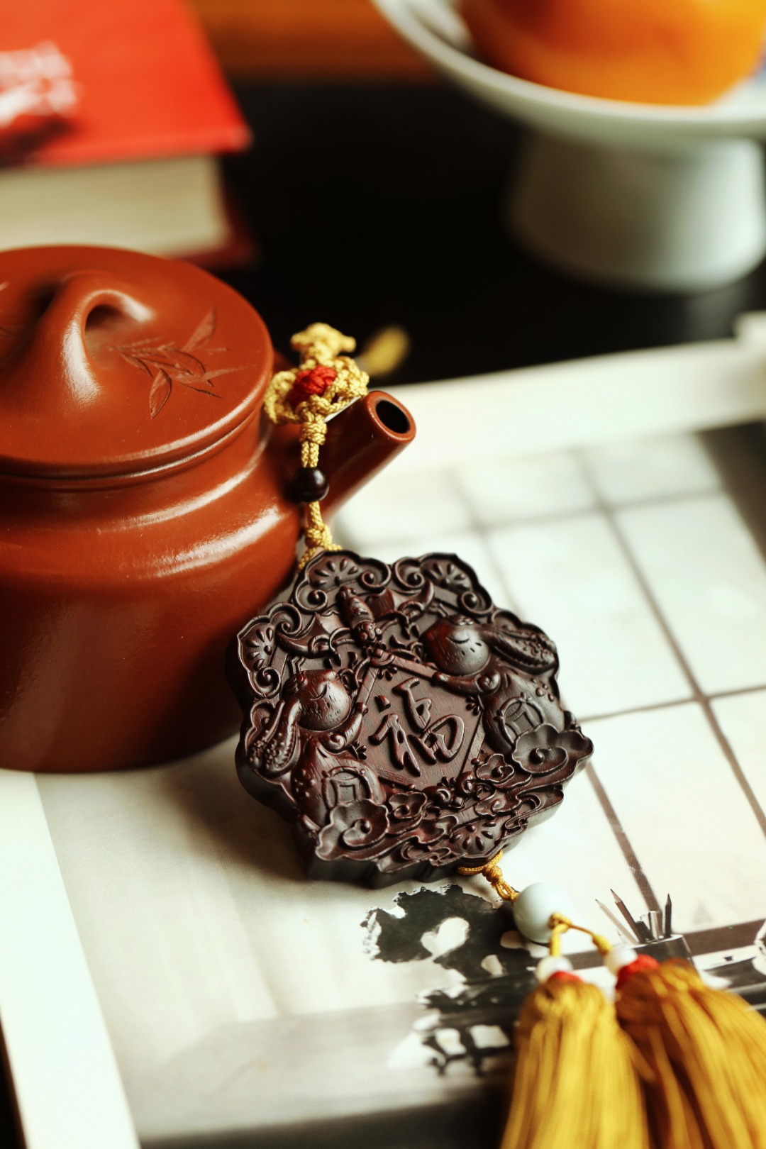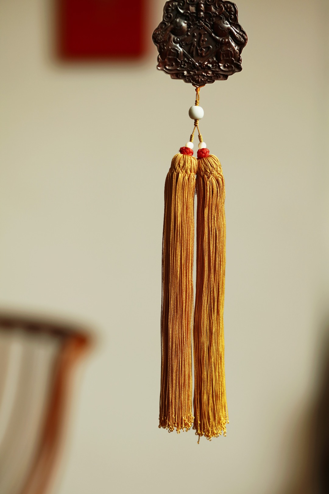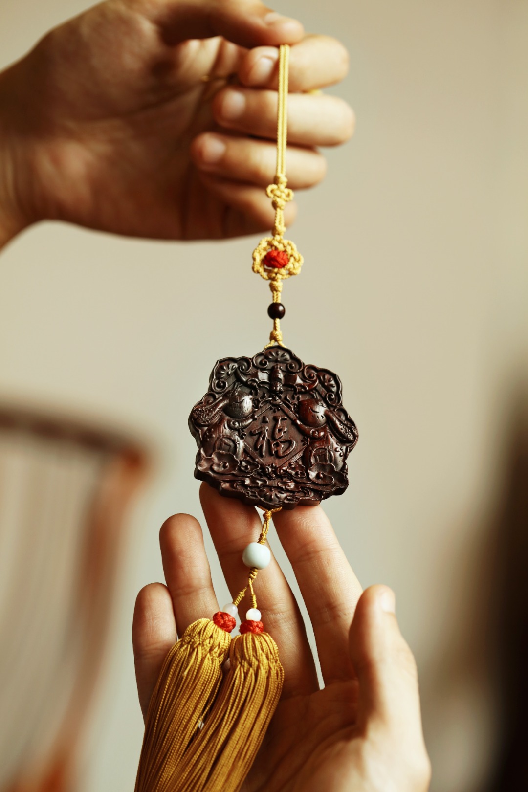 双面雕刻玉兔福字,搭配宫廷风流苏,