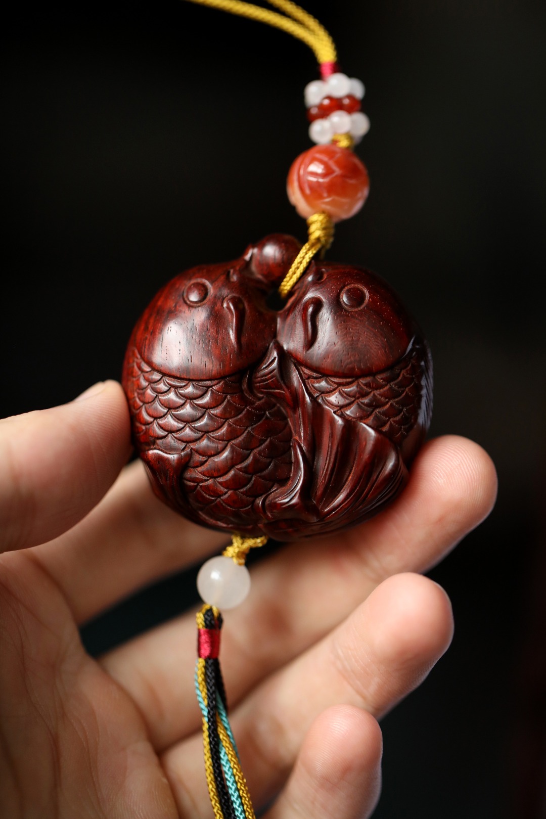 刻画细腻,木质温润,双鱼戏珠活灵活现,