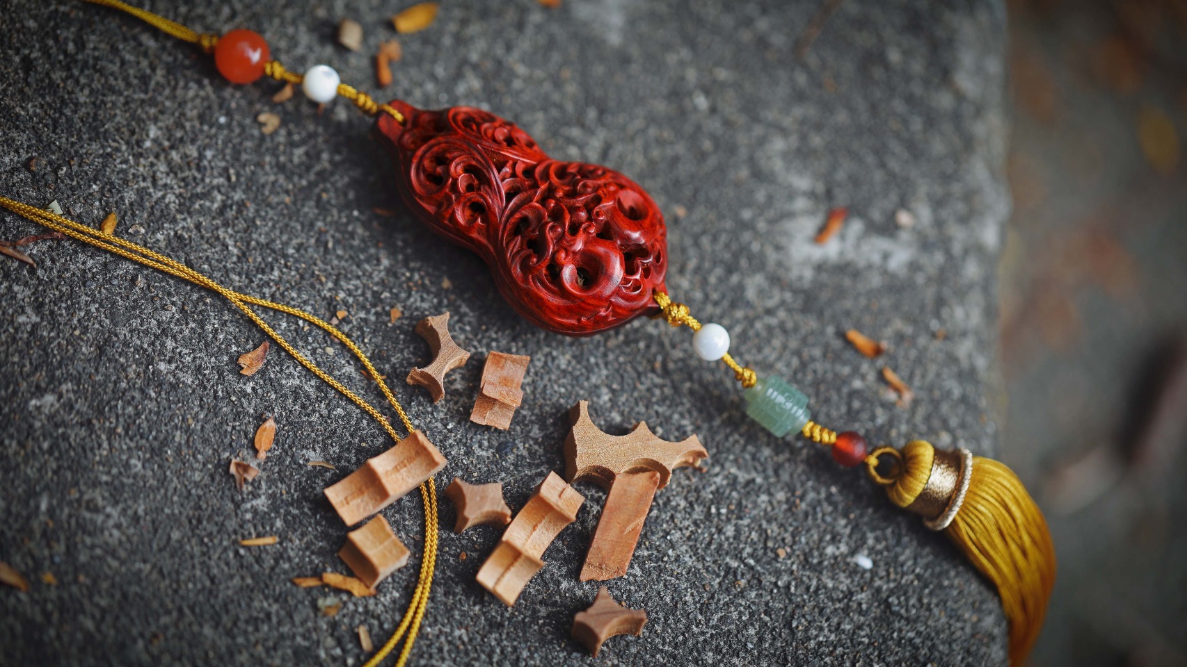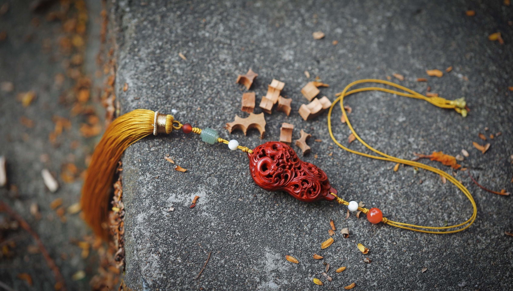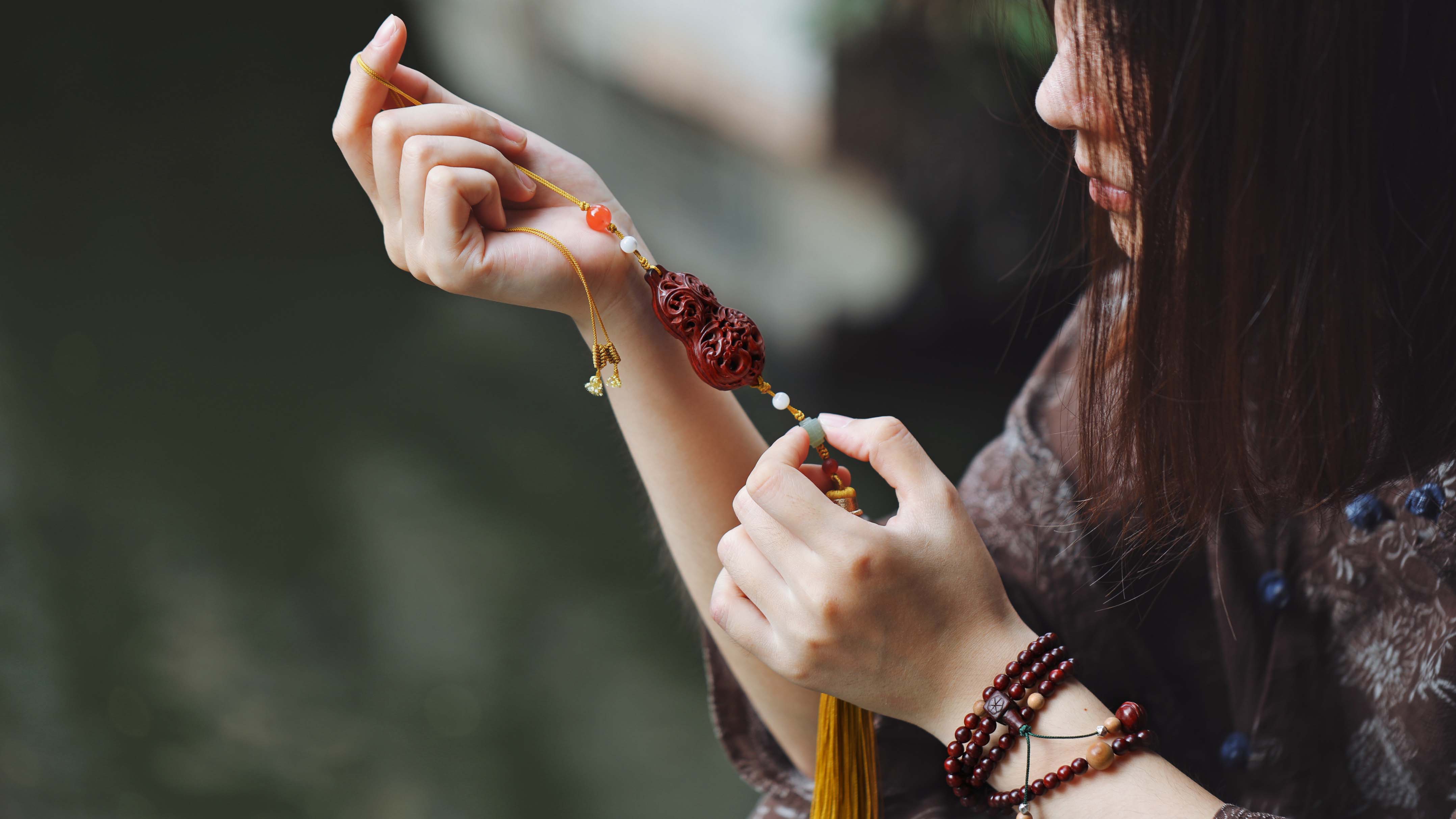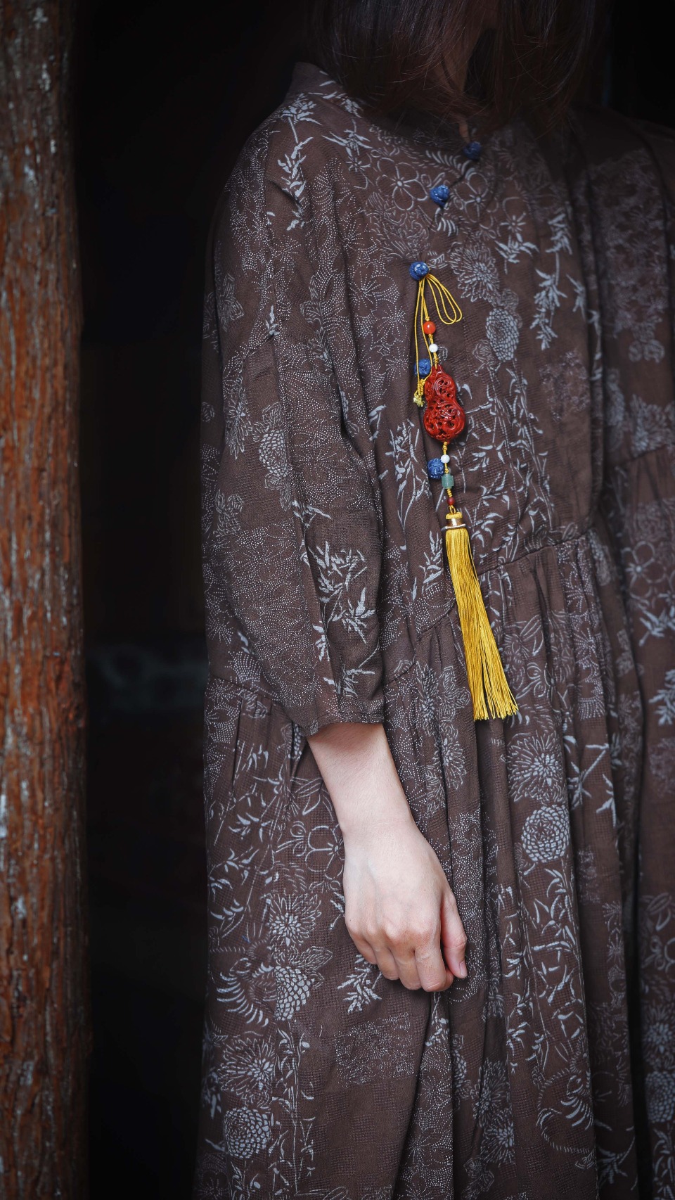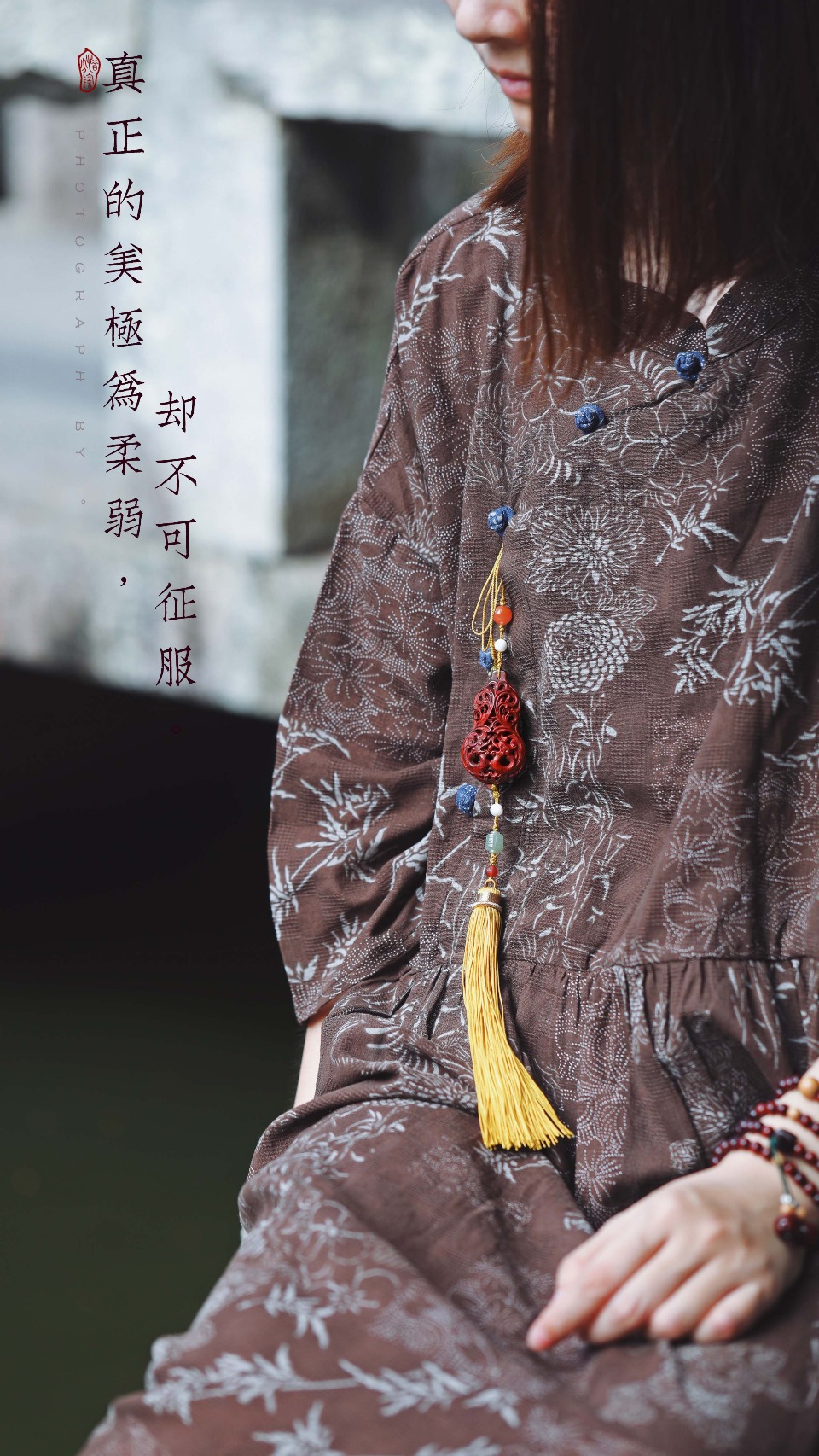 搭配晚清风格的流苏,天然的配饰点缀其间,