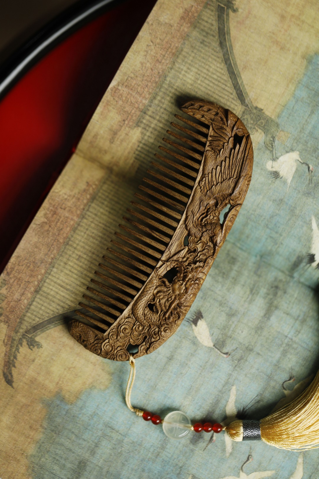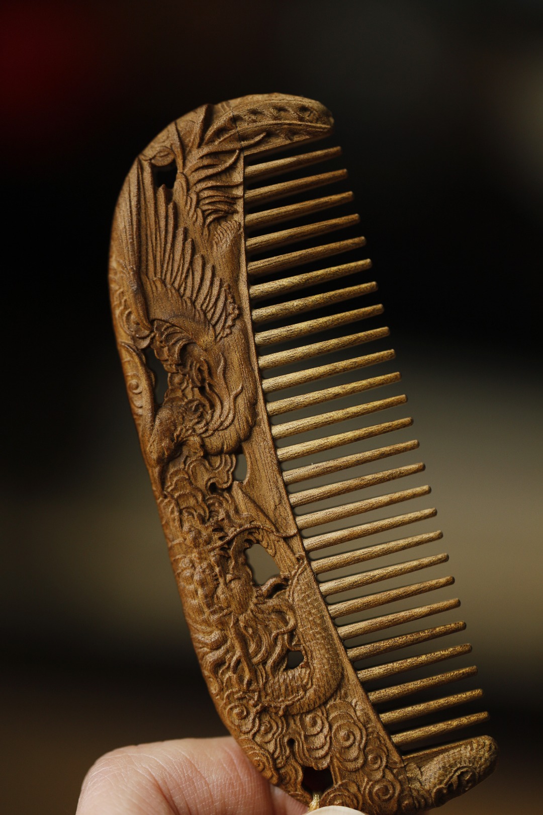 金丝楠木镂空雕刻龙凤纹,立体感强,