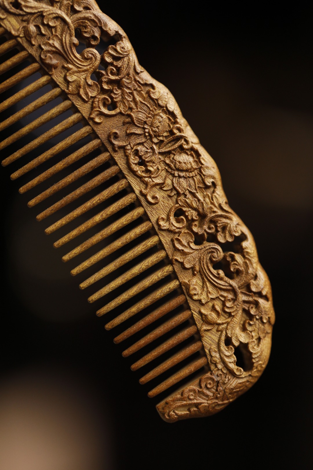 金丝楠为质,双面镂雕西番莲纹,