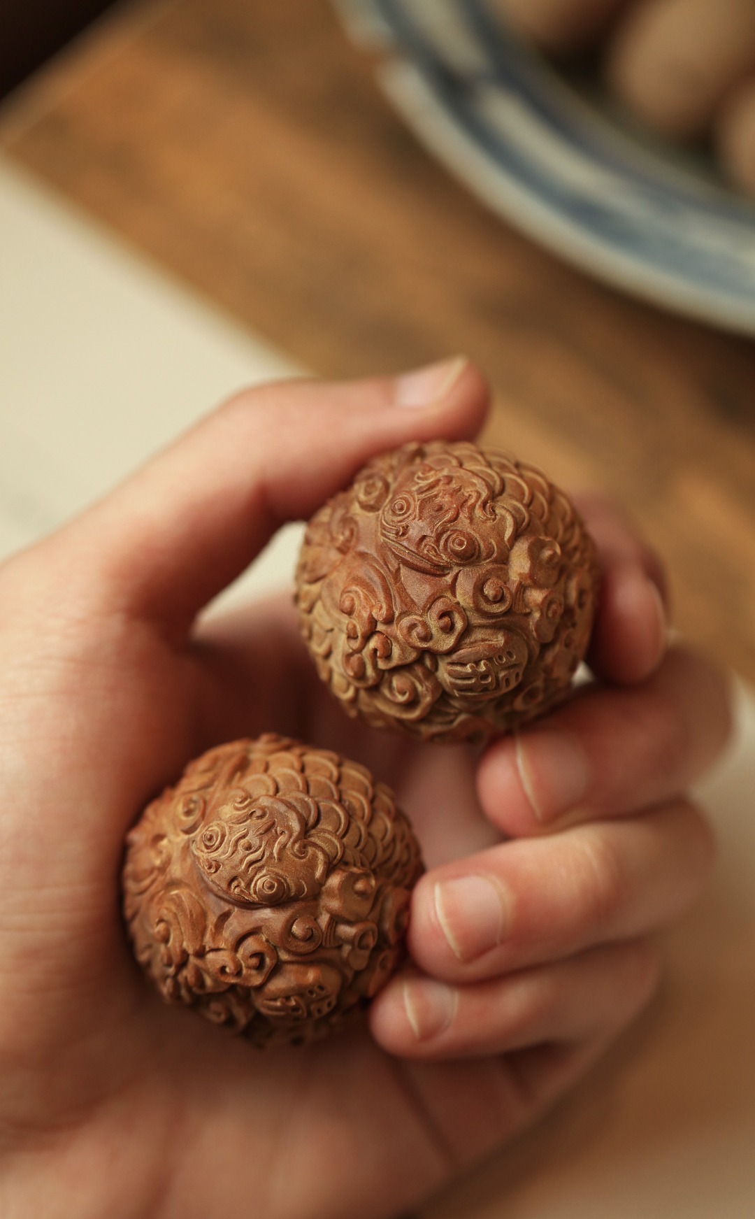 取材印度老山檀香老料,过手留香,触掌温润、掌中把玩,寓有年年有余,富裕祥瑞之意,奶香入鼻,舒缓身心。