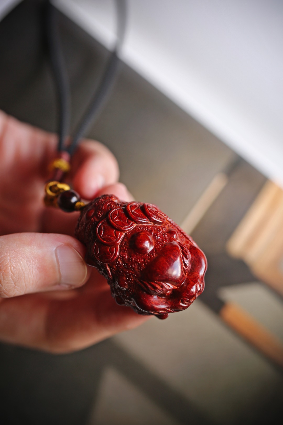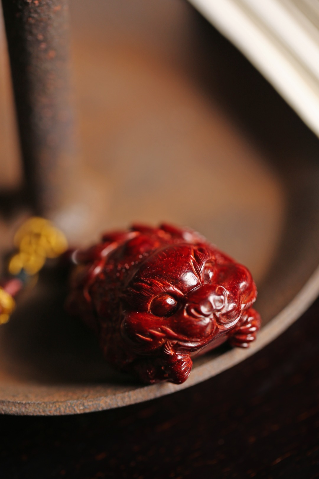 手工雕刻三足金蟾,身姿蜷缩,
