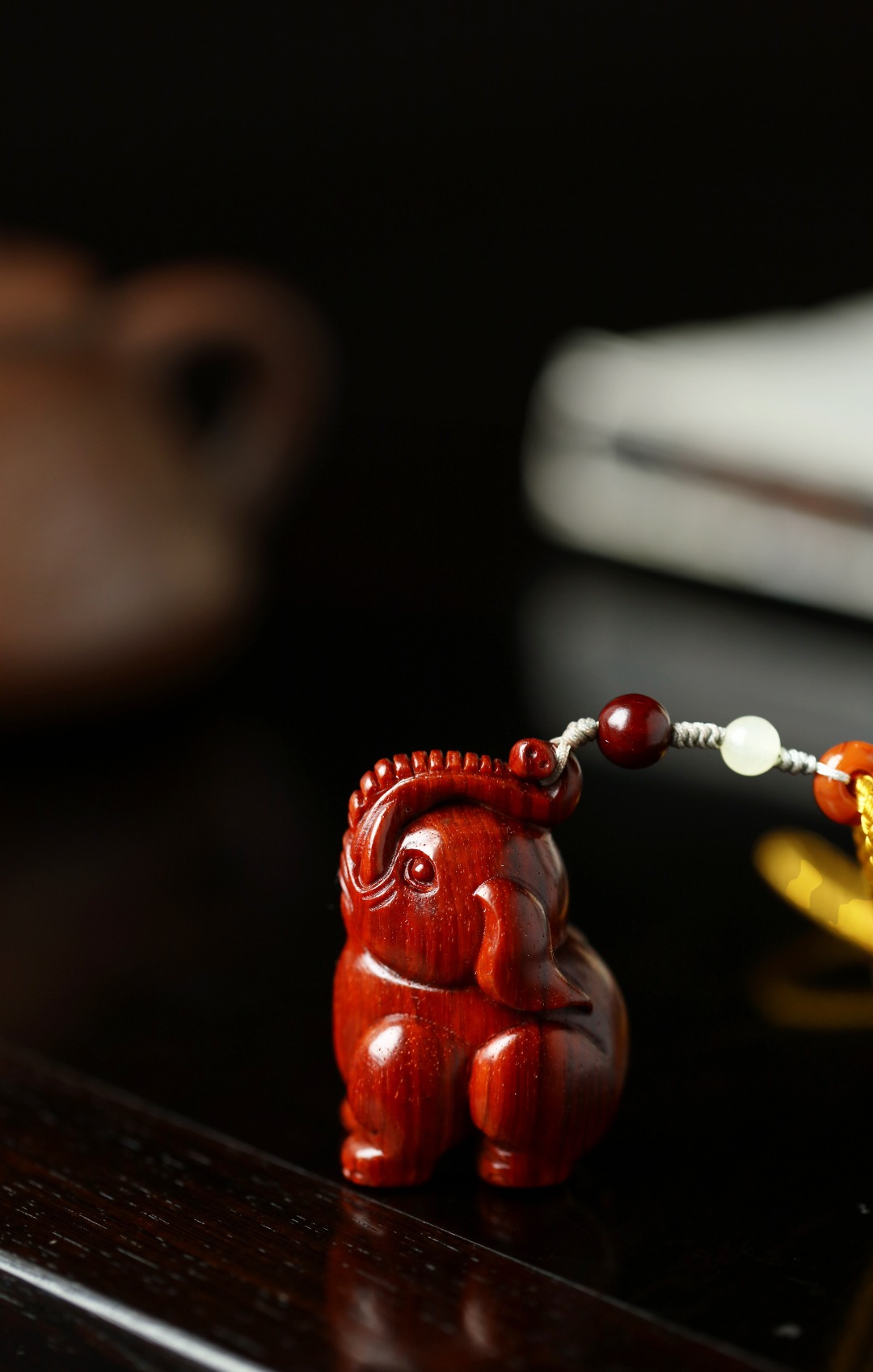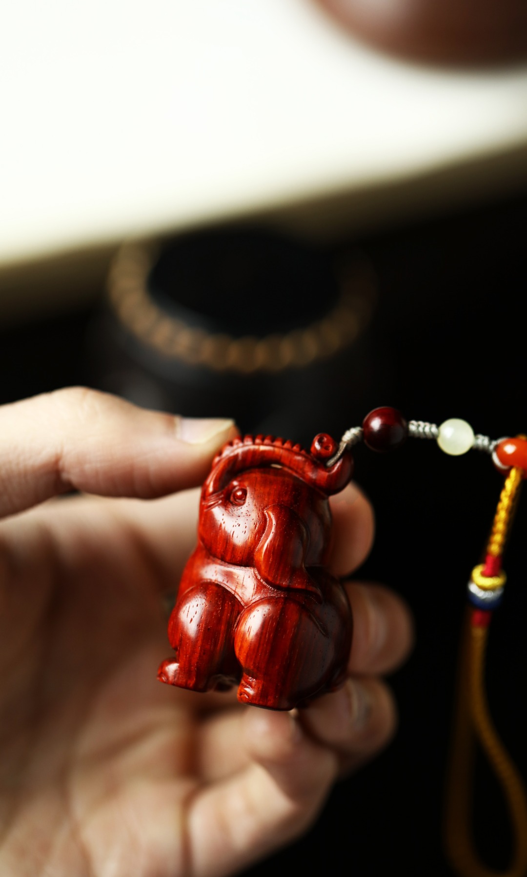 取材油润老料,手工雕刻,象谐音“祥”,手持把玩,清雅 有趣、更韵含吉祥如意之意。