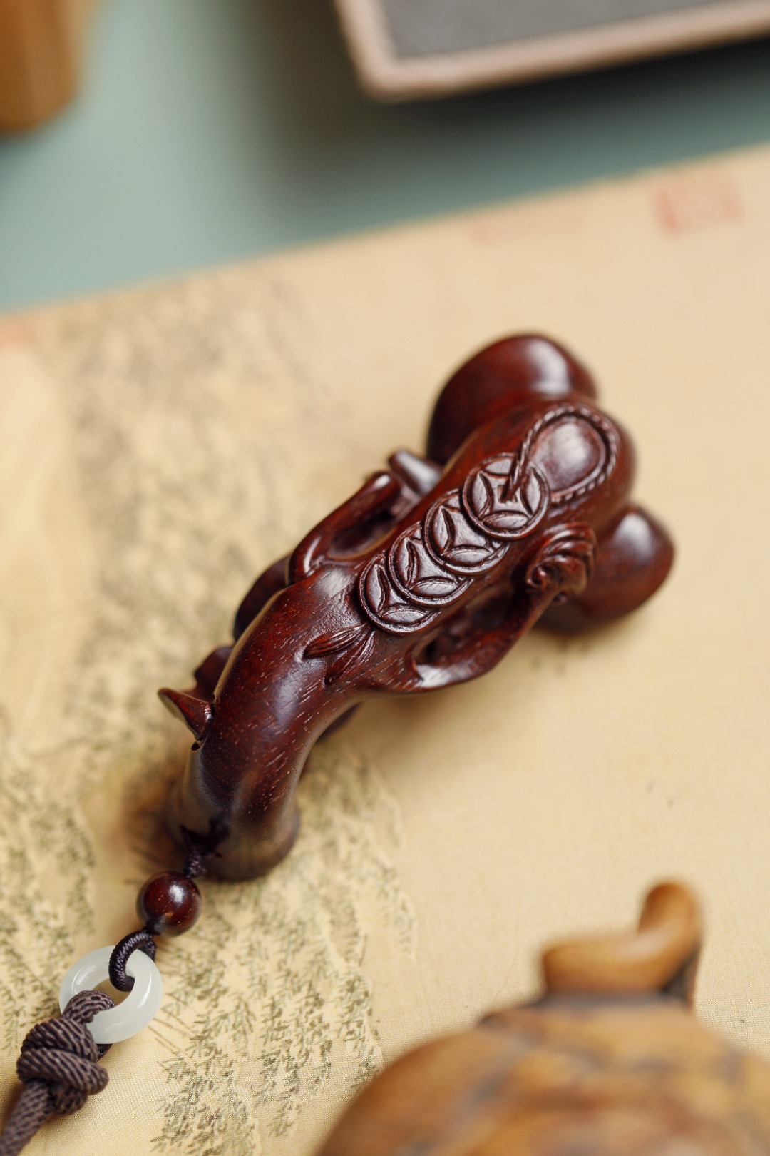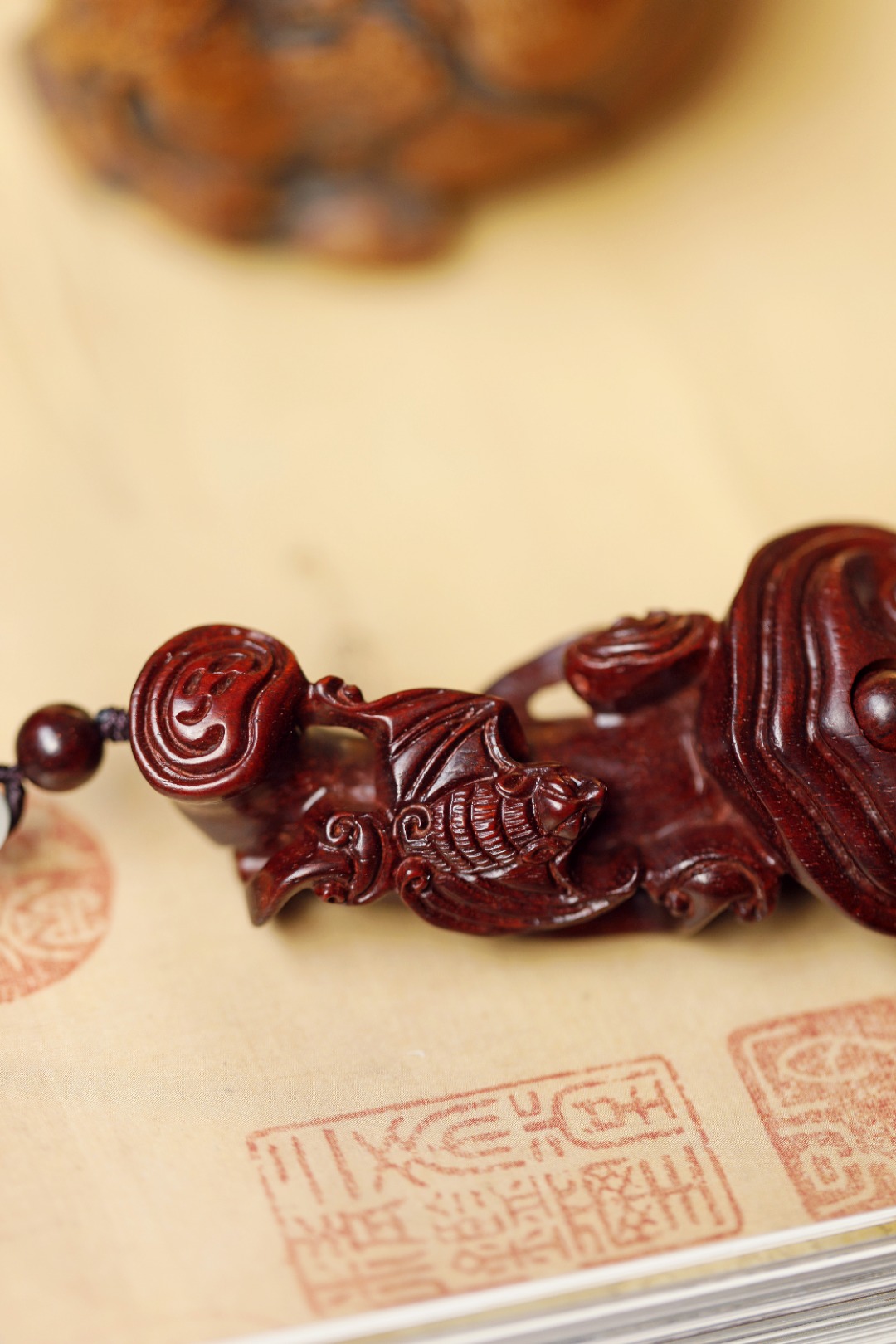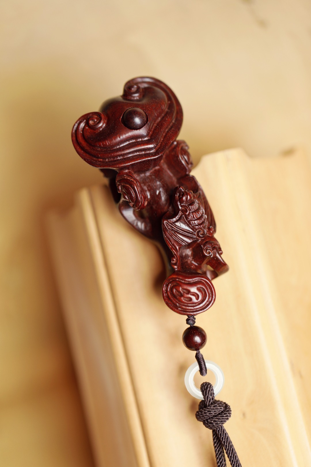 紫檀质质,上饰蝙蝠金钱吊,