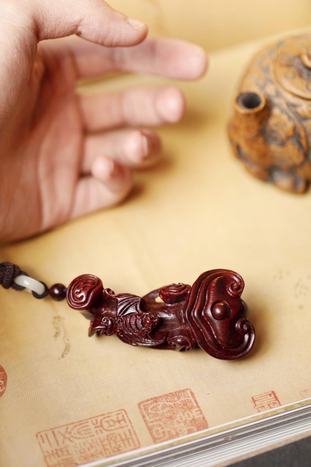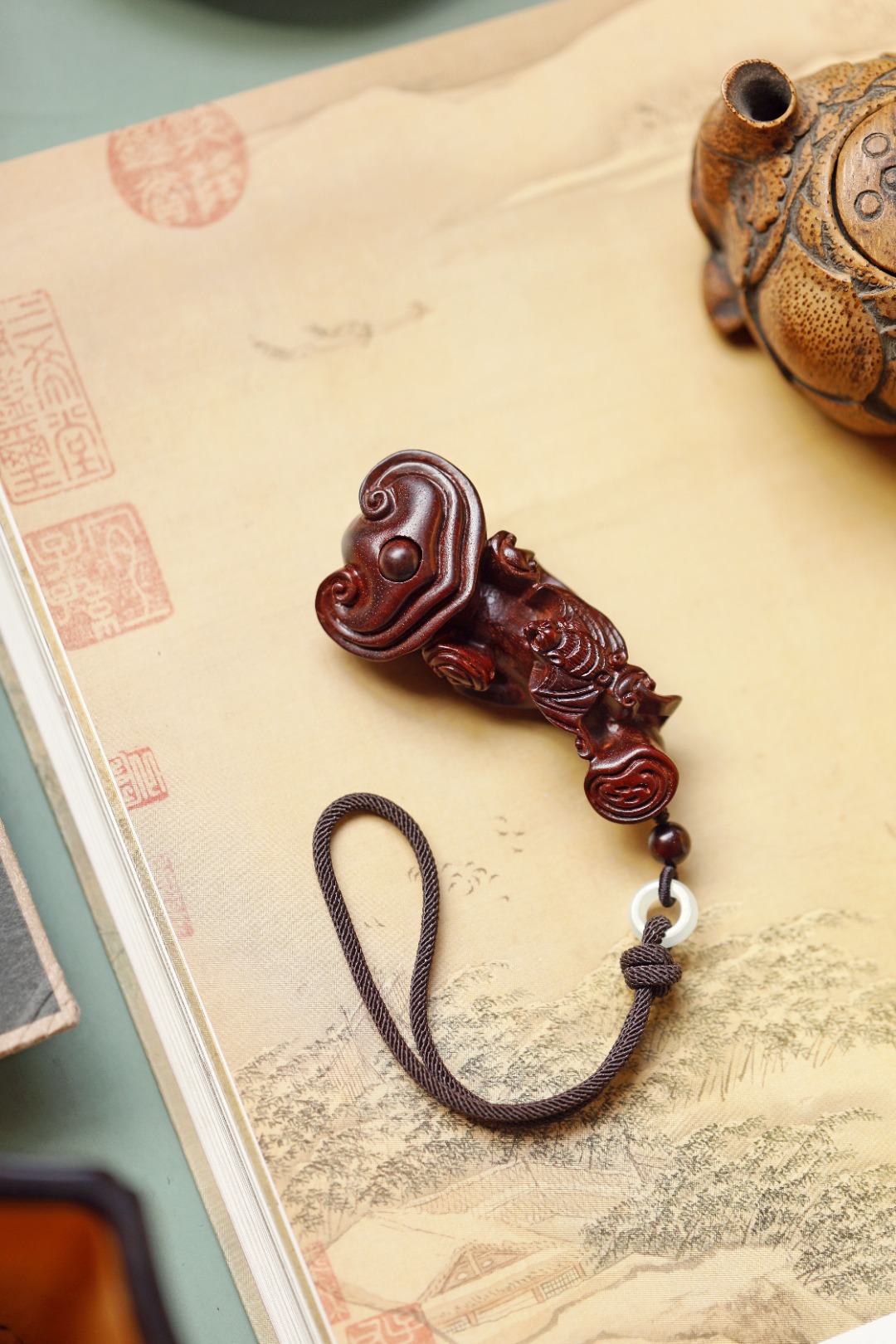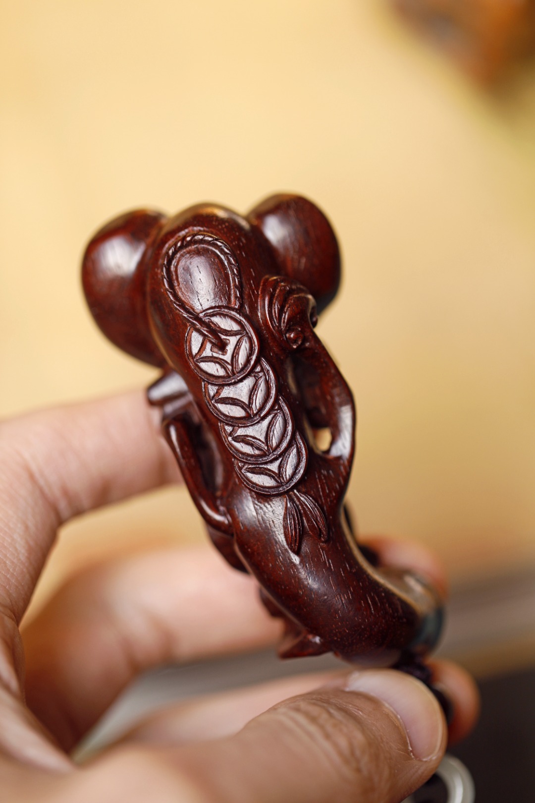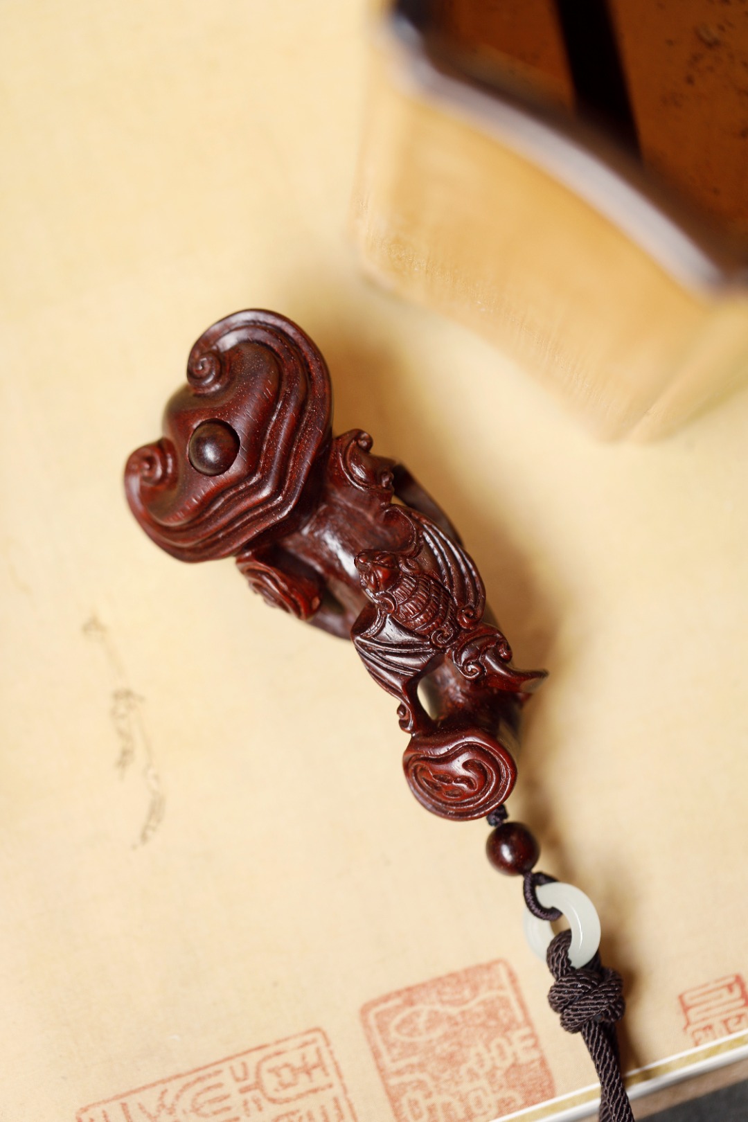 紫檀质质,上饰蝙蝠金钱吊,