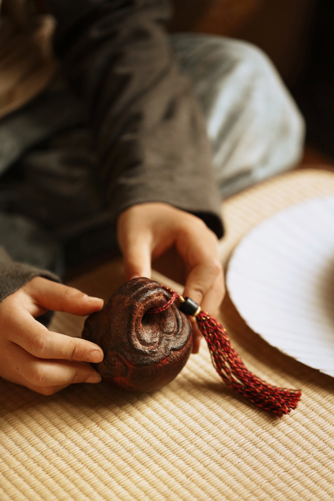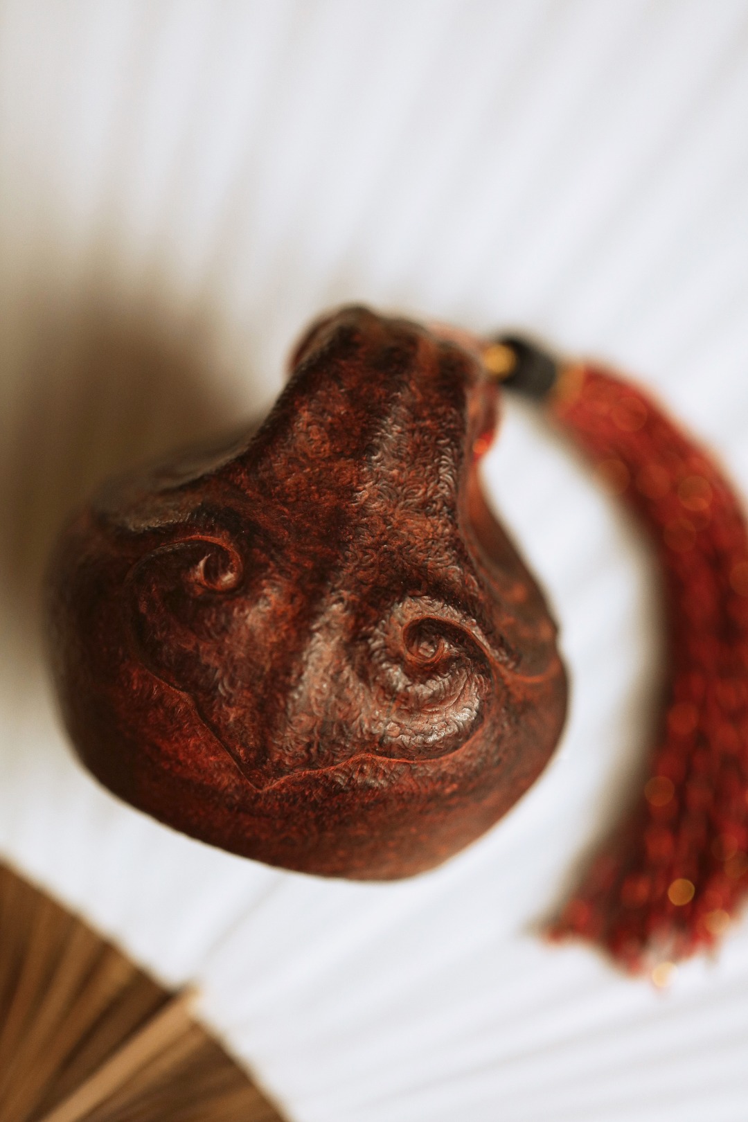 雕刻饱满清新,灵动若天成,如意手把件,茶席把玩陈置,似蕴涵着满满的吉祥如意。