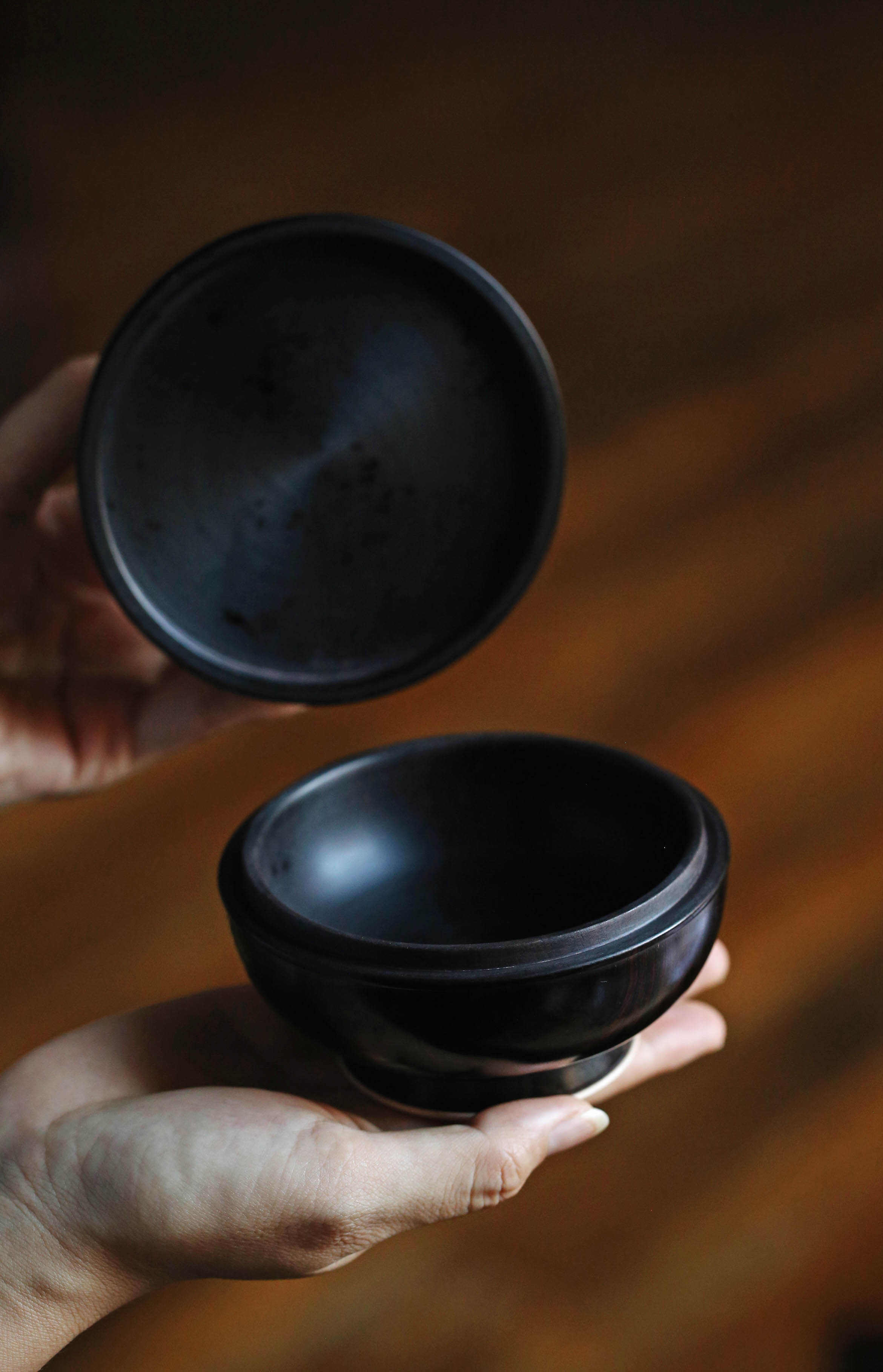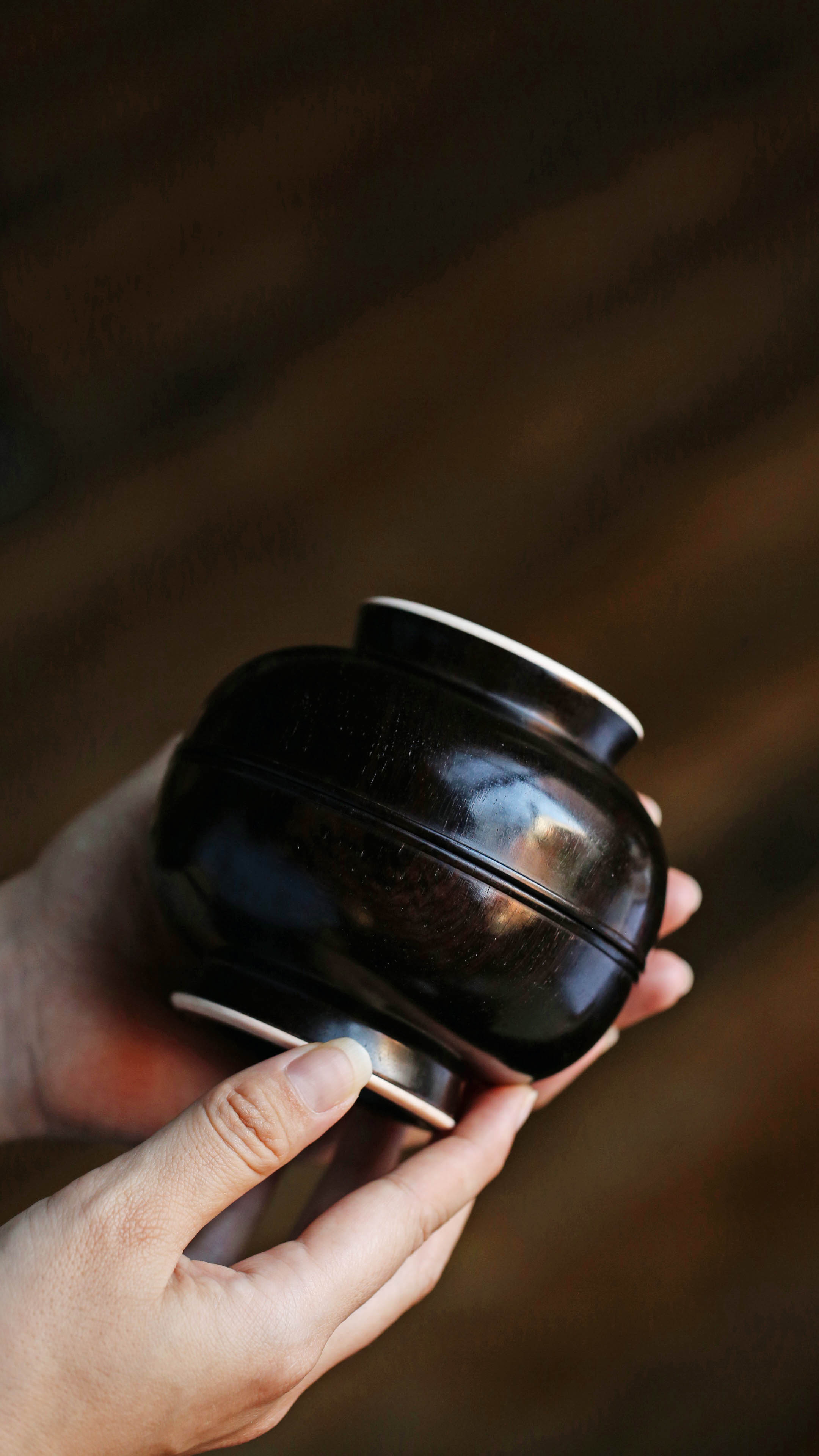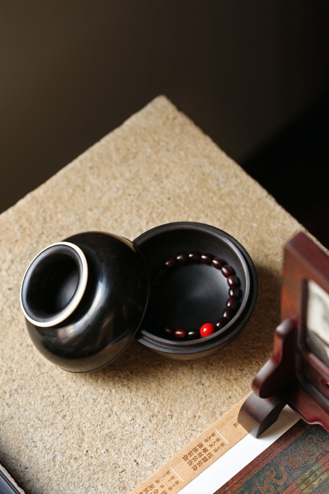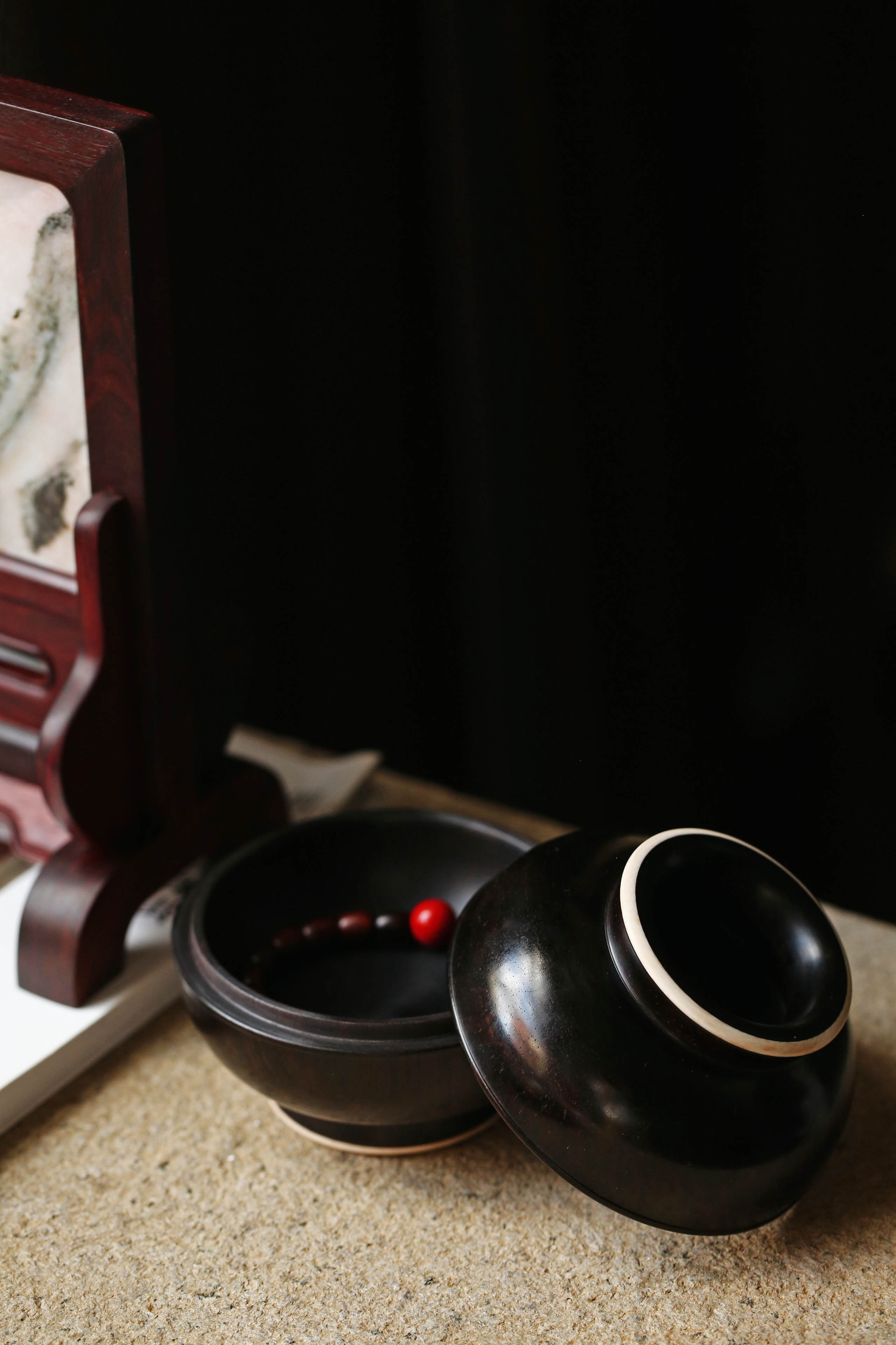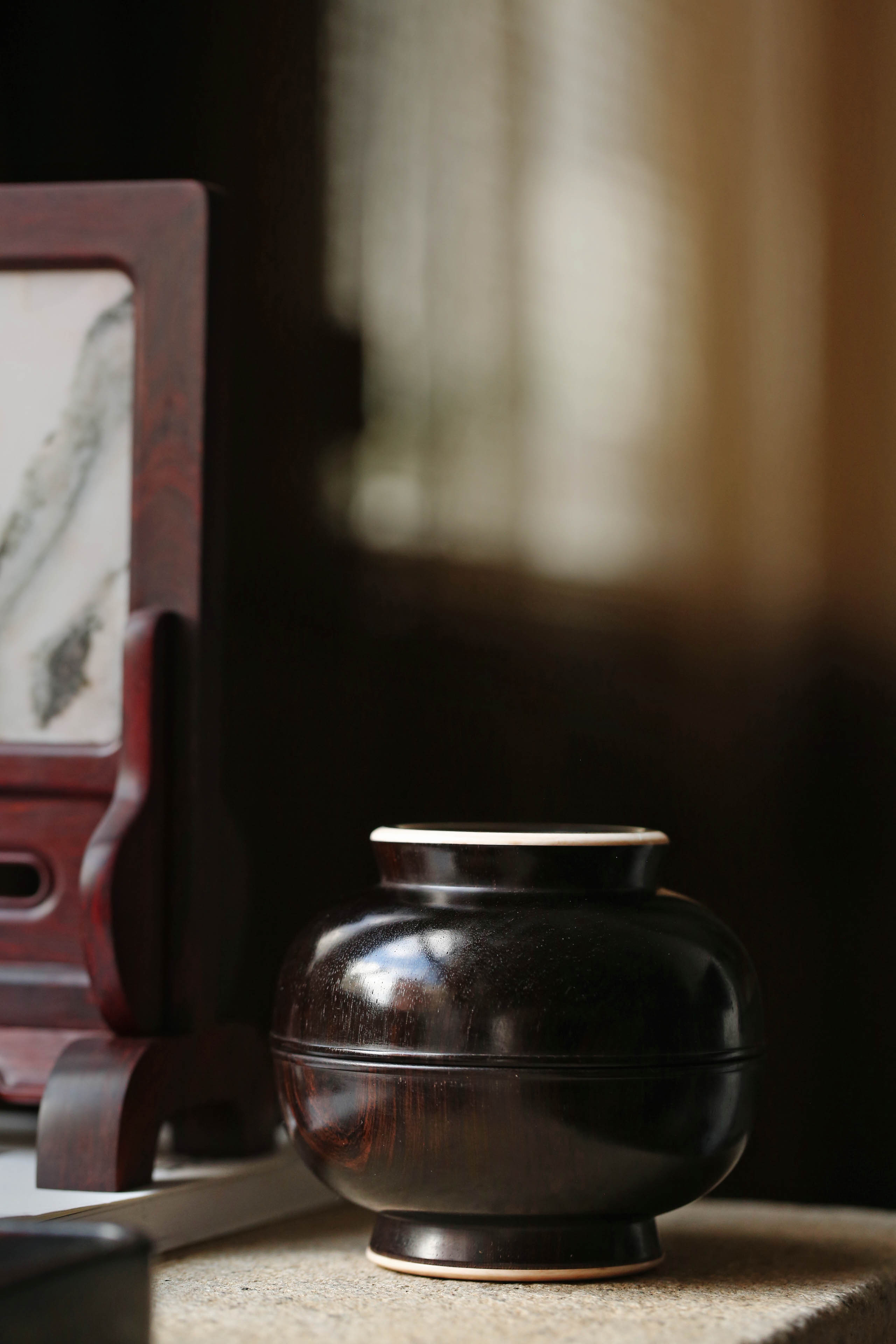 鼓腹,上下圈足,并镶嵌猛犸牙。