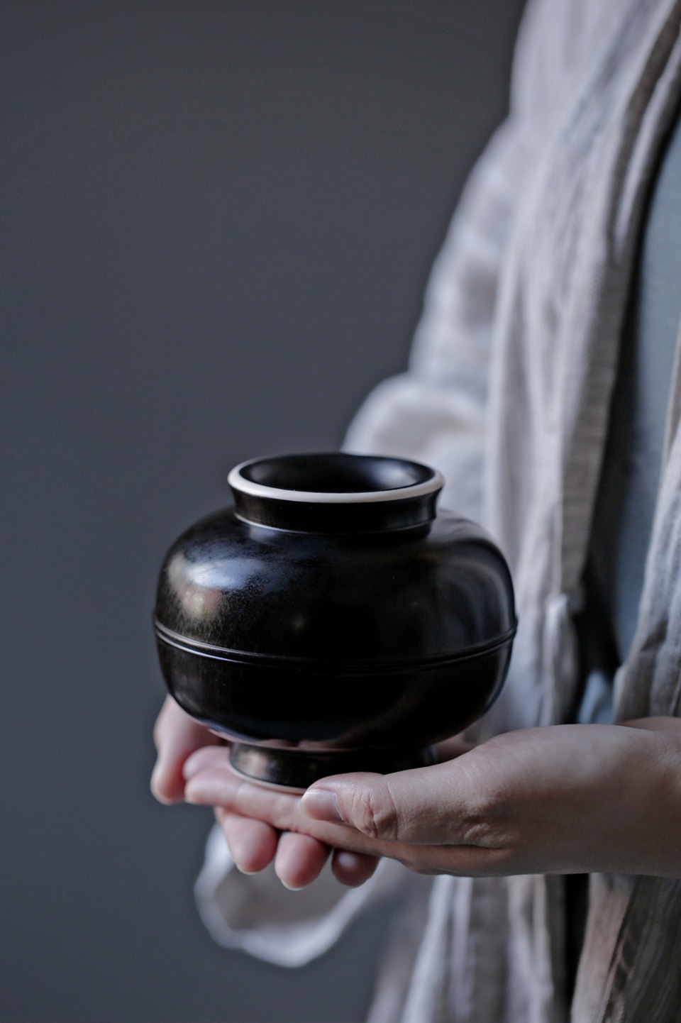 此罐造型别致,子母口,
