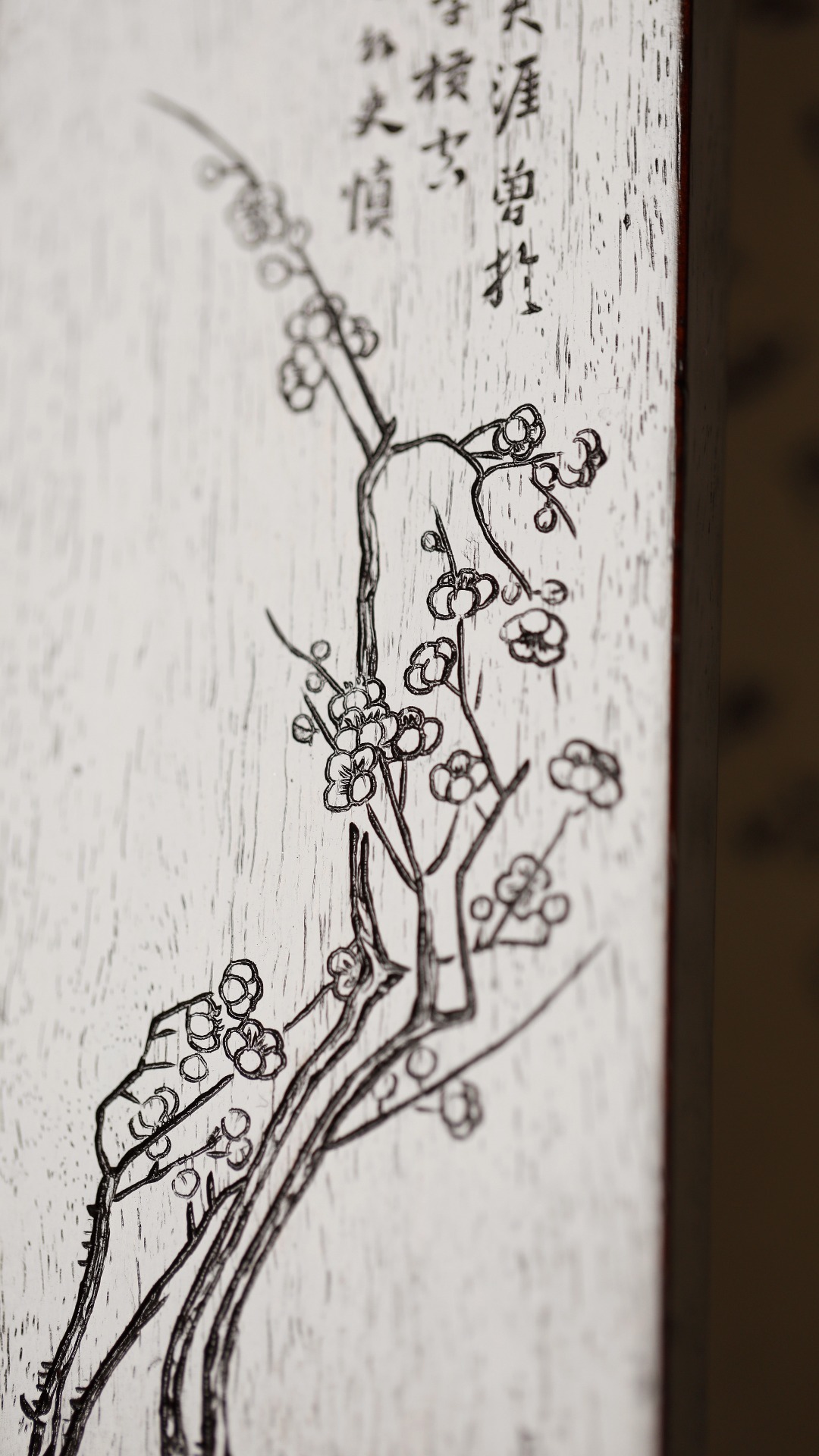 手工阴刻腊梅图,刀法细腻,线条柔婉逸丽;