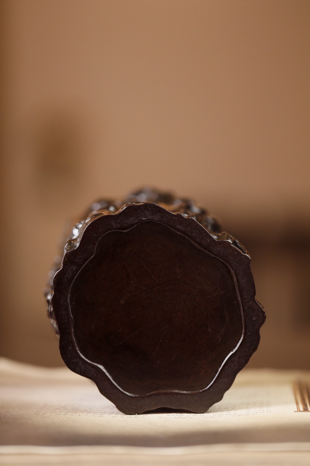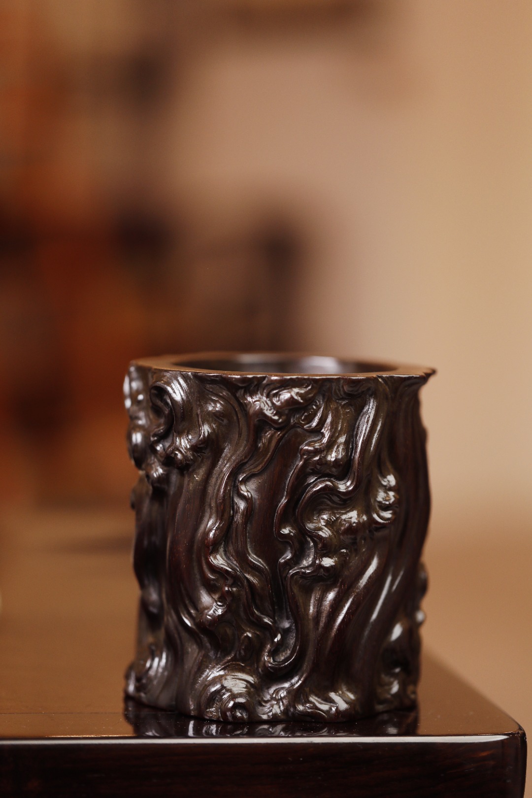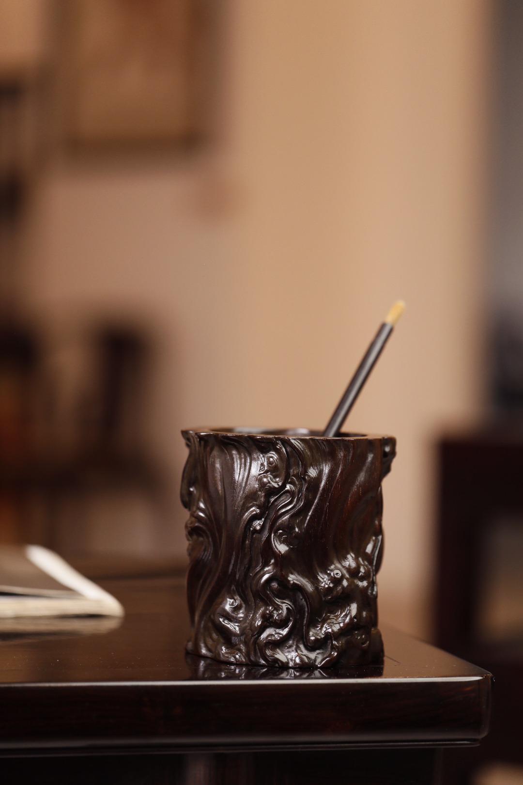 经过岁月的洗礼,笔筒的木质依然稳定,