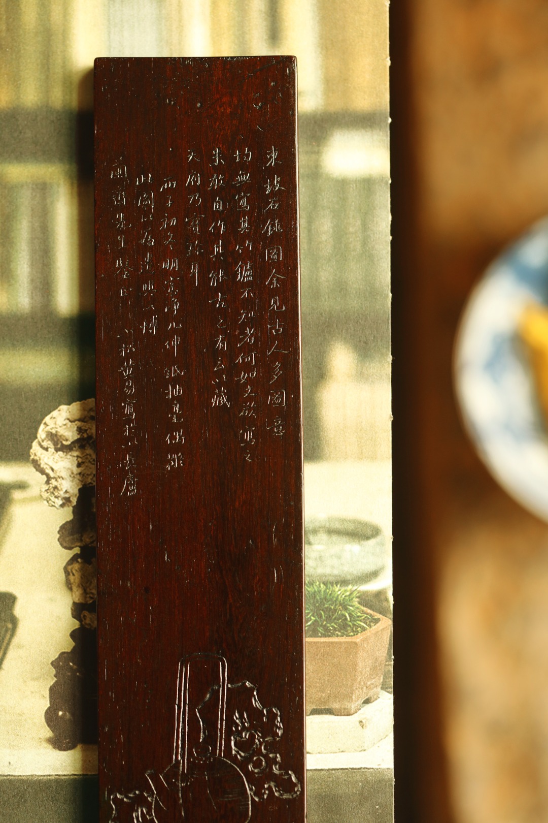 手工阴刻清供图,刀法细腻,线条柔婉逸丽;