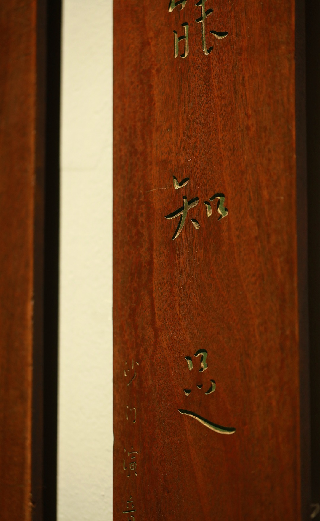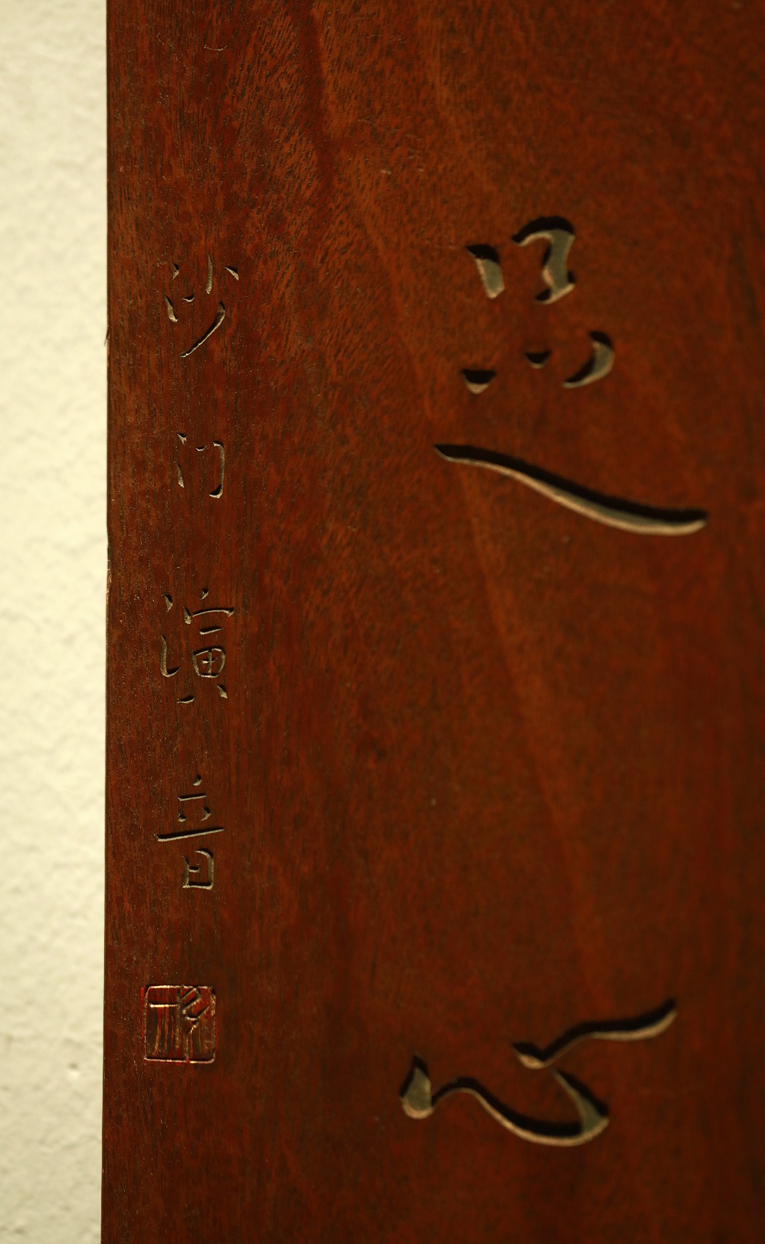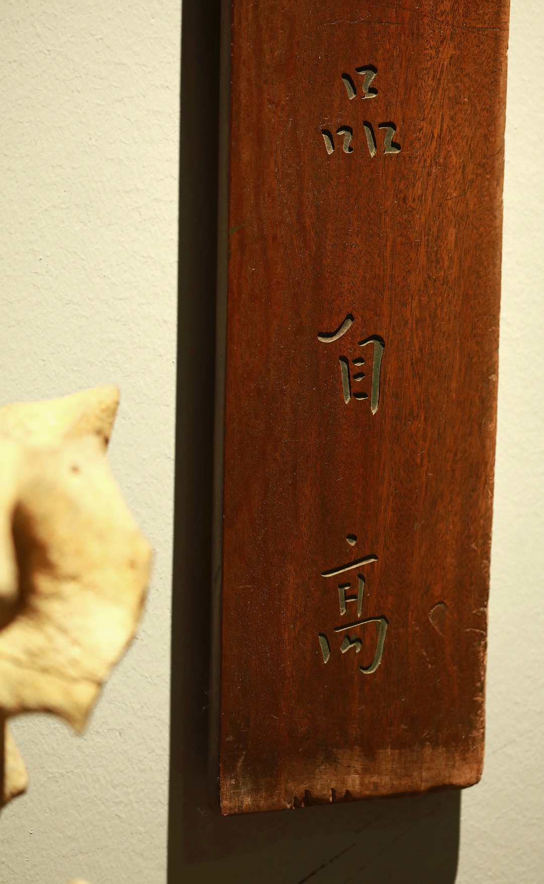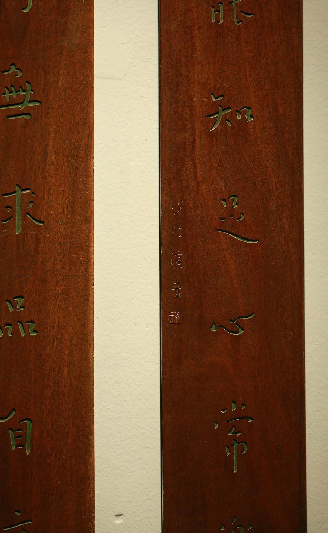 取旧时老板料,手刻对联,矿彩漆绘,原皮壳沉着古朴,悬于茶室、空间,深得意象真趣,人生理趣,为文房雅室佳选。