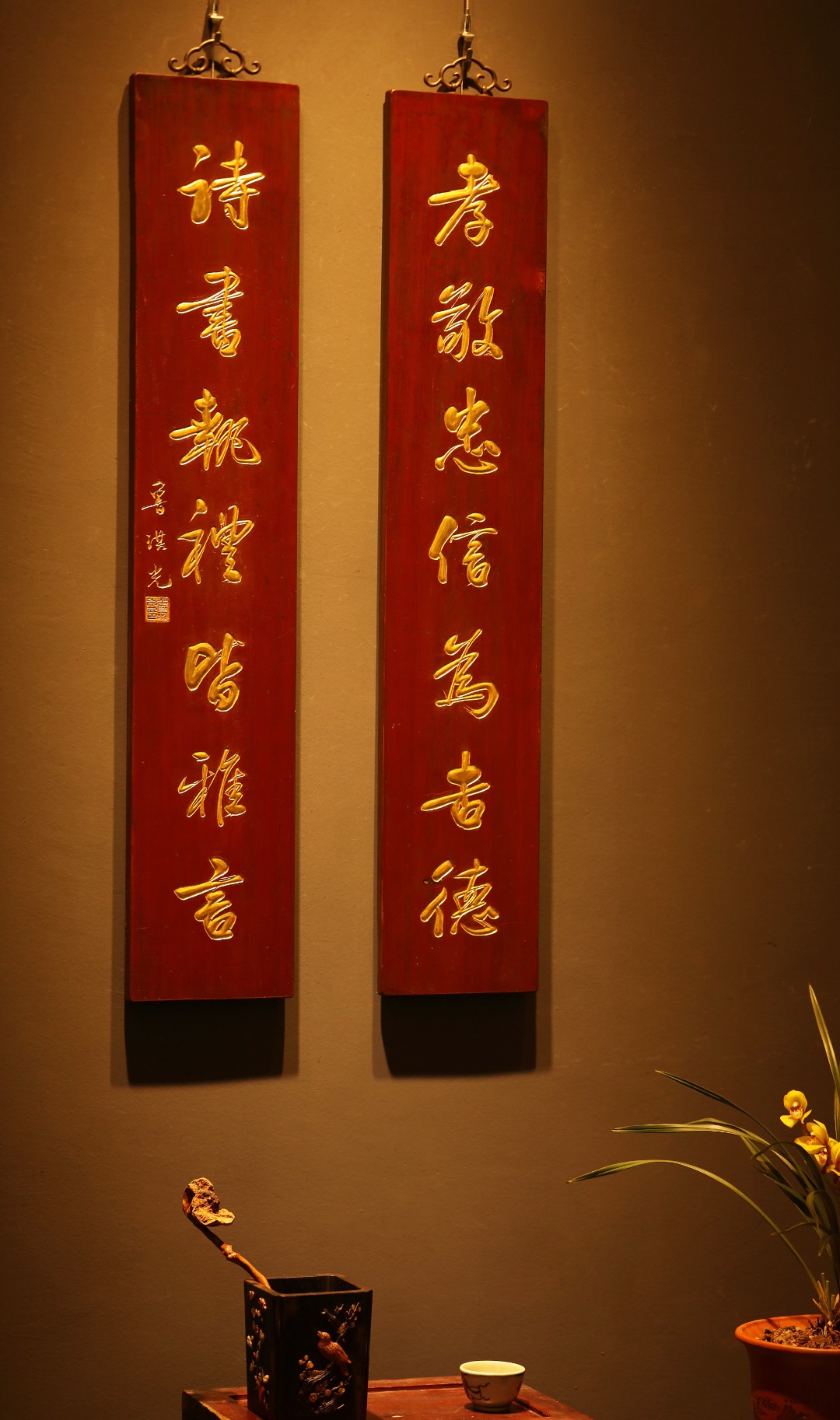 题识:“孝敬忠信为吉德,诗书执礼皆雅言。”