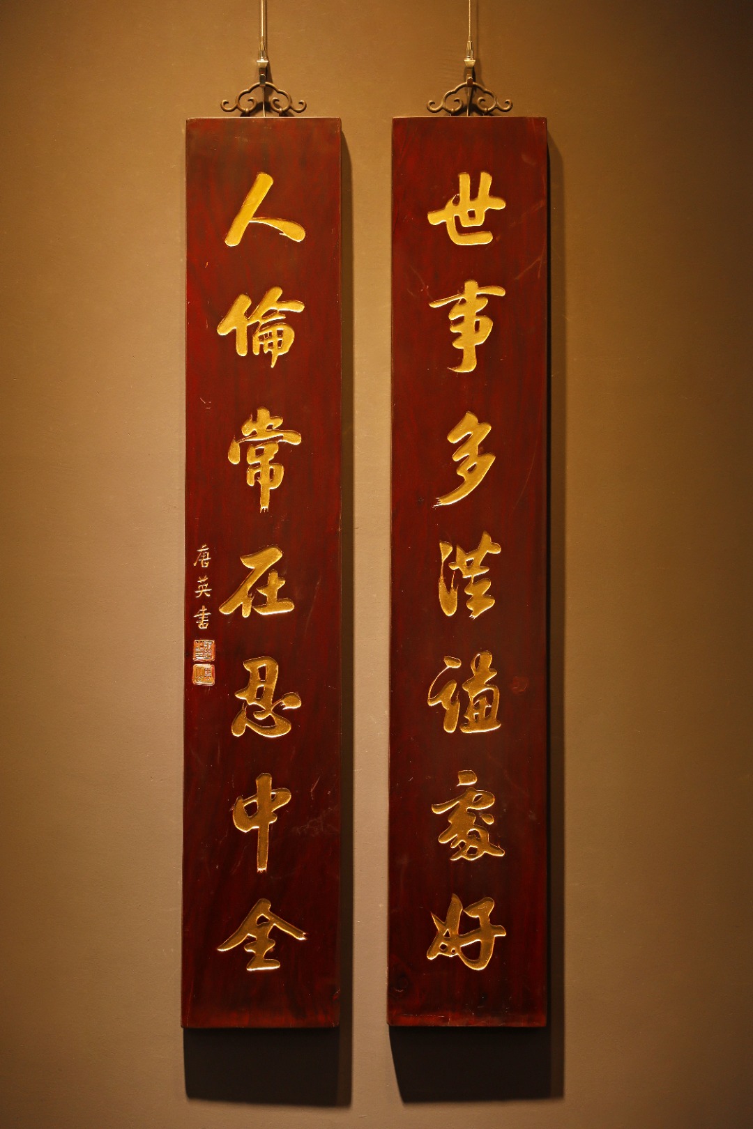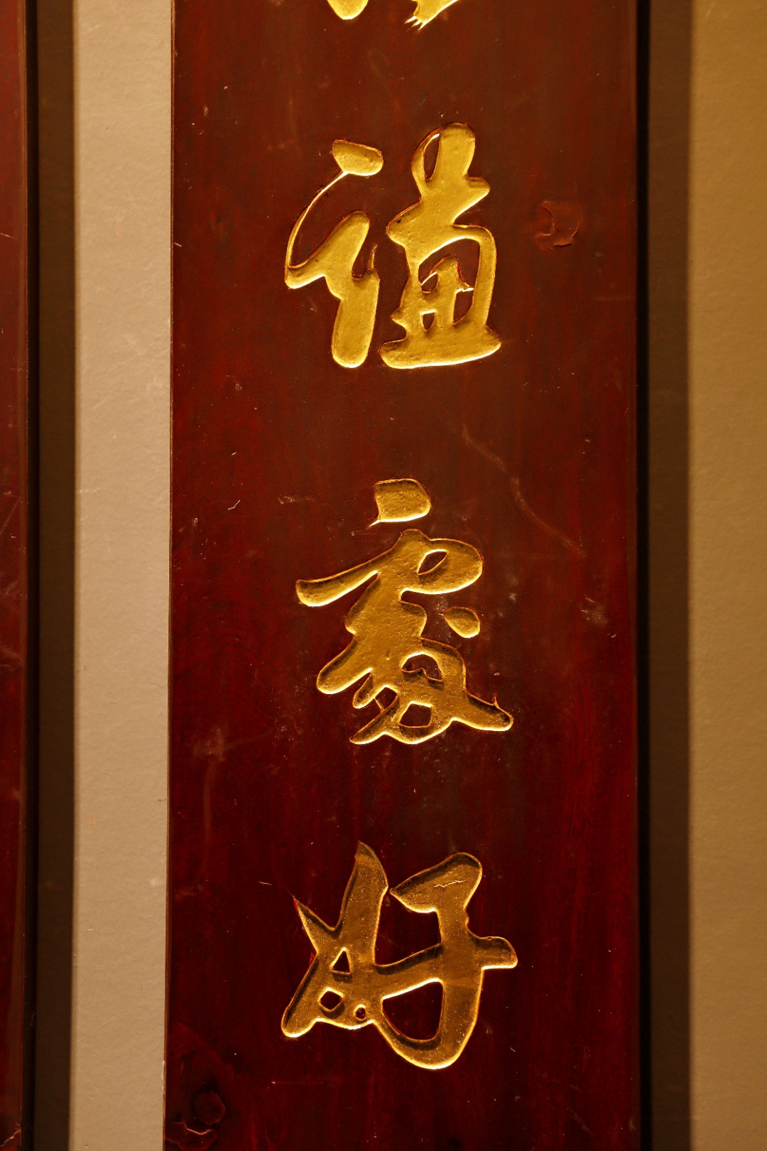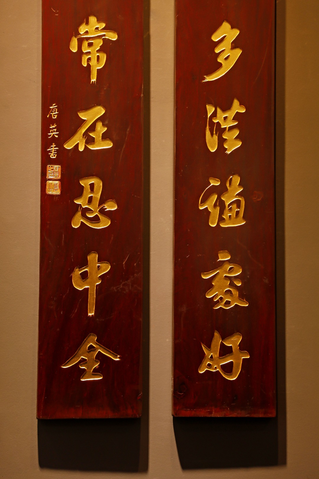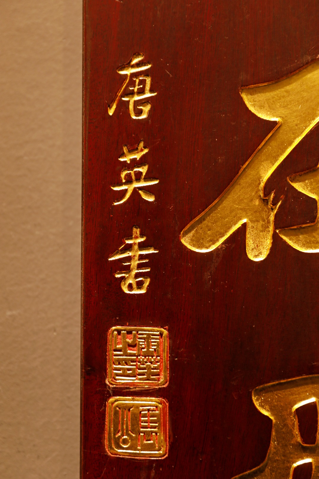 老楠木手工刻,真金箔贴就。