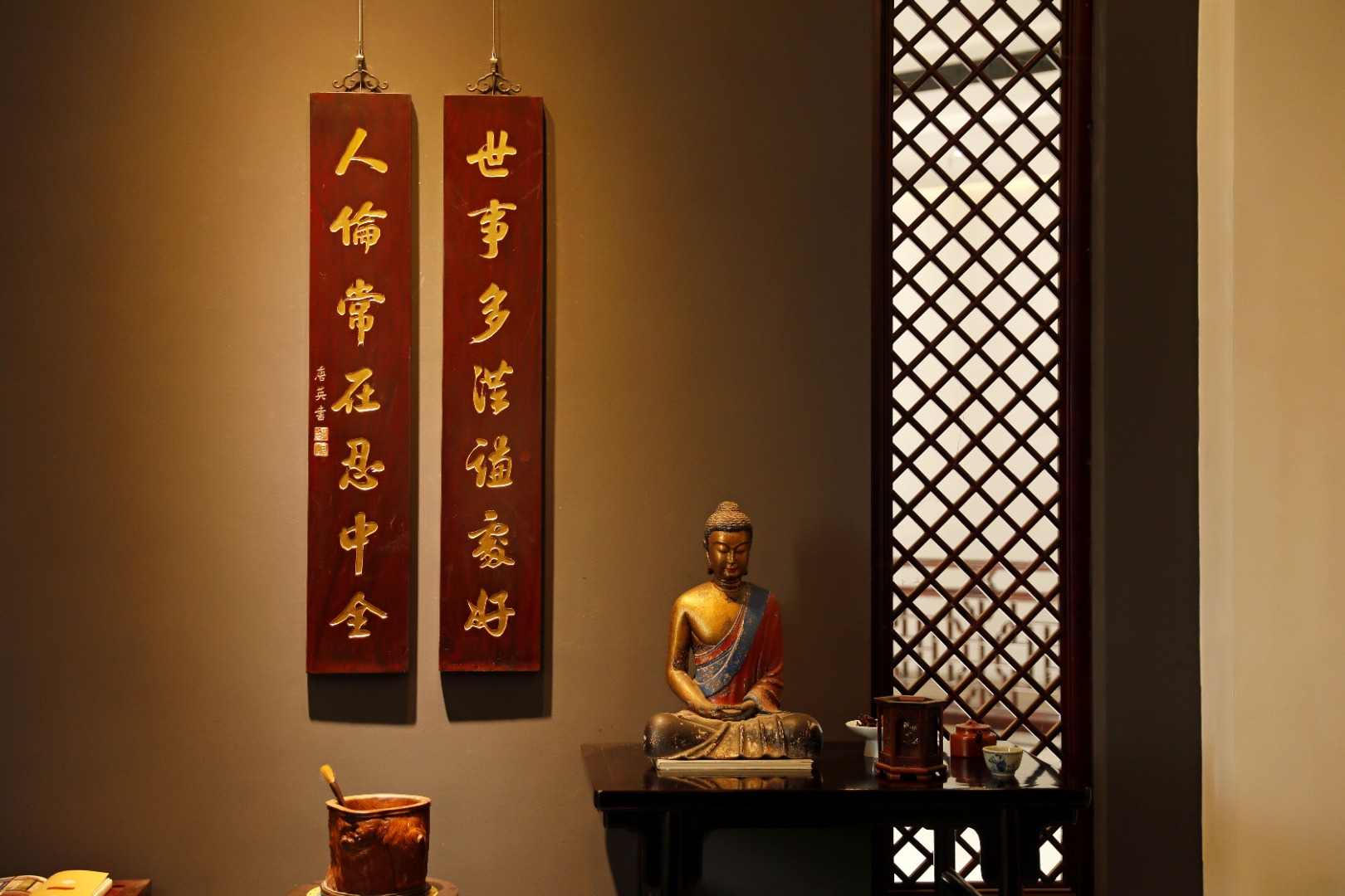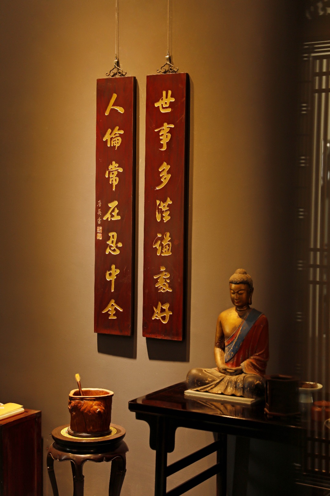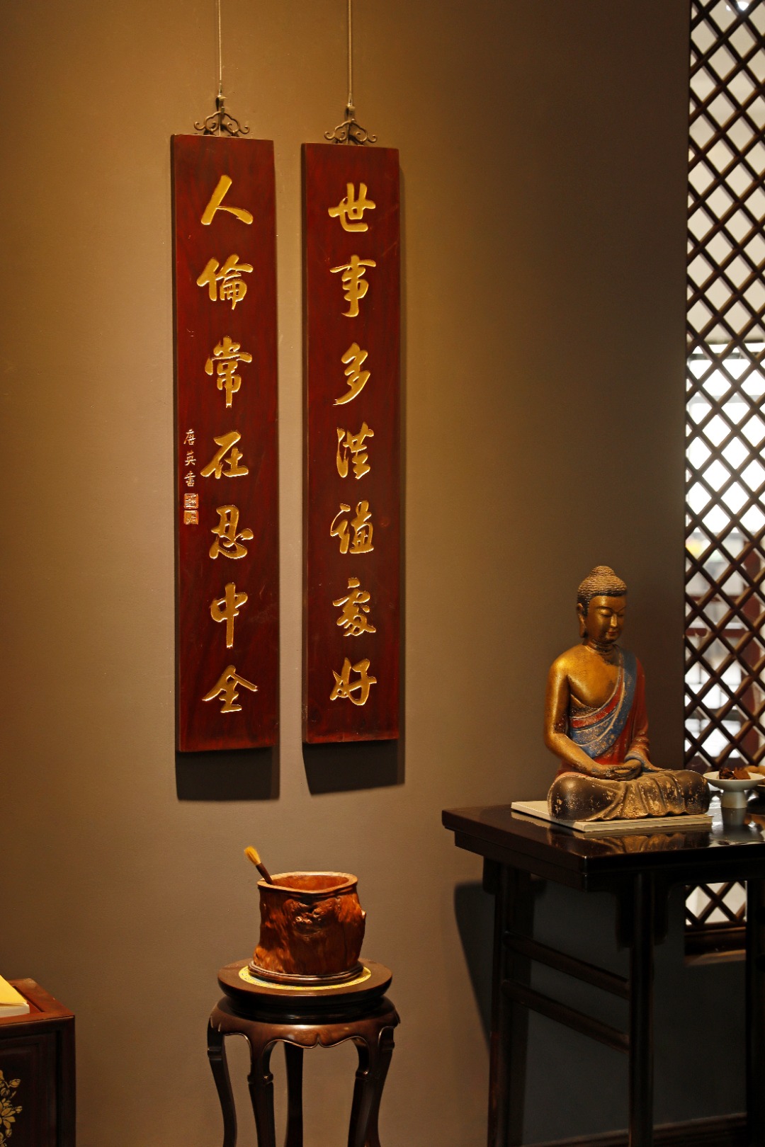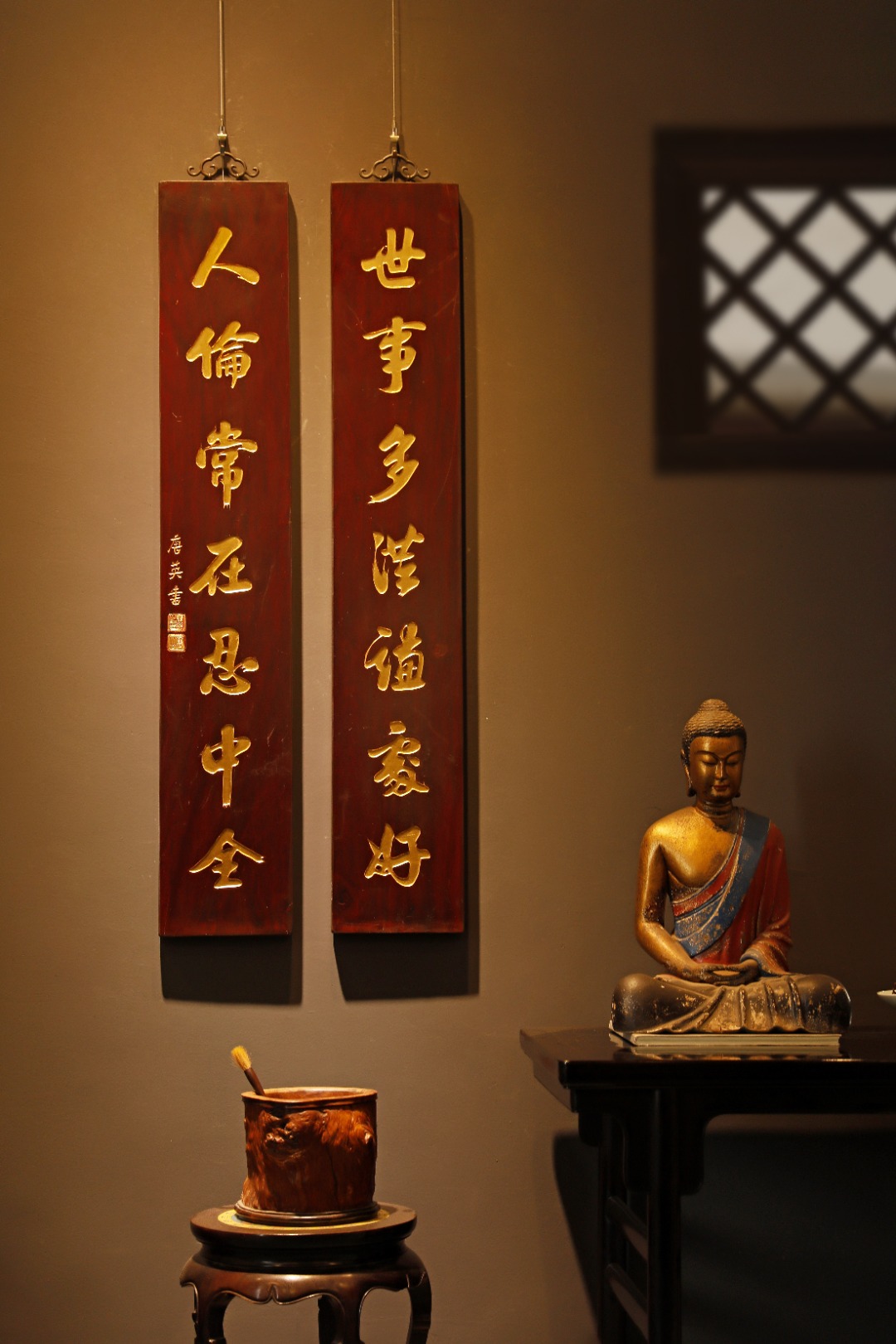 老楠木手工刻,真金箔贴就。