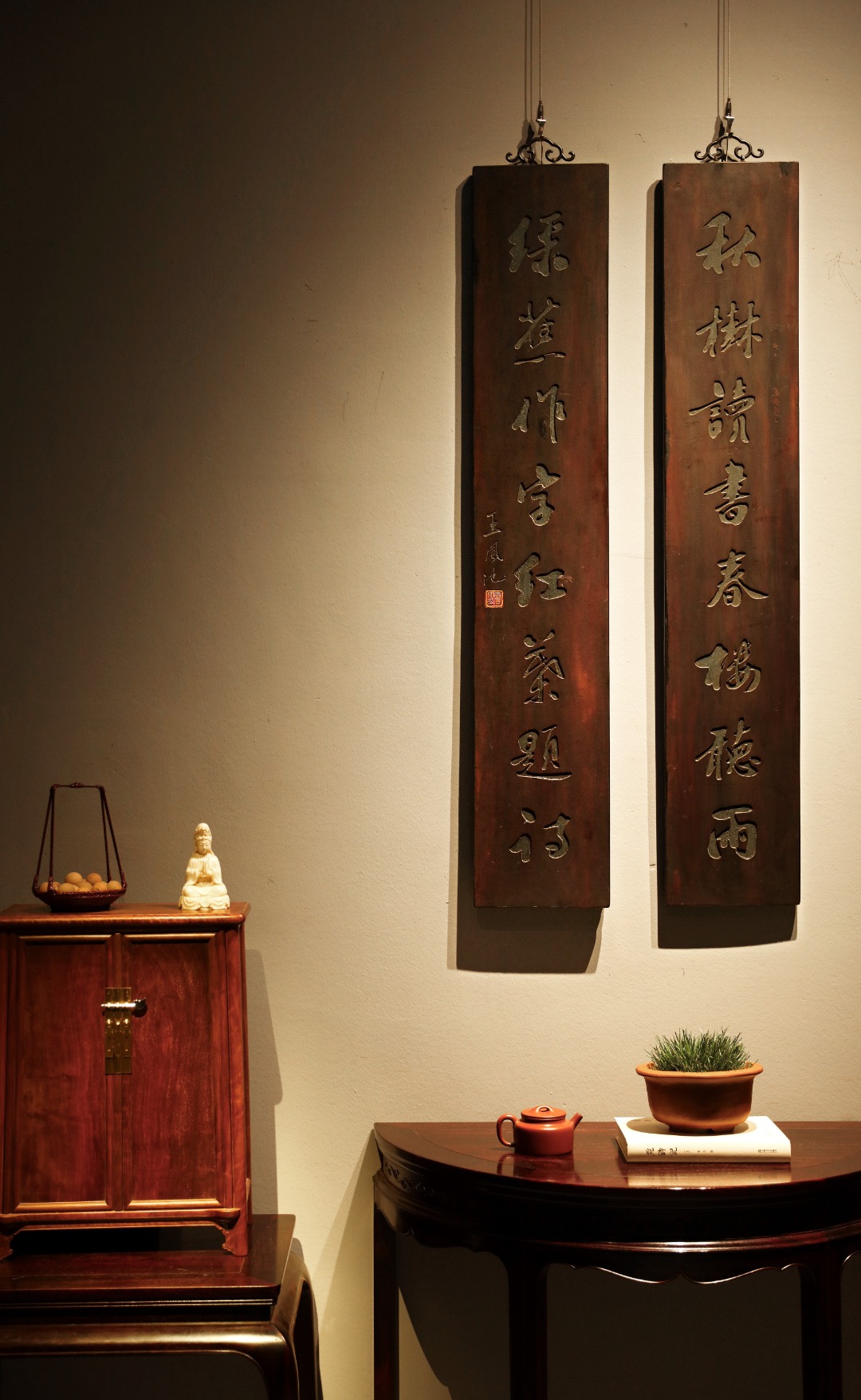 雅室清居|楠木对联