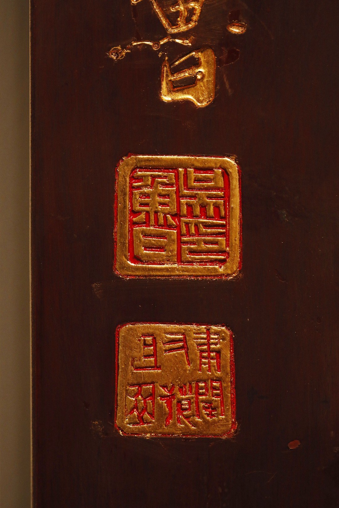 老楠木新作,纯手工阴阳刻,贴真金箔,